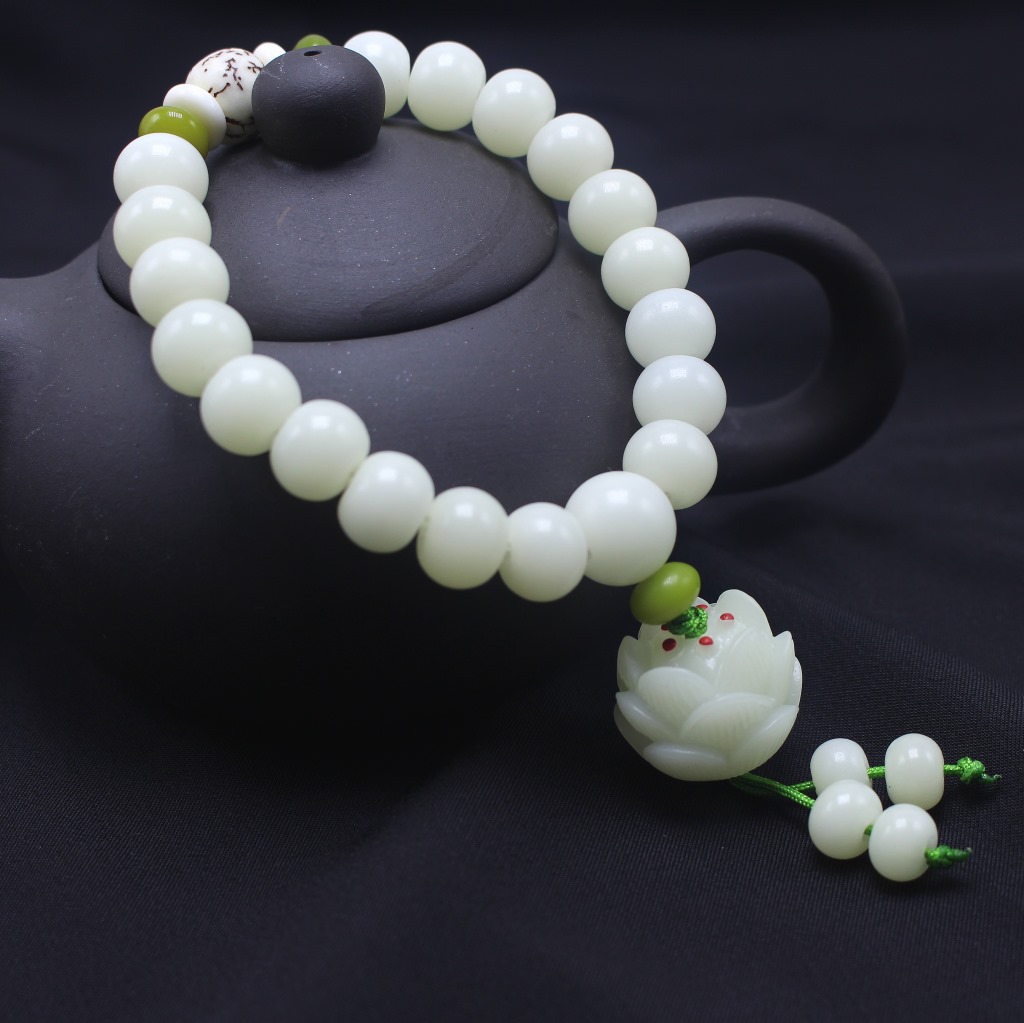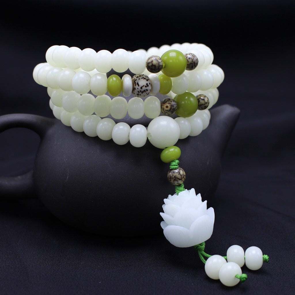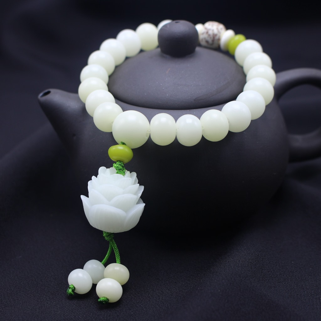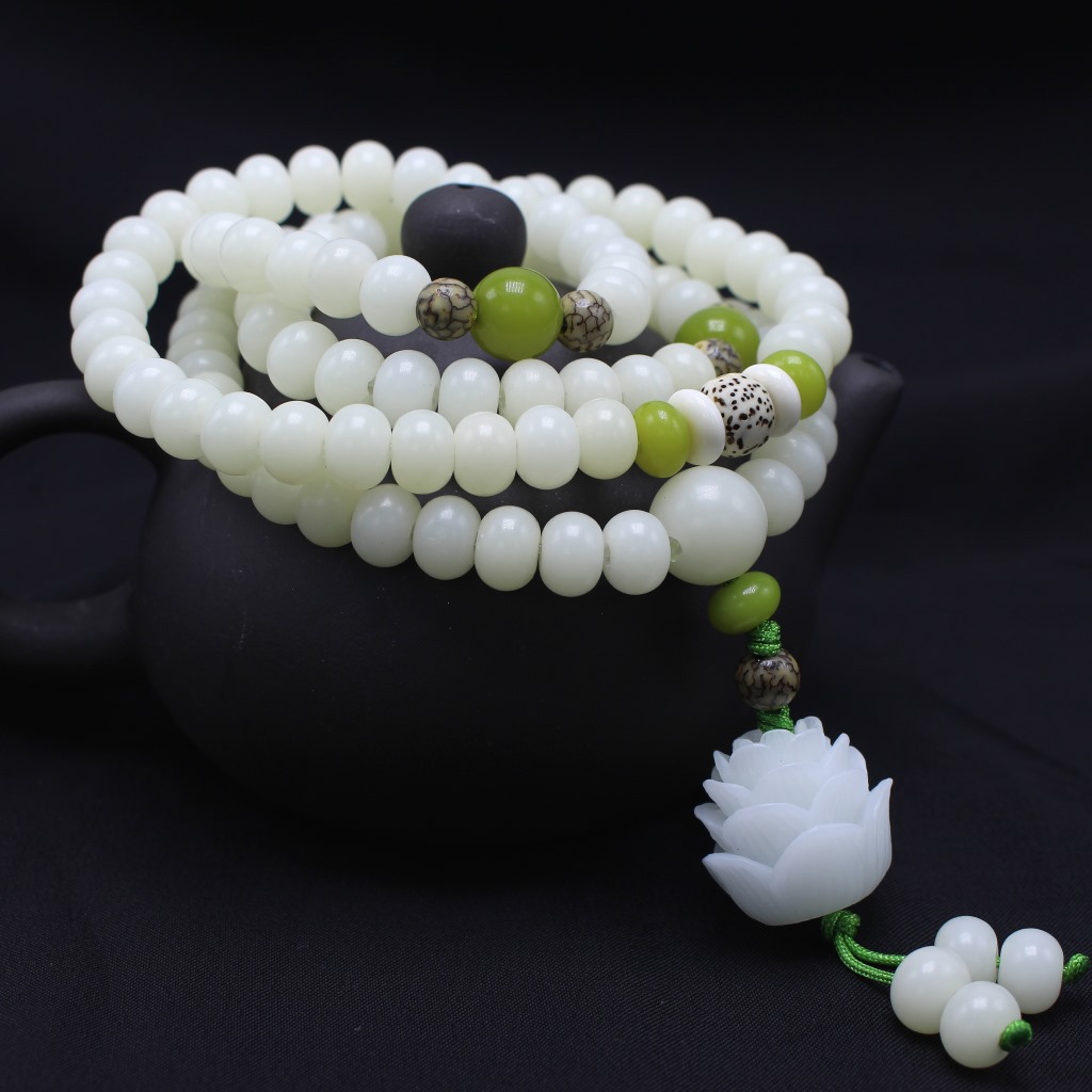 古风108颗白玉菩提根莲花手串多圈菩提子佛珠手链念珠直播批发