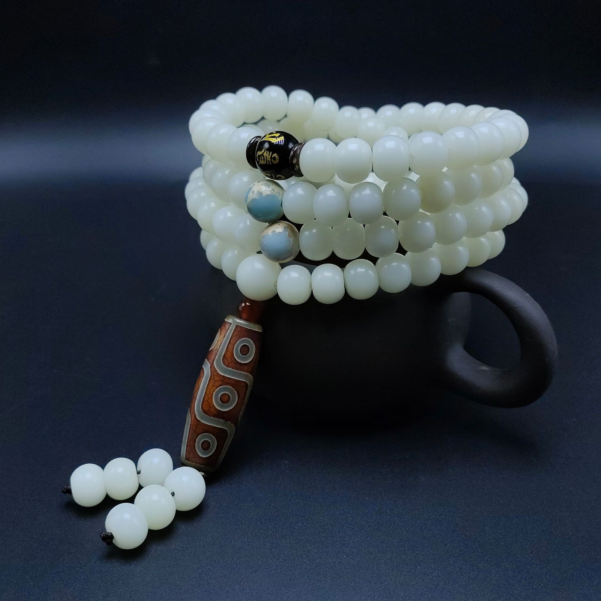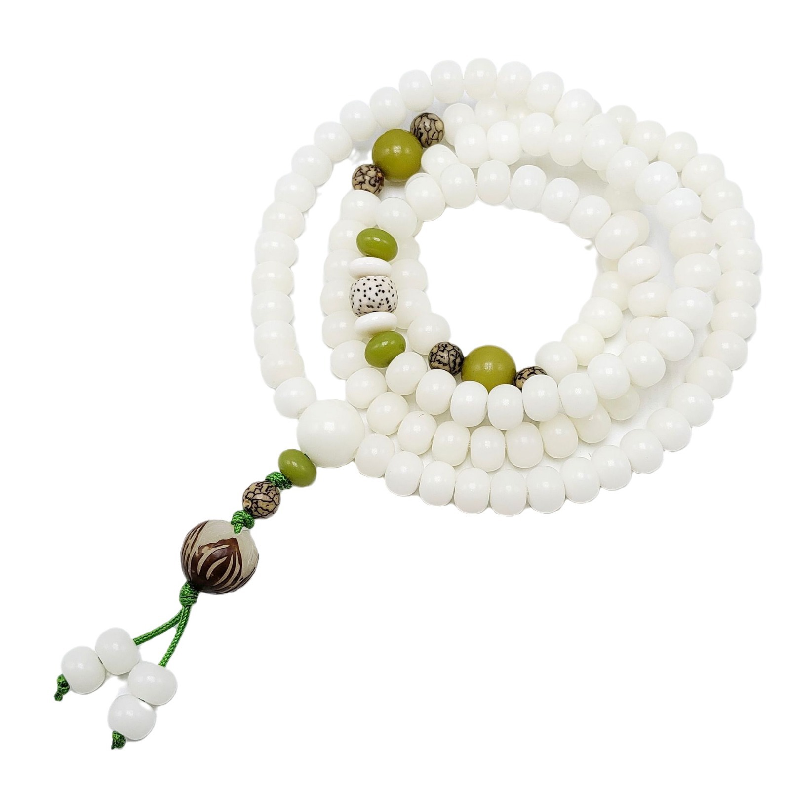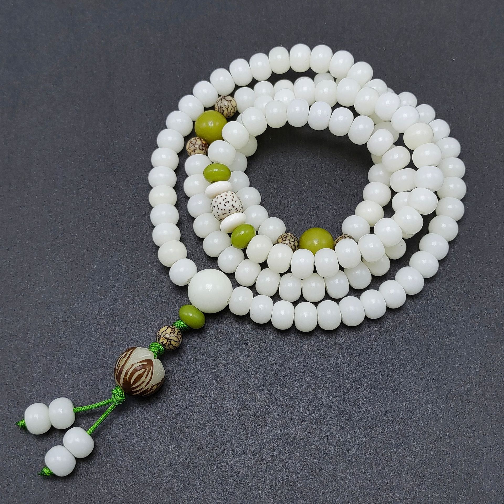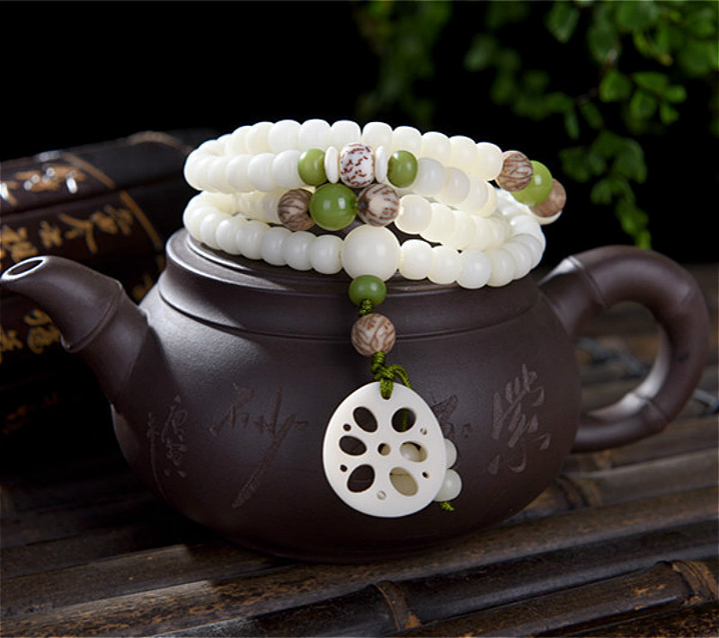 古风108颗白玉菩提根莲花手串多圈菩提子佛珠手链念珠直播批发