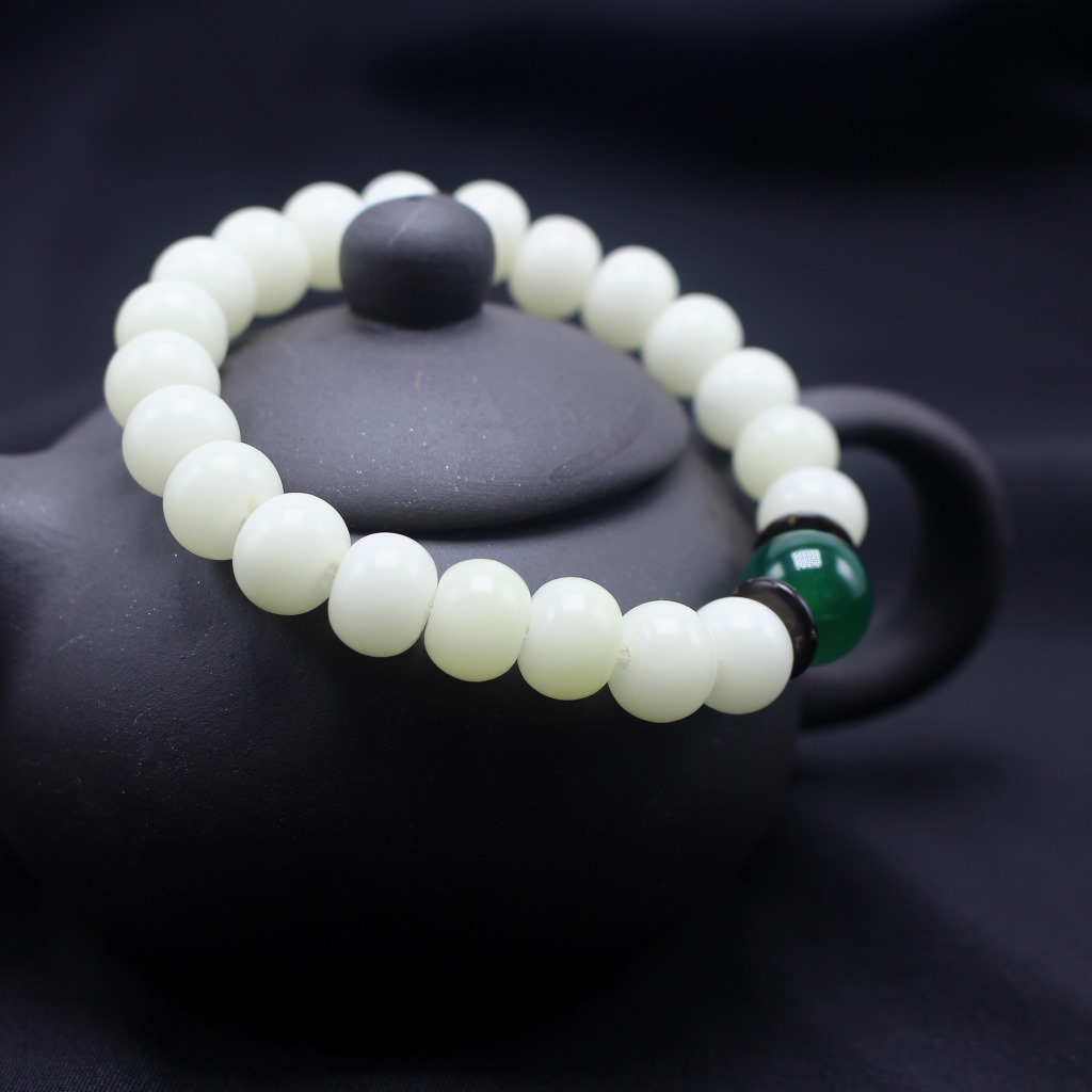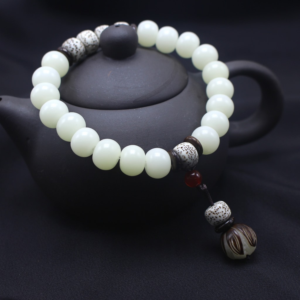 【注意】手串白珠子是菩提不是玉。手串吊的莲花,藕片,葫芦,绿白隔片三通是树脂的,介意的请飘过