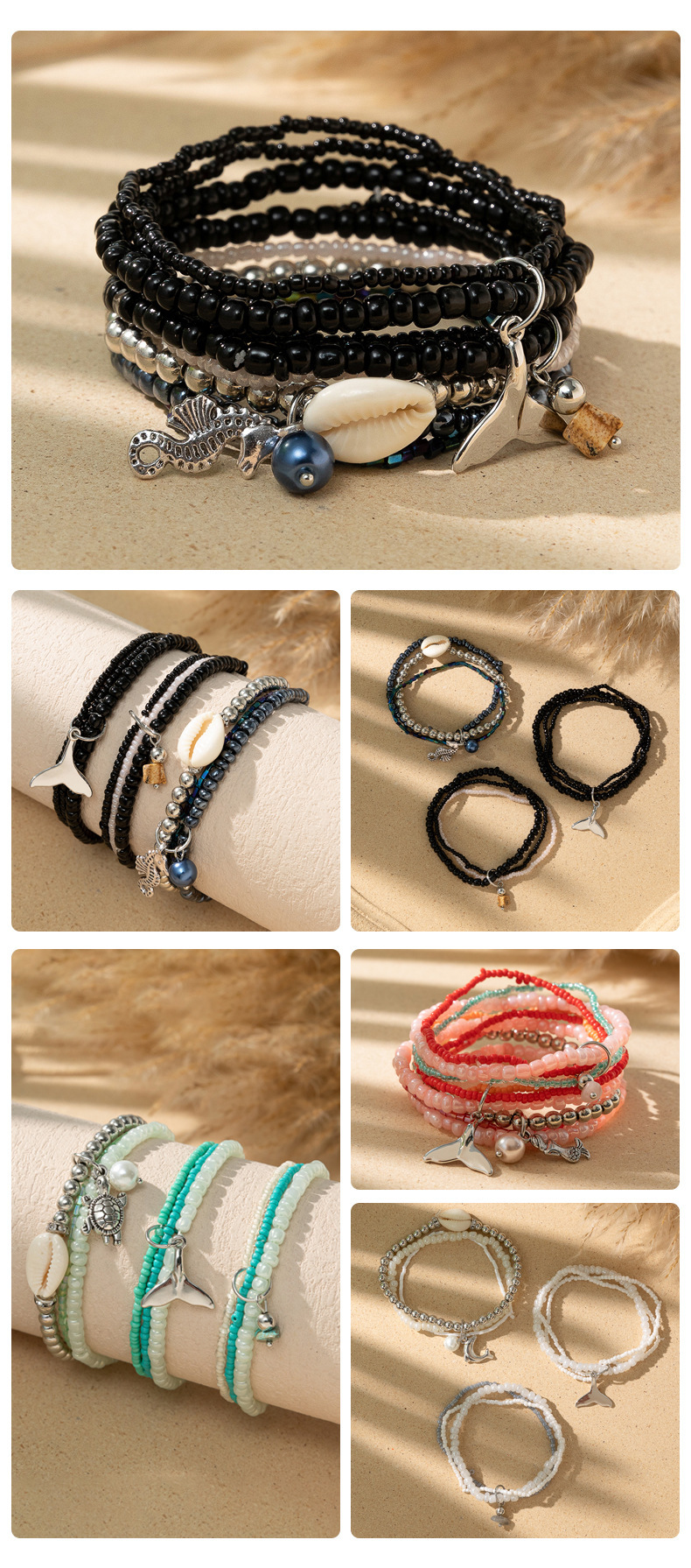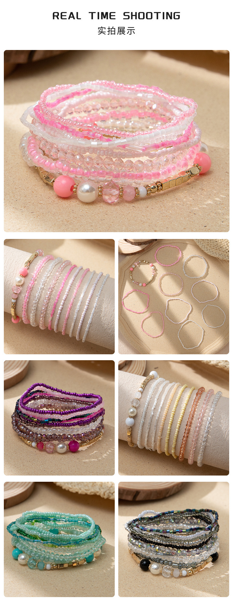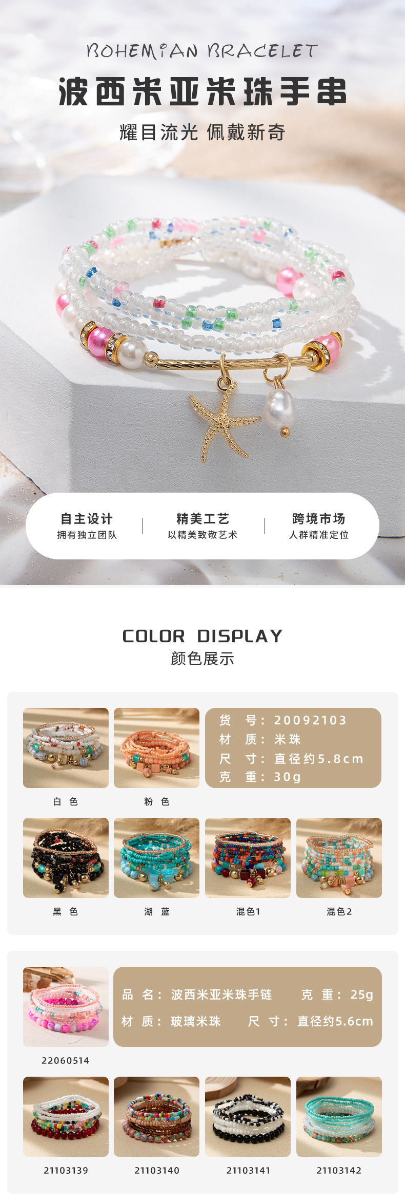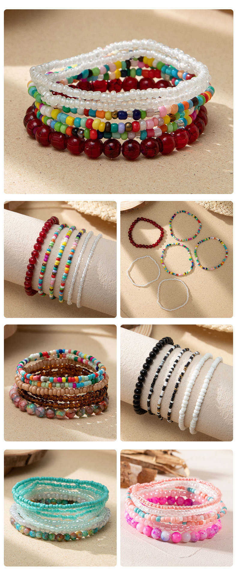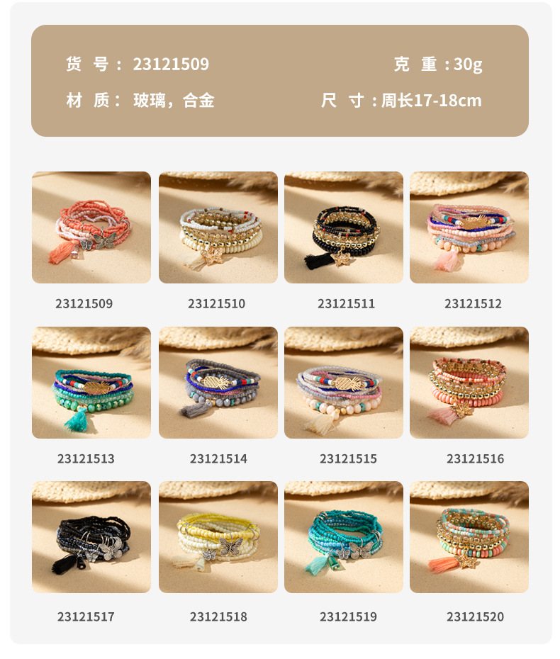 度假风波西米亚米珠手串ins设计感小众撞色叠戴手链套装跨境货源