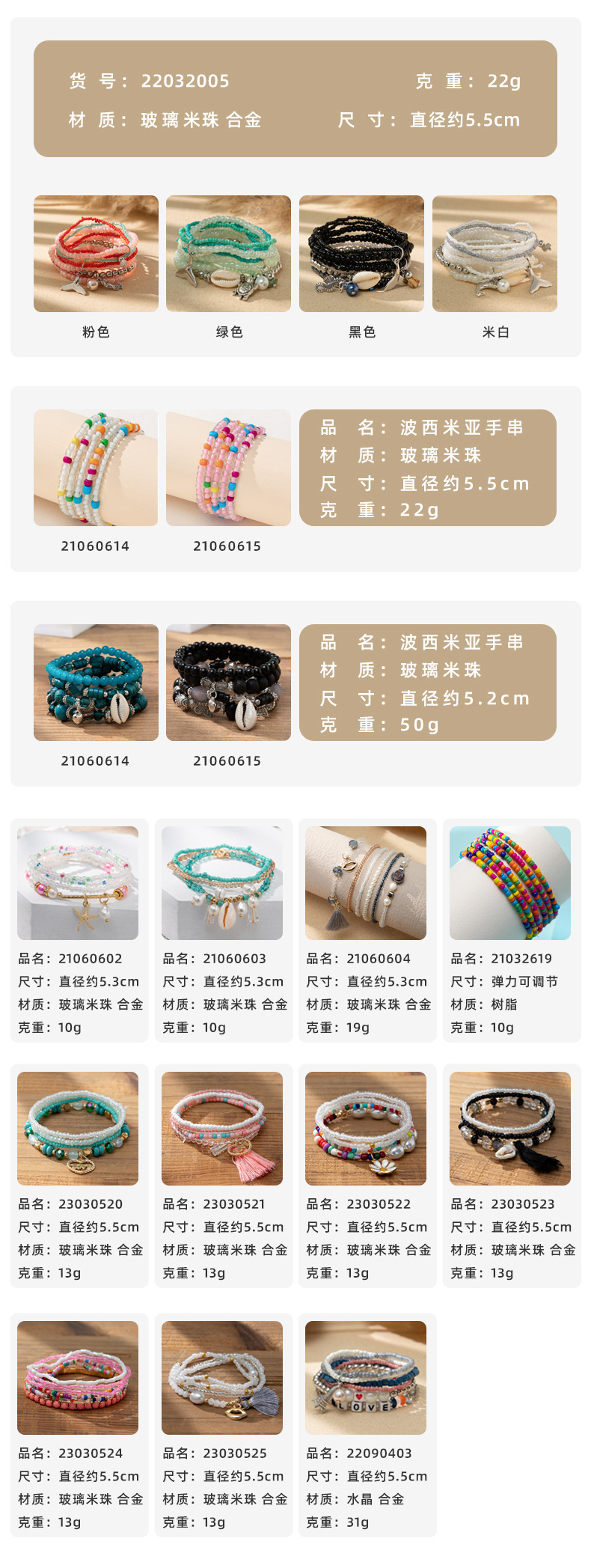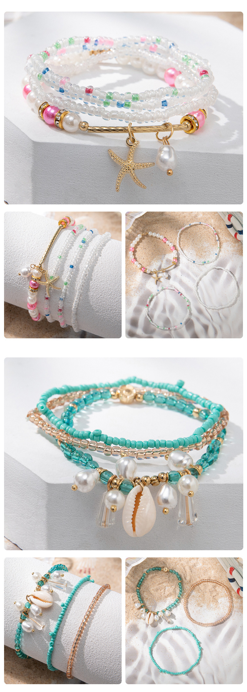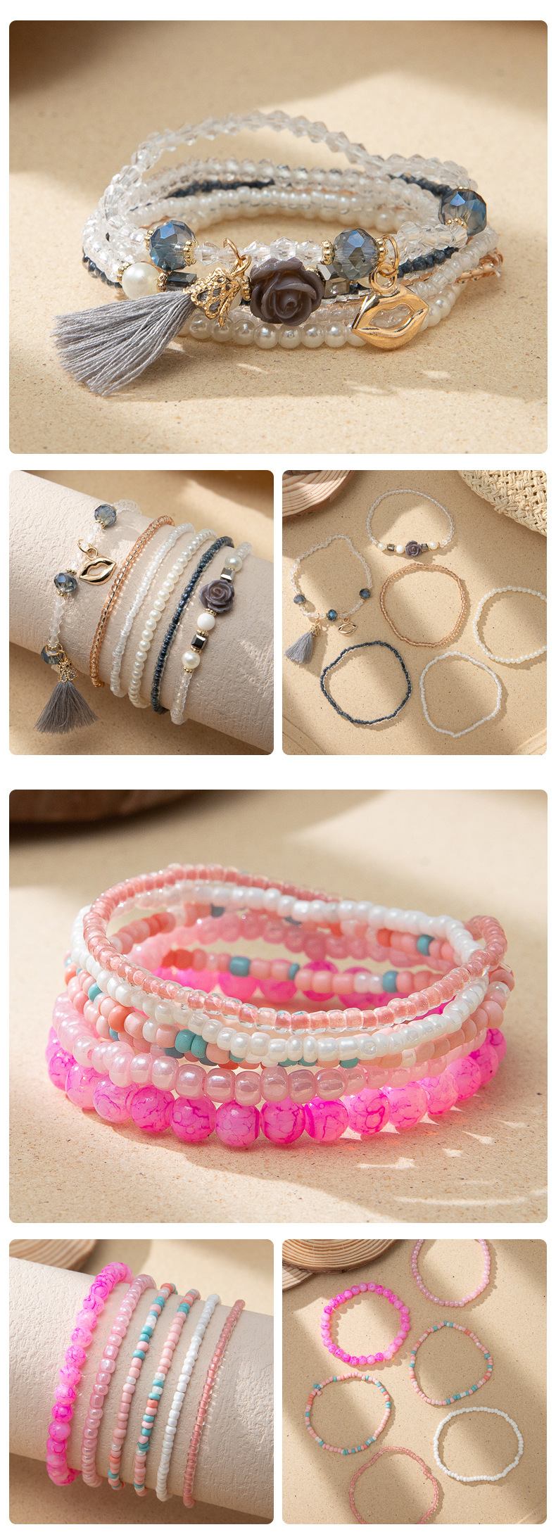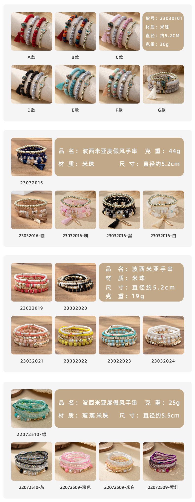 度假风波西米亚米珠手串ins设计感小众撞色叠戴手链套装跨境货源