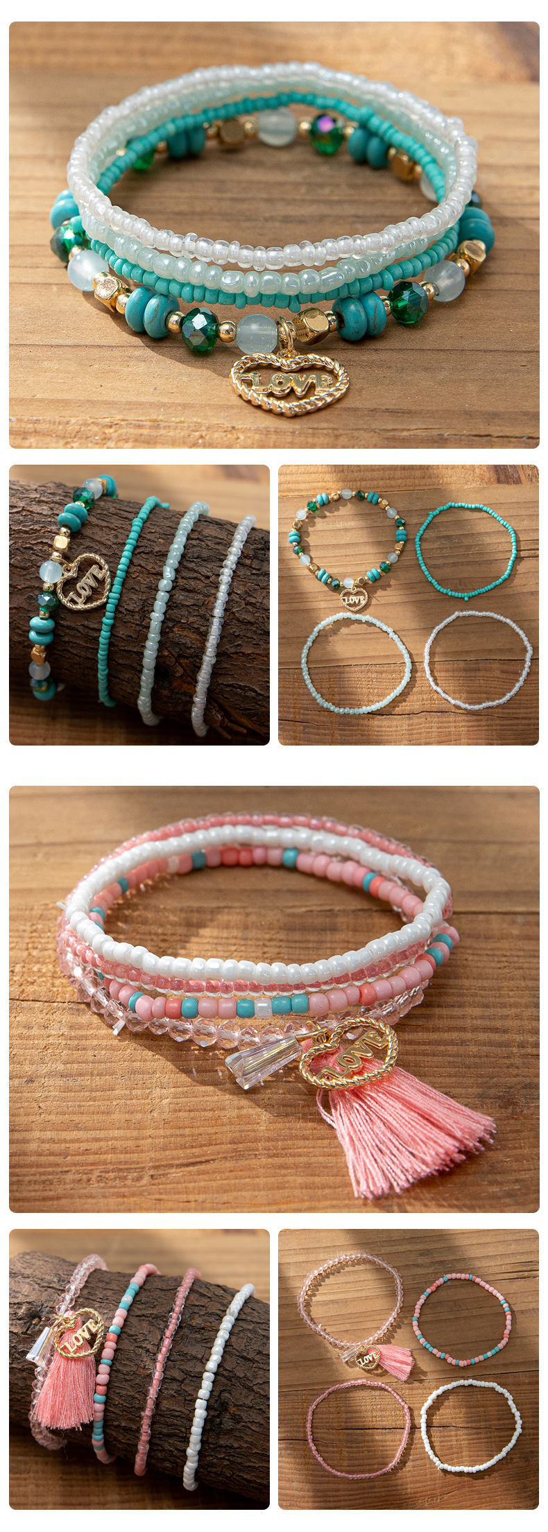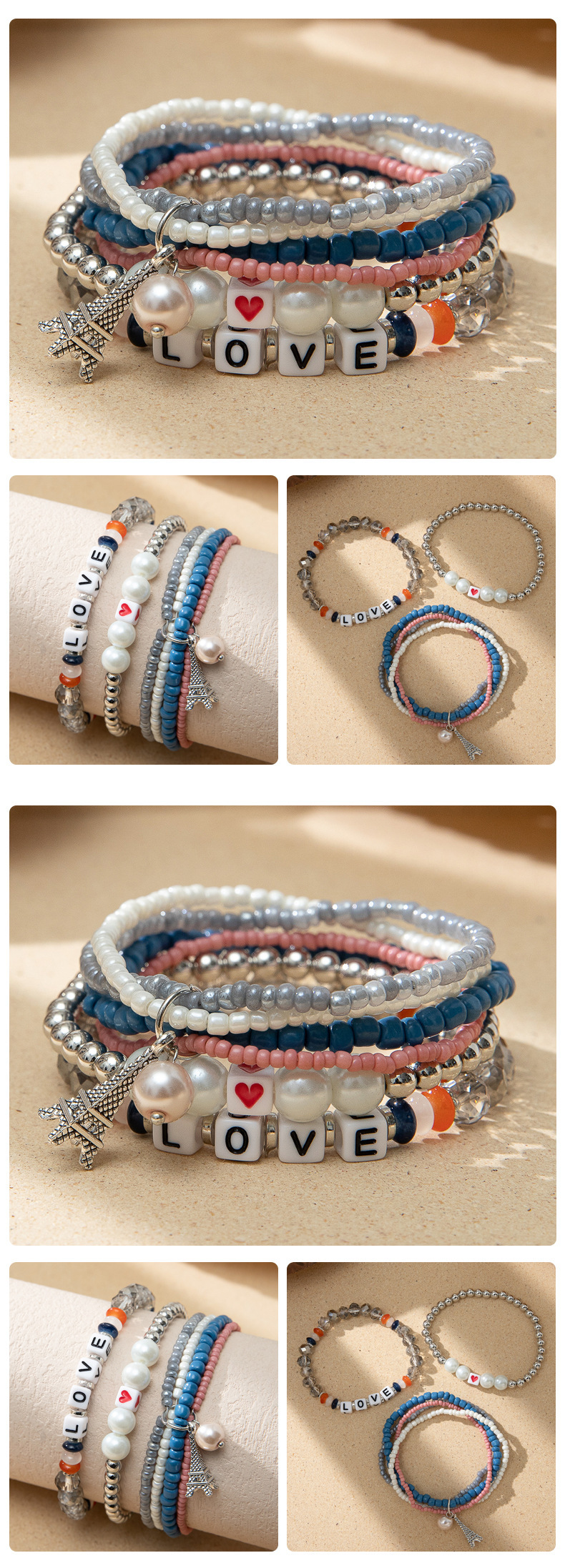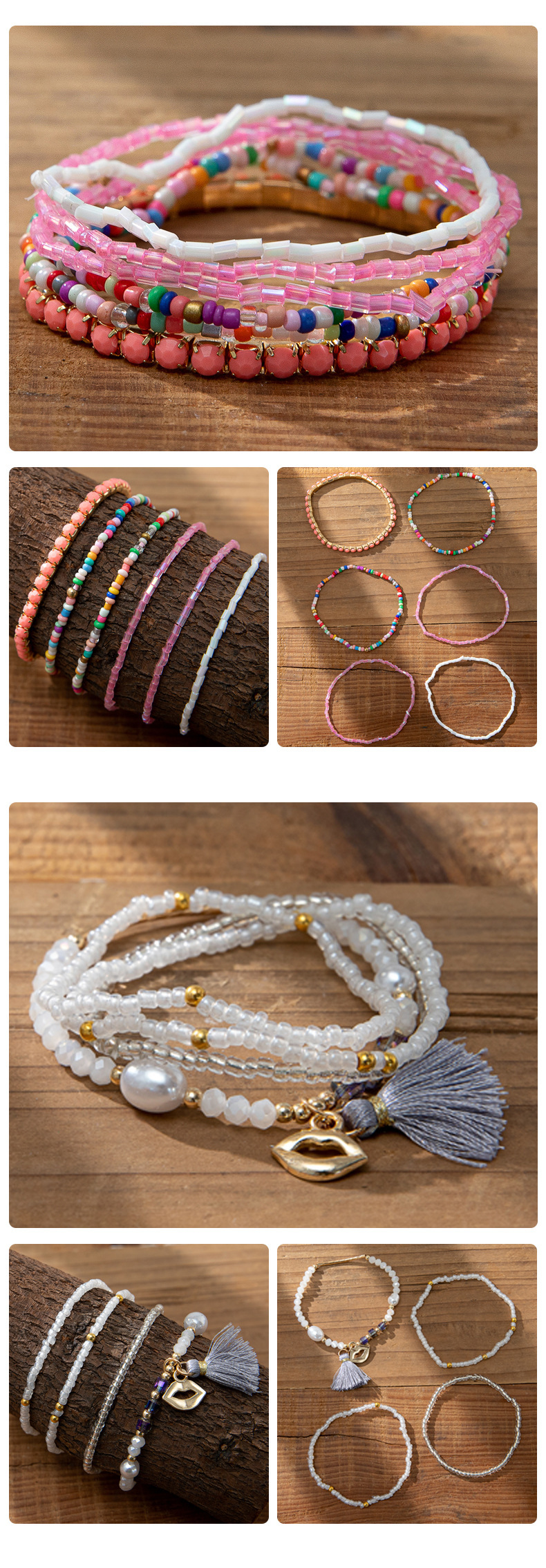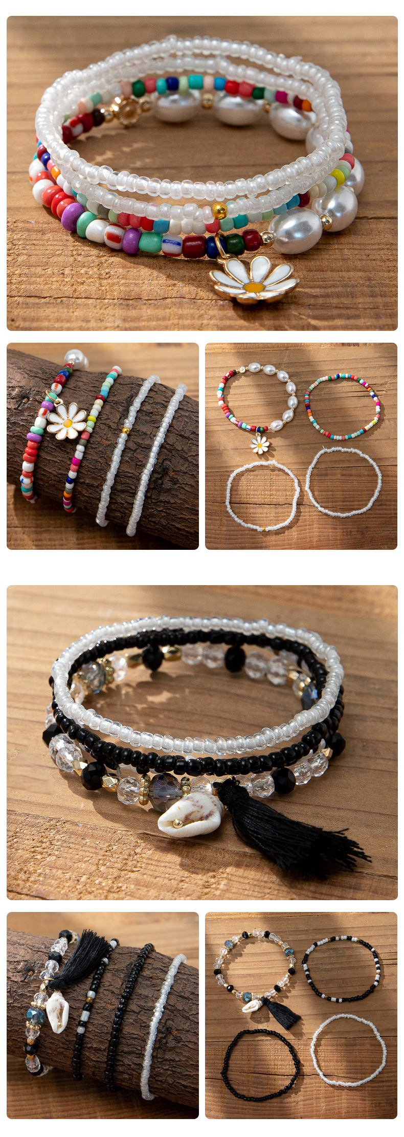 度假风波西米亚米珠手串ins设计感小众撞色叠戴手链套装跨境货源