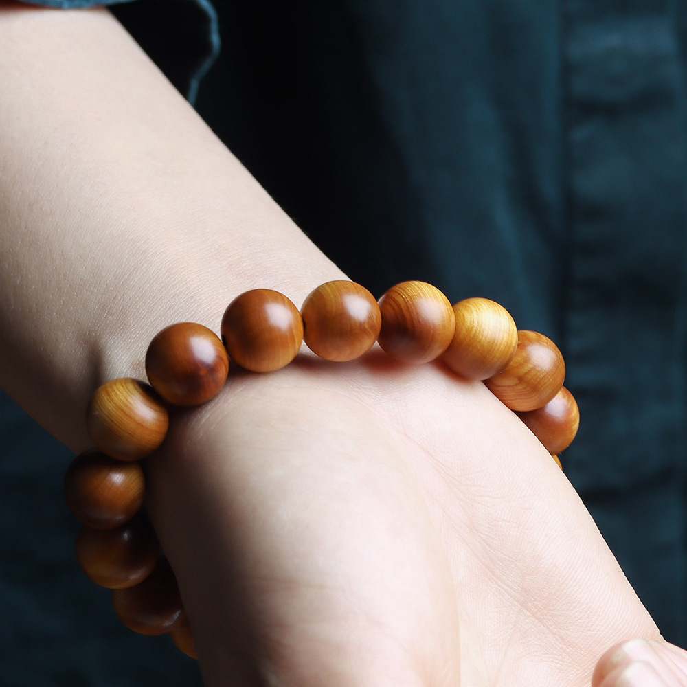 1.2太行崖柏圆形珠手串 手工木质文玩佛珠单圈光珠寺庙首饰礼品