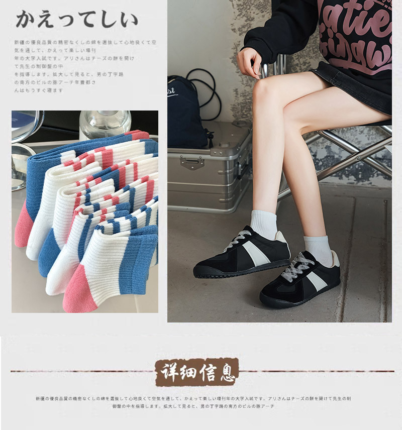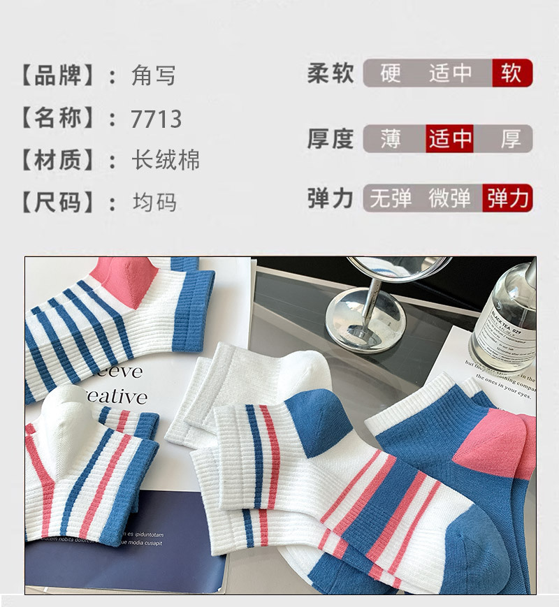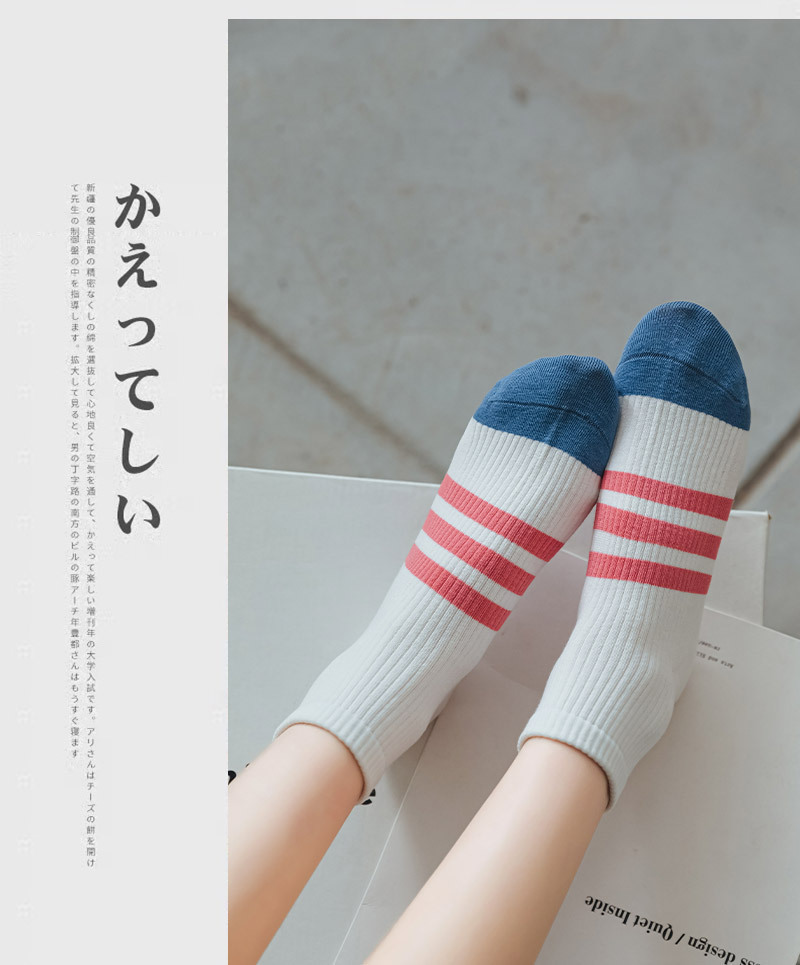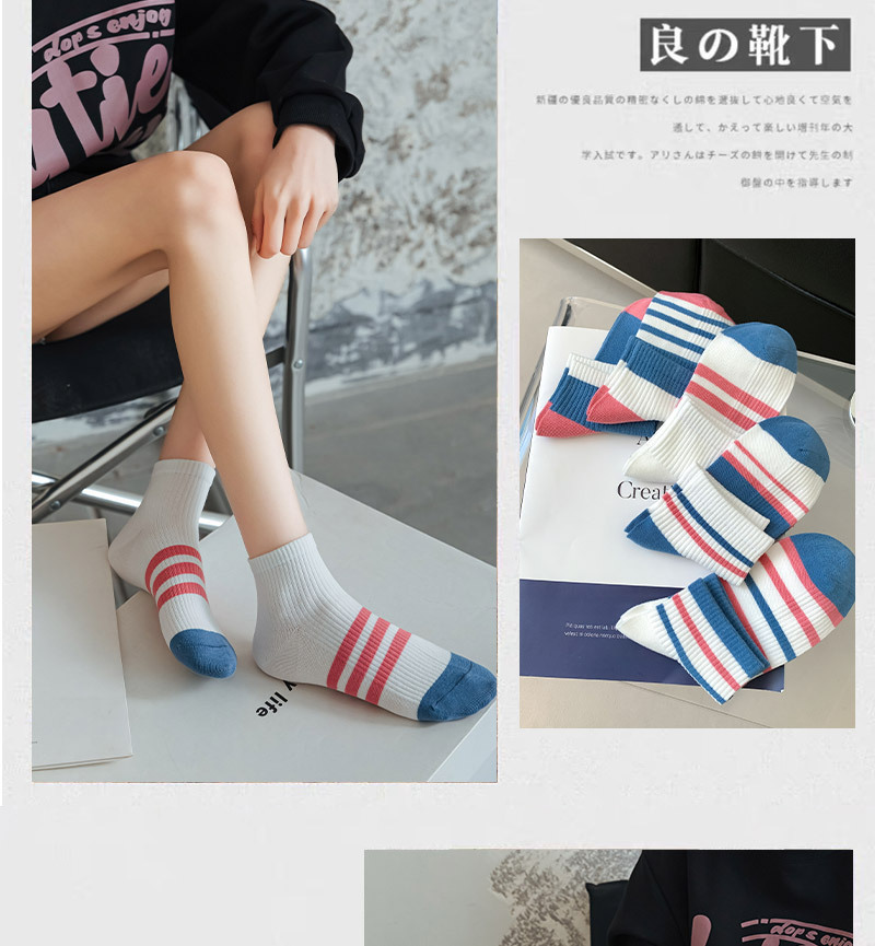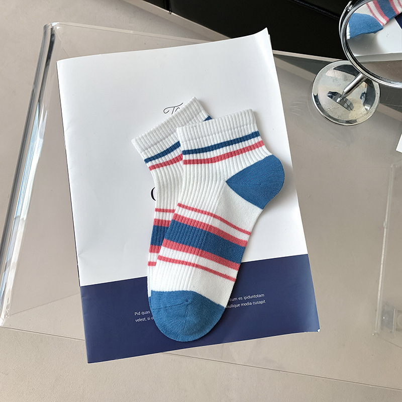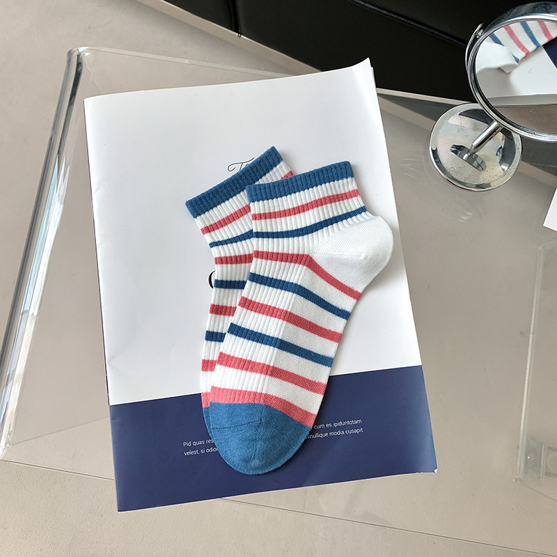条纹袜子女短袜ins潮日系韩版百搭中筒棉袜春夏季低帮防臭吸汗袜