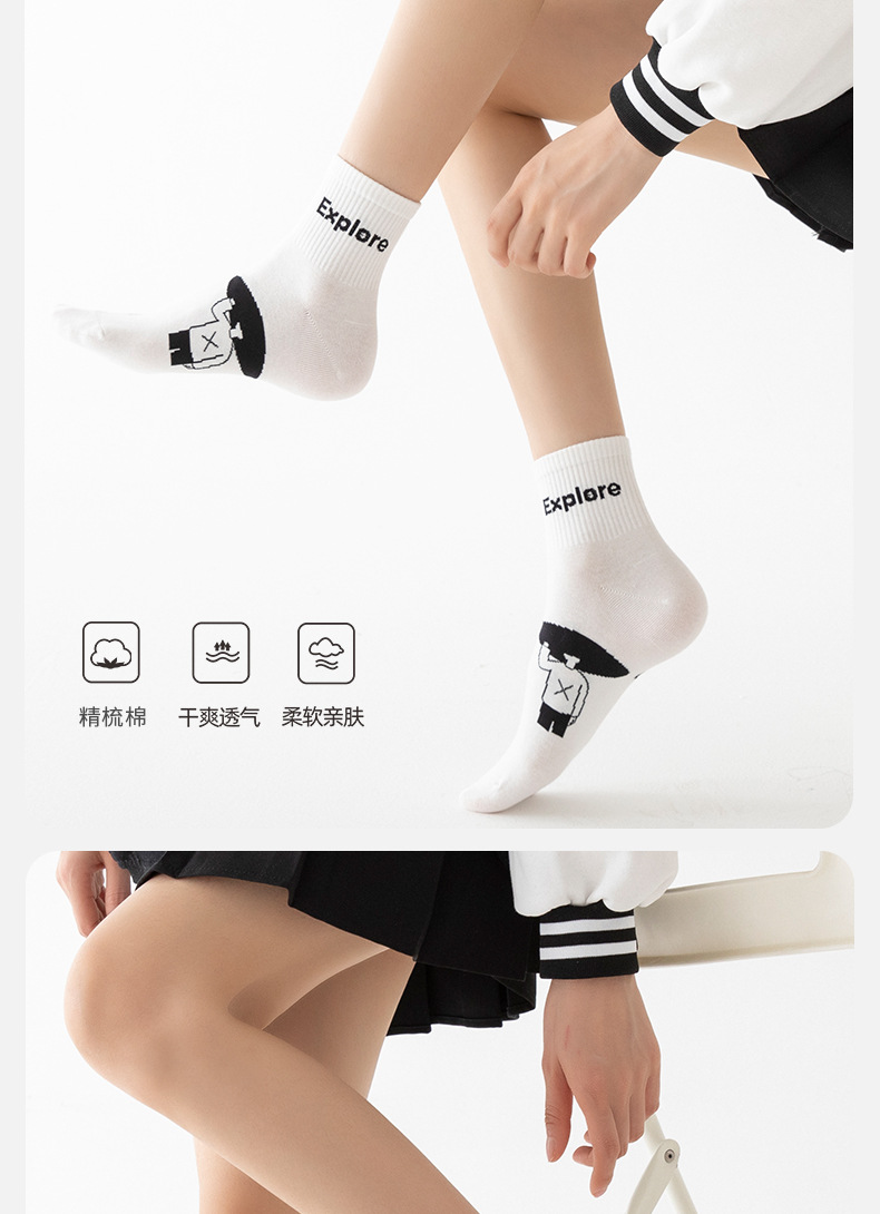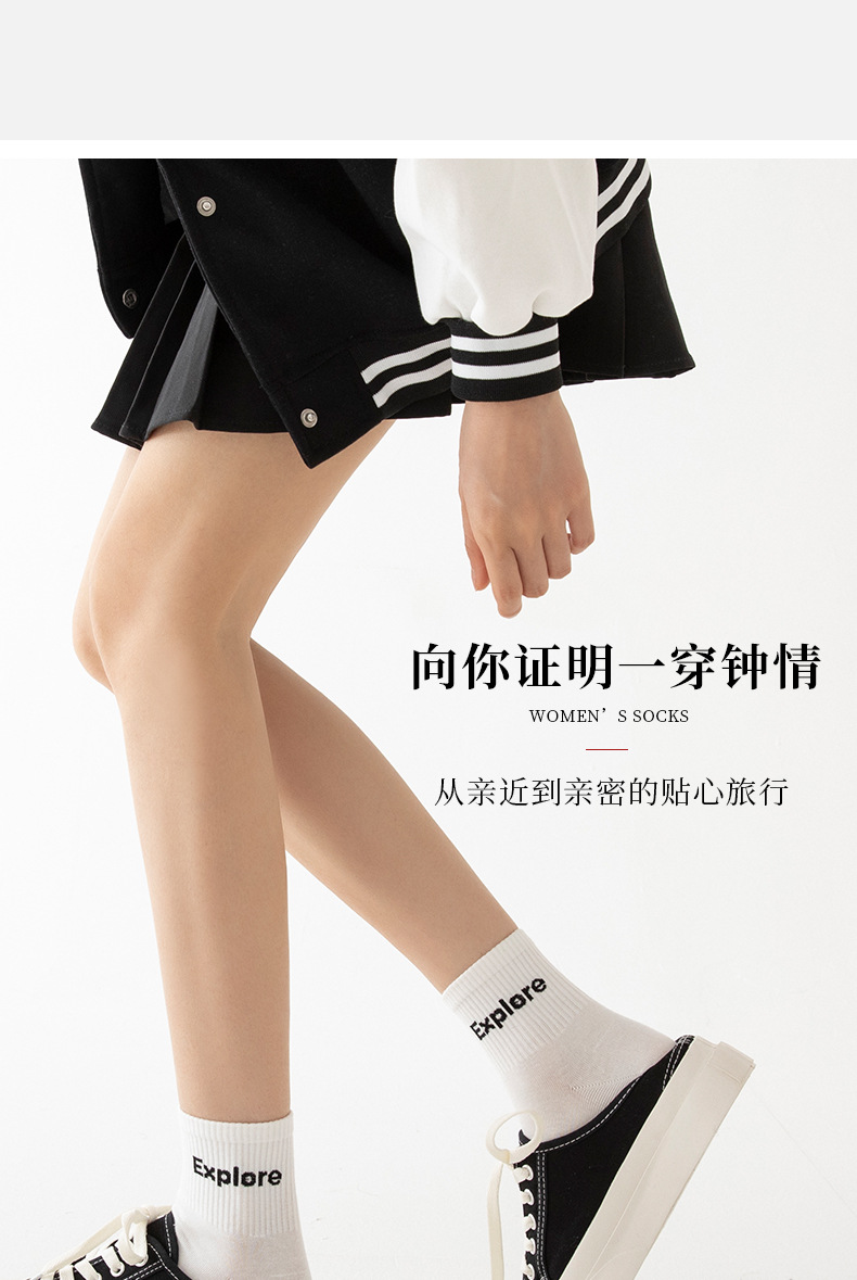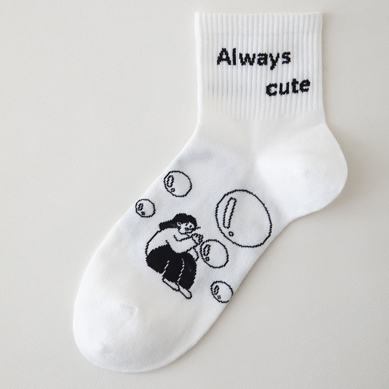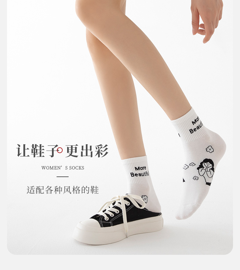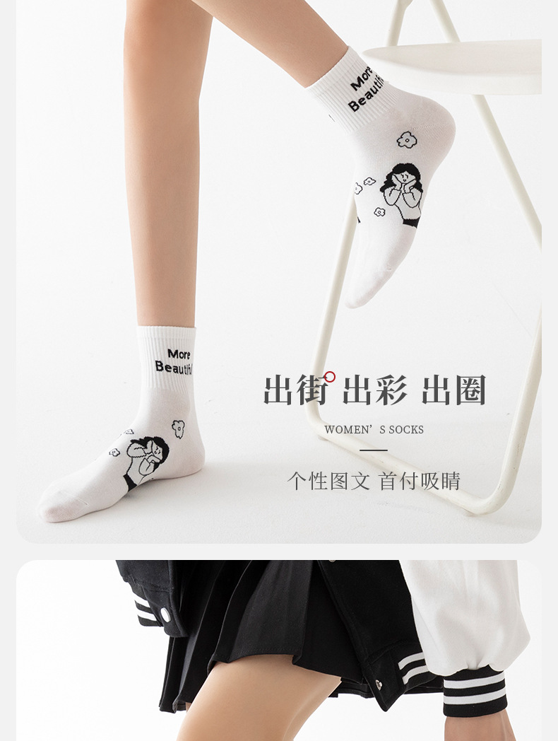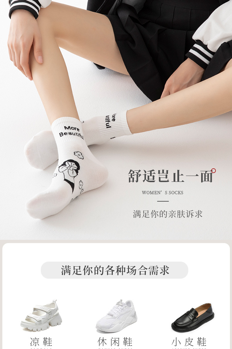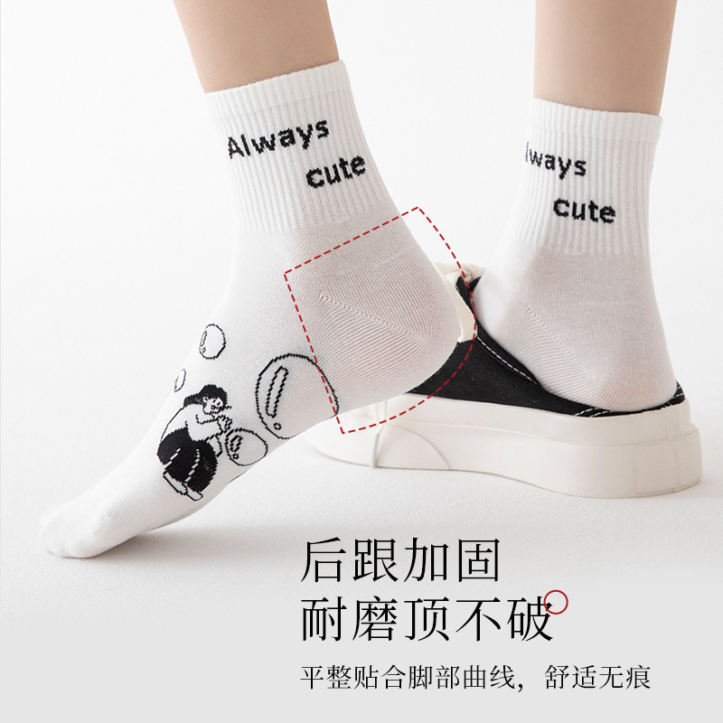 白色可爱袜子女中筒袜网红款纯棉潮运动女生春夏短筒袜少女春秋袜
