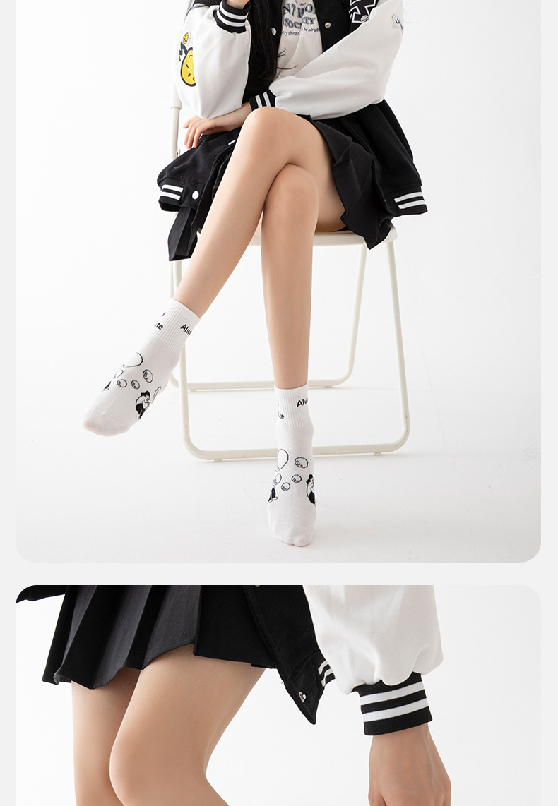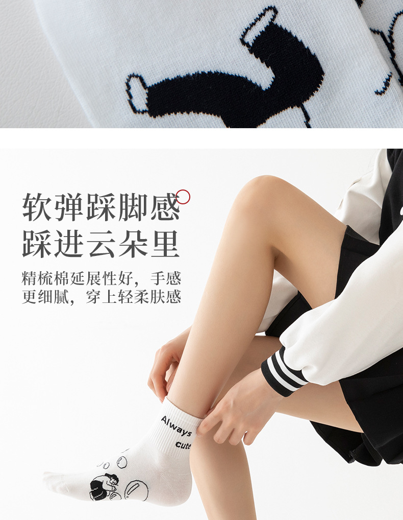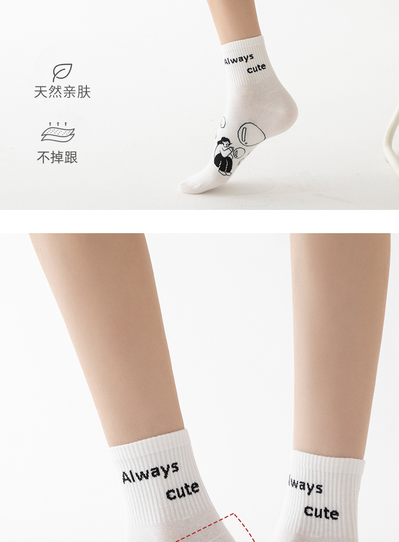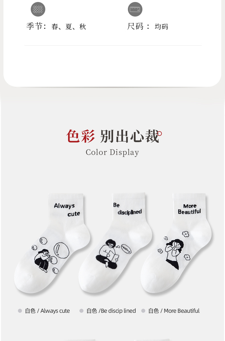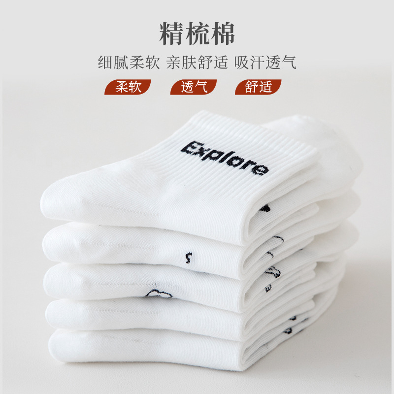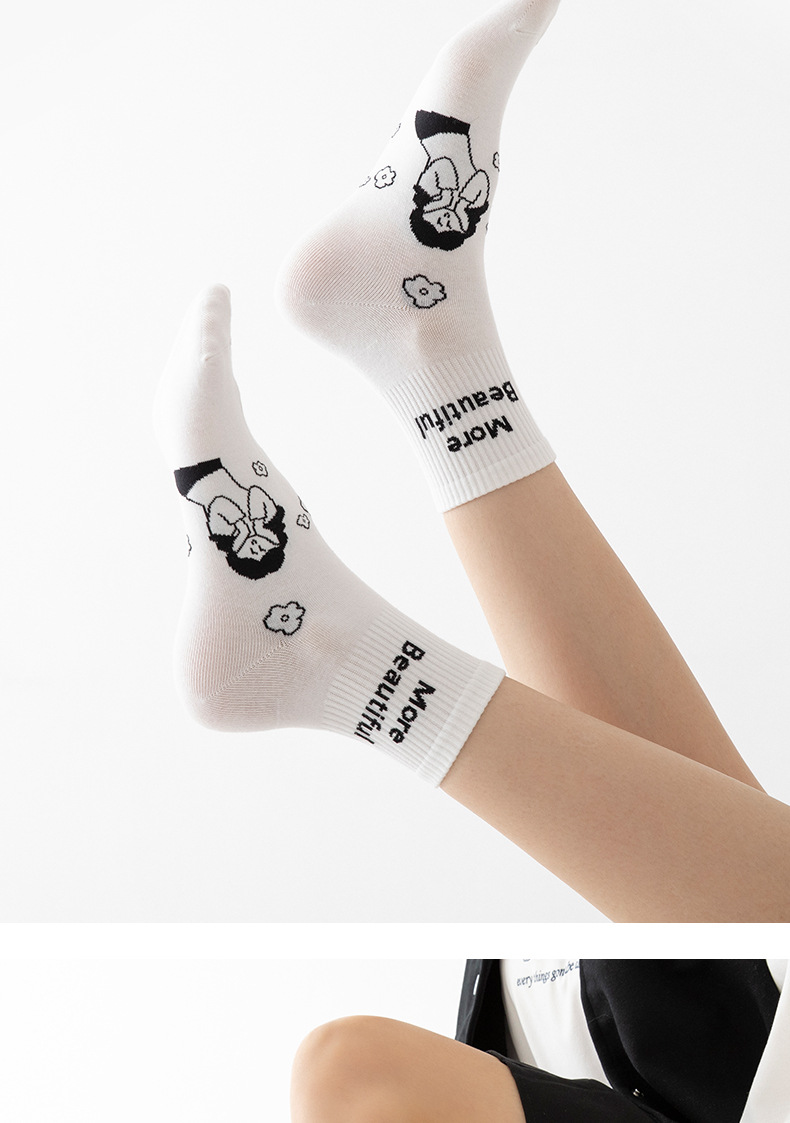 白色可爱袜子女中筒袜网红款纯棉潮运动女生春夏短筒袜少女春秋袜