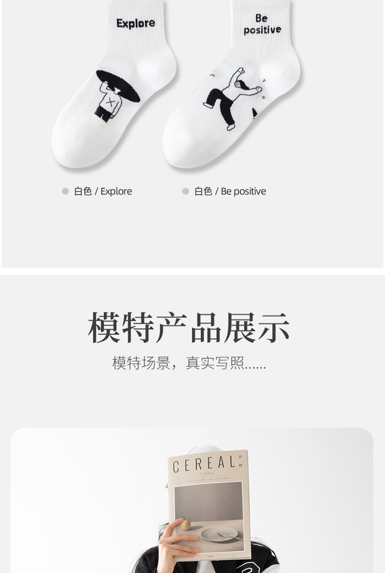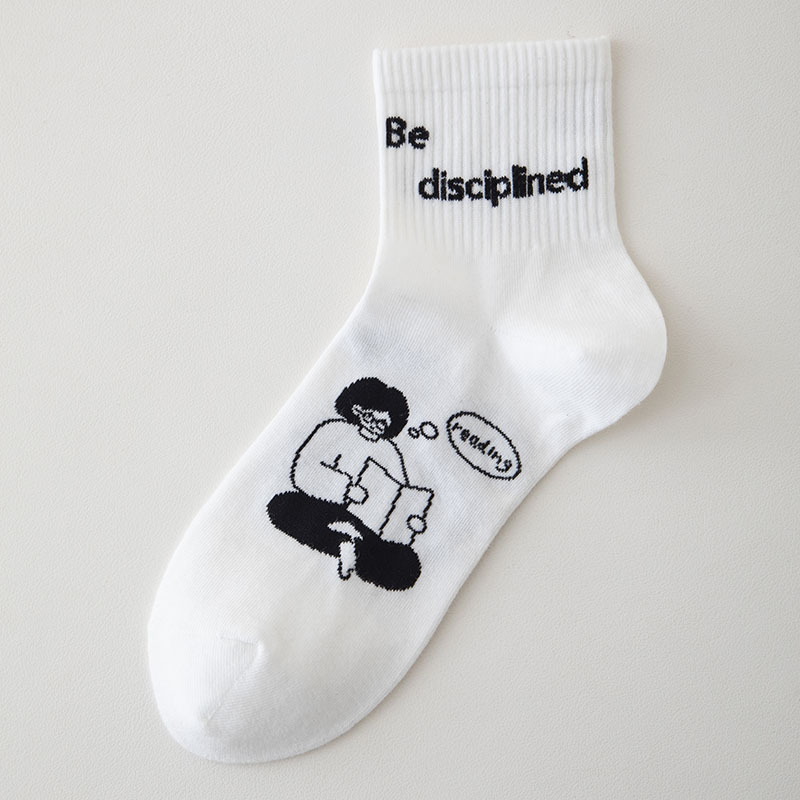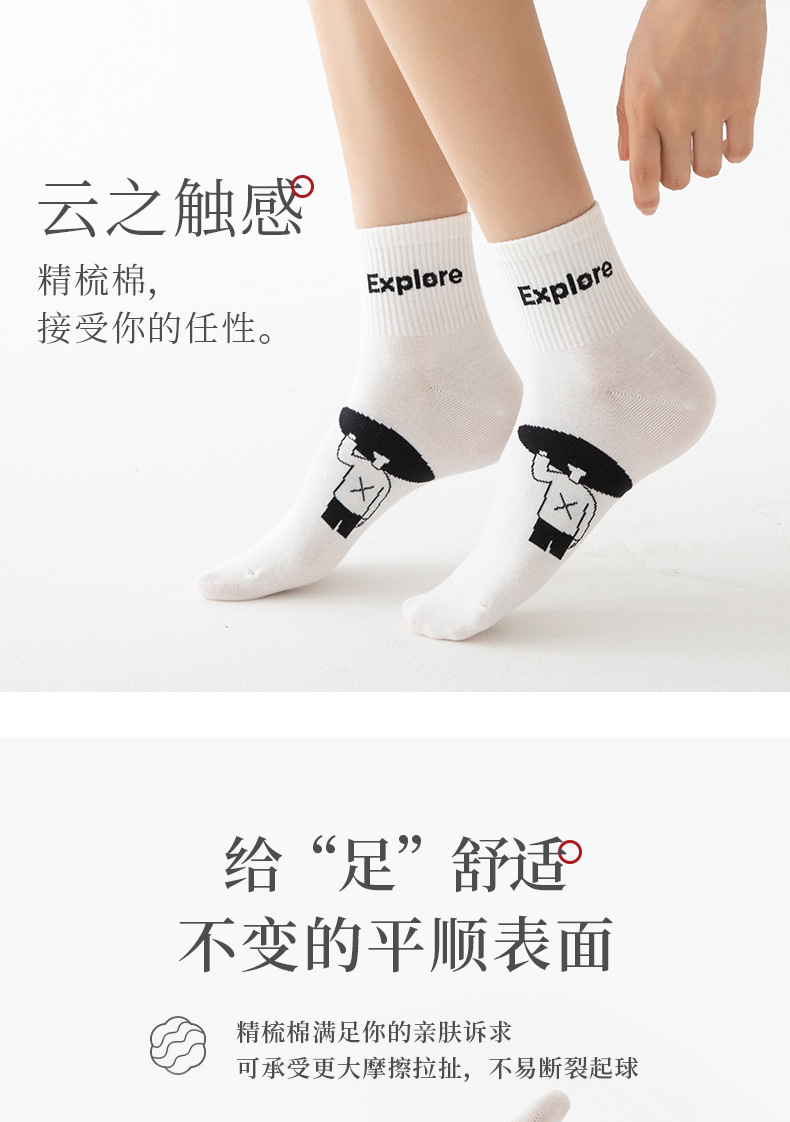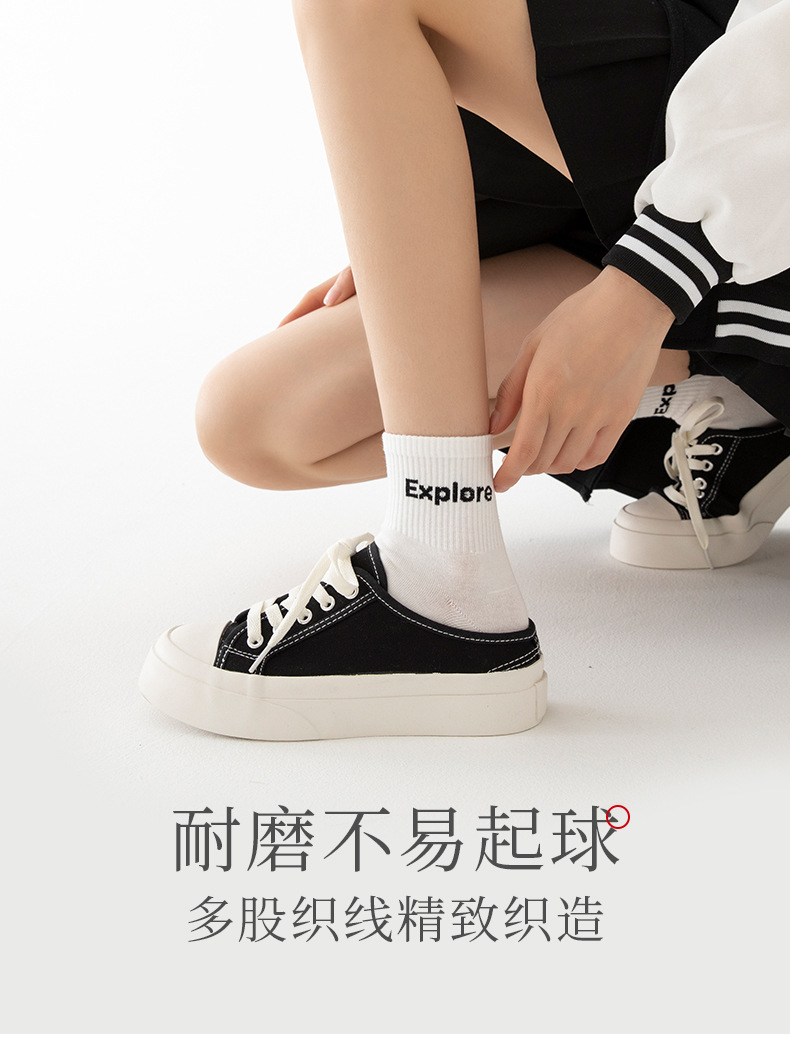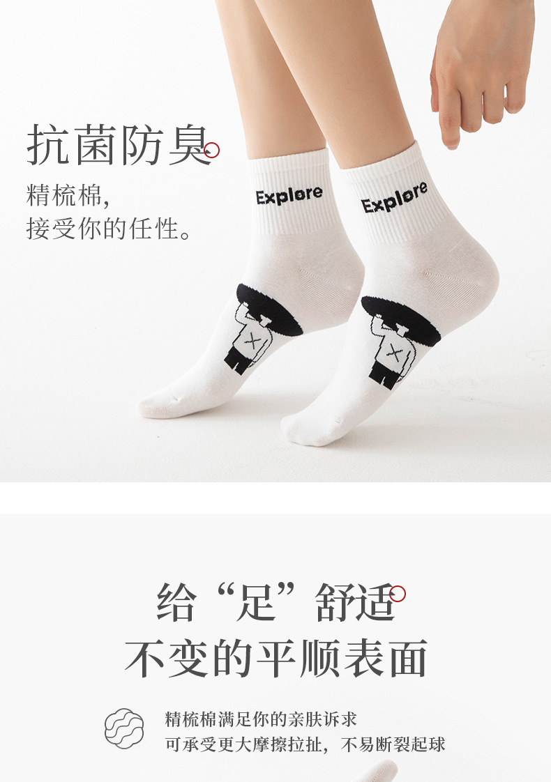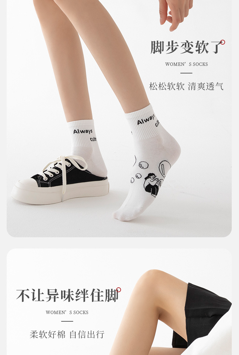白色可爱袜子女中筒袜网红款纯棉潮运动女生春夏短筒袜少女春秋袜