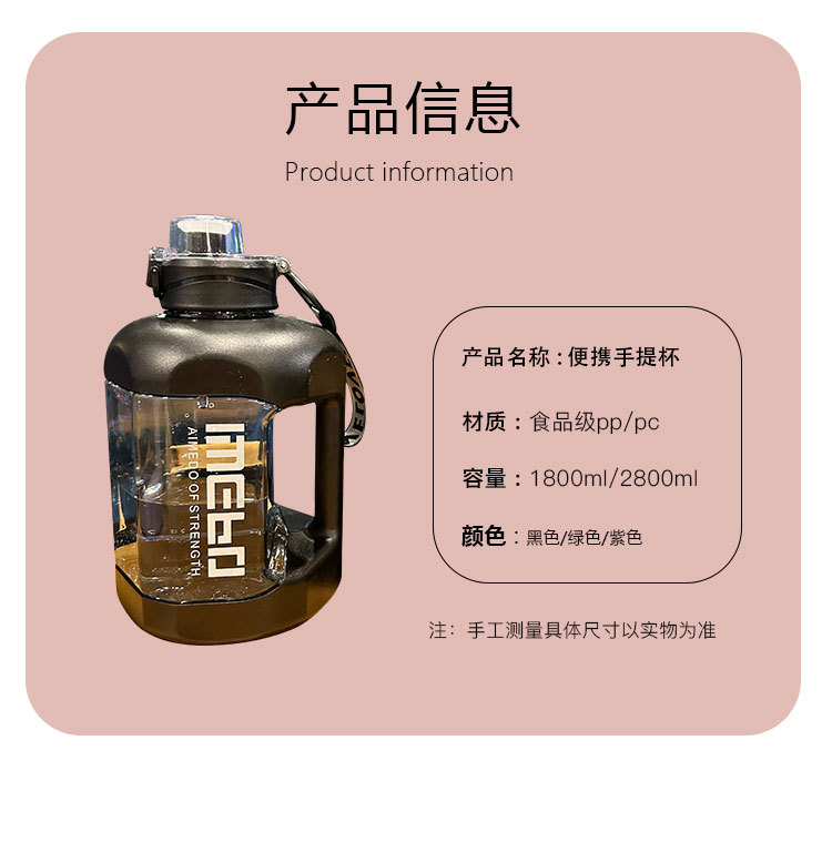 水杯大容量男生健身运动水壶健身吨桶吨耐高温大肚杯子顿顿水瓶