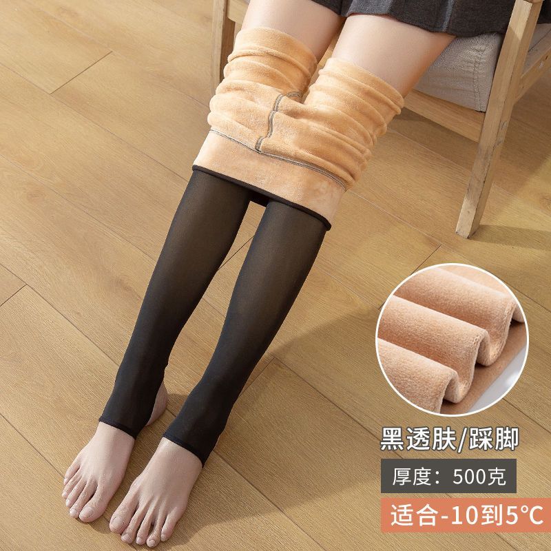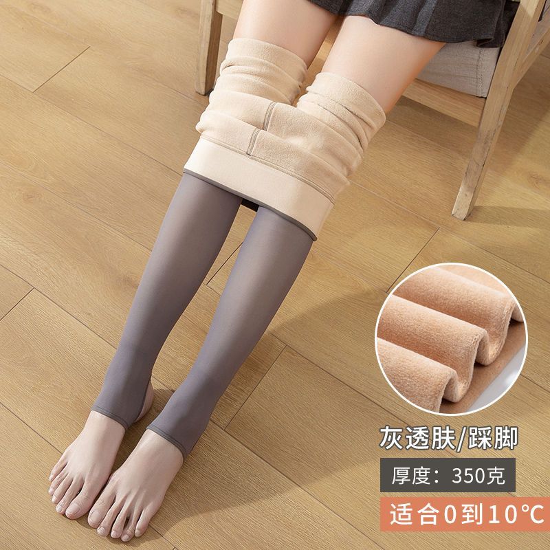 秋冬空姐灰加绒加厚一体透肤打底裤女外穿高腰显瘦光腿假透肉神器