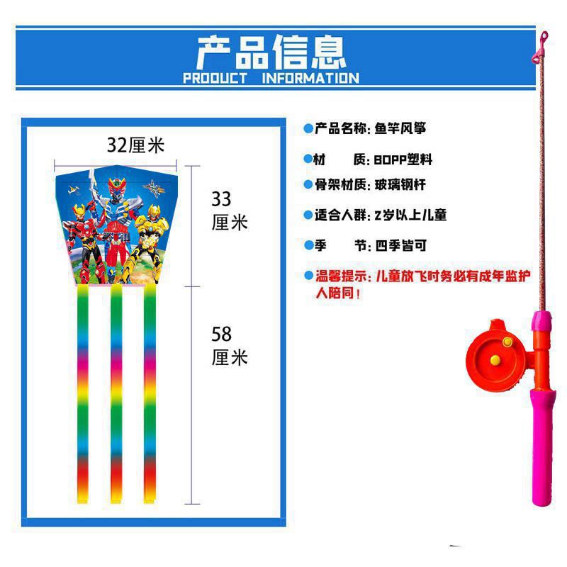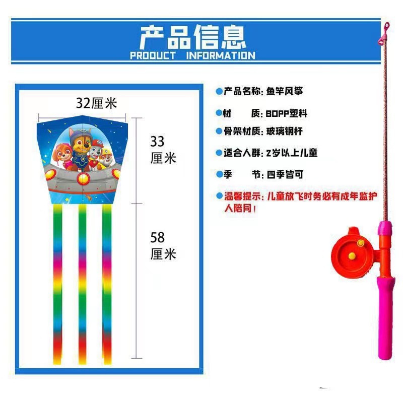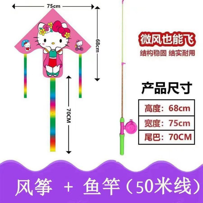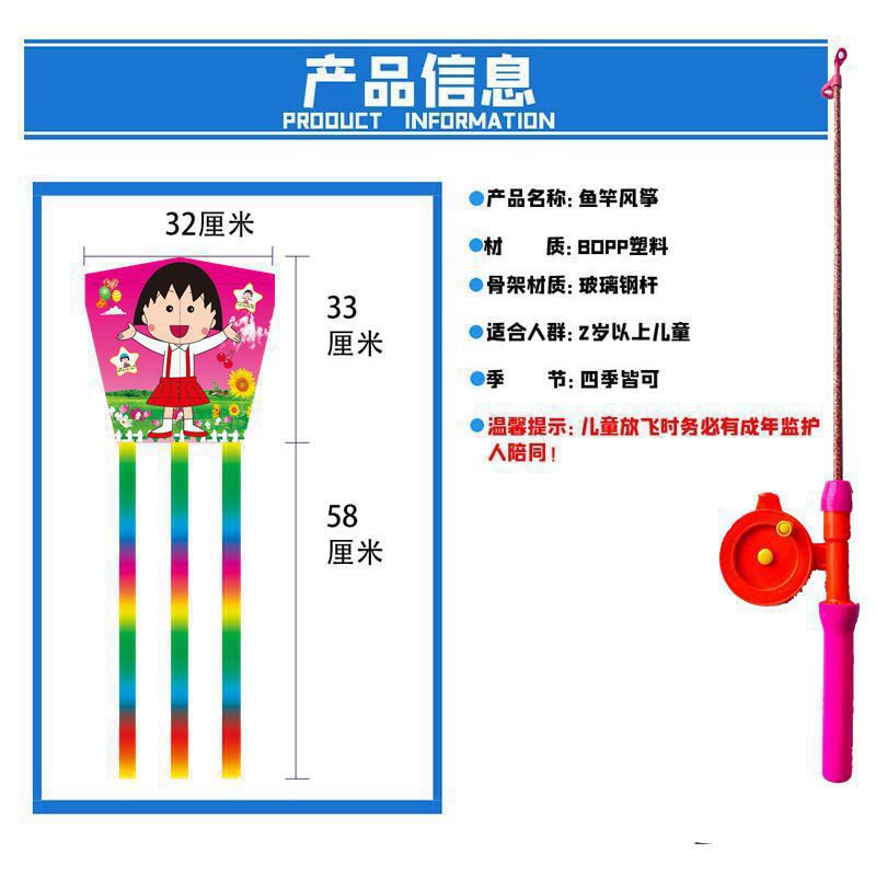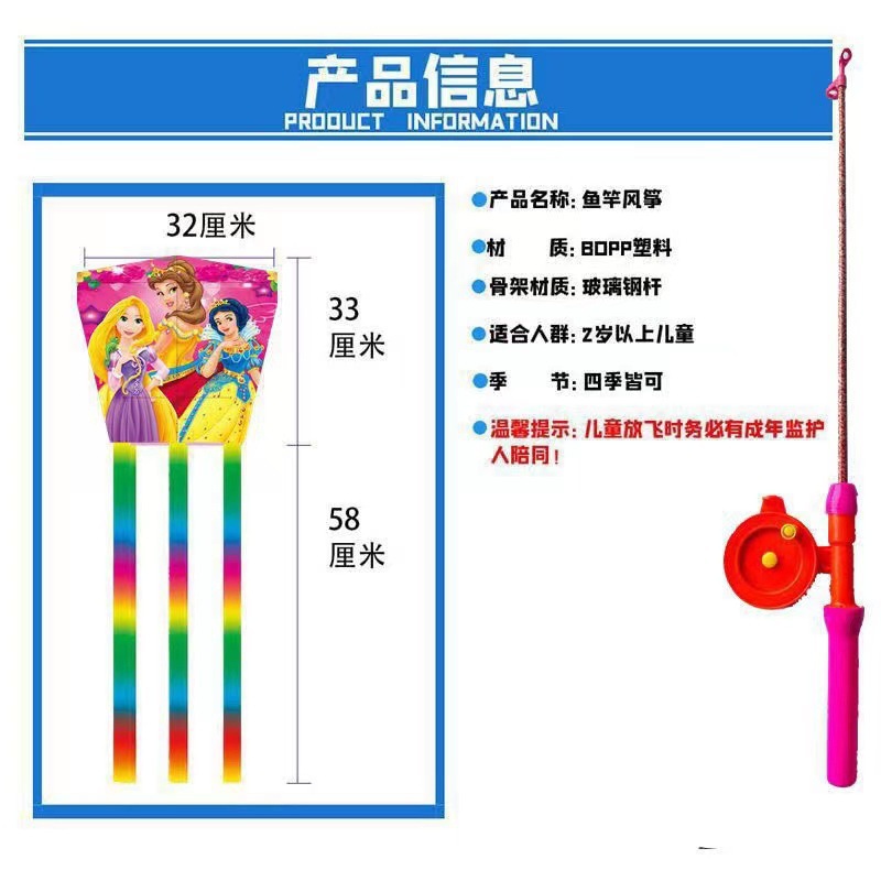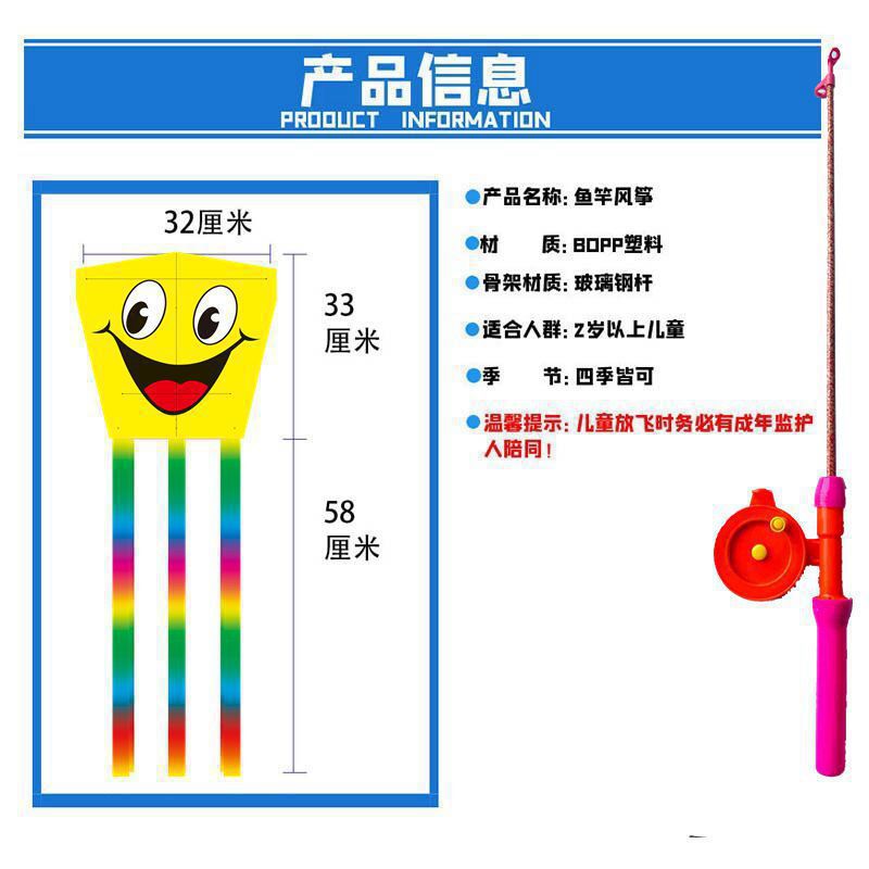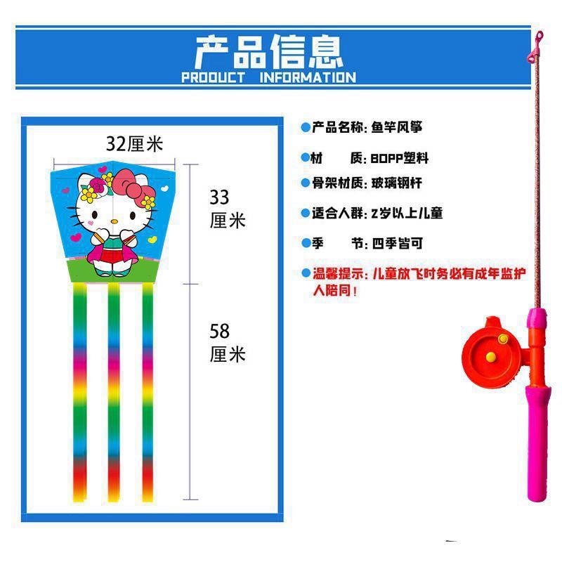 公园地摊风筝 儿童手持塑料鱼竿小风筝伸缩杆户外卡通风筝批发