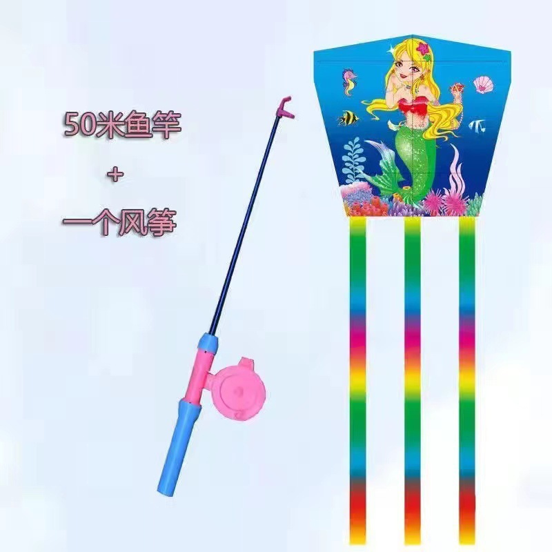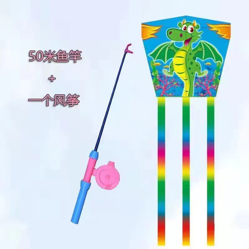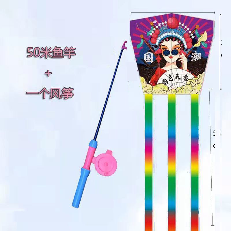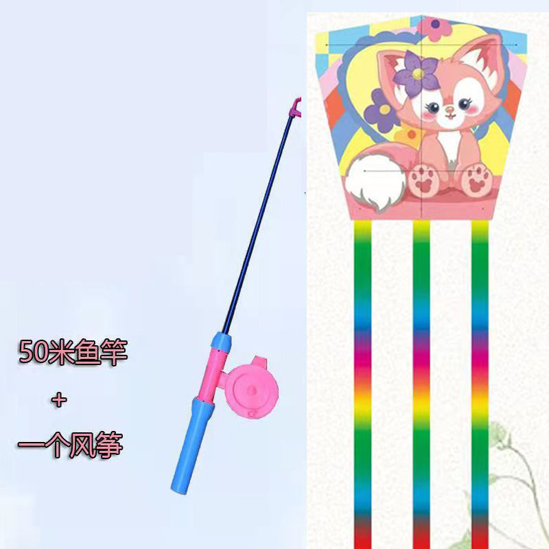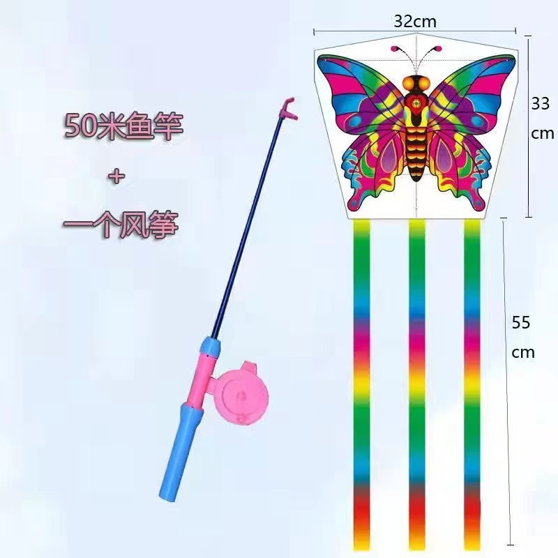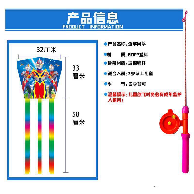 公园地摊风筝 儿童手持塑料鱼竿小风筝伸缩杆户外卡通风筝批发