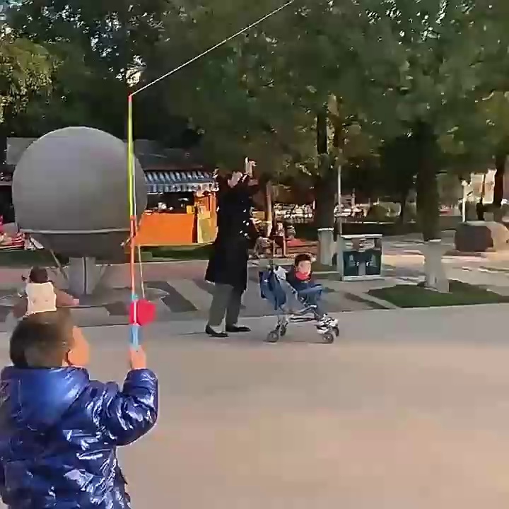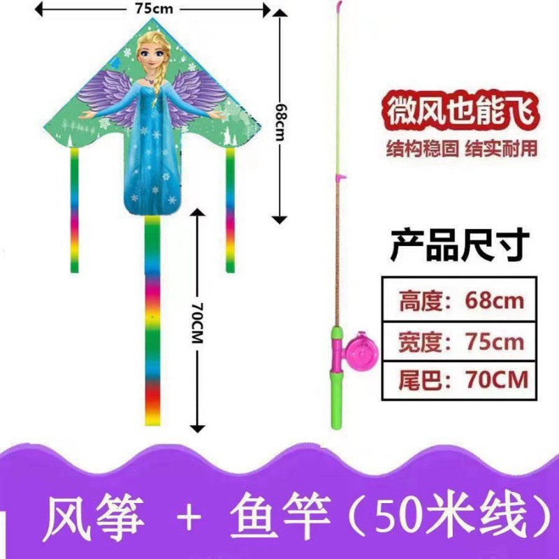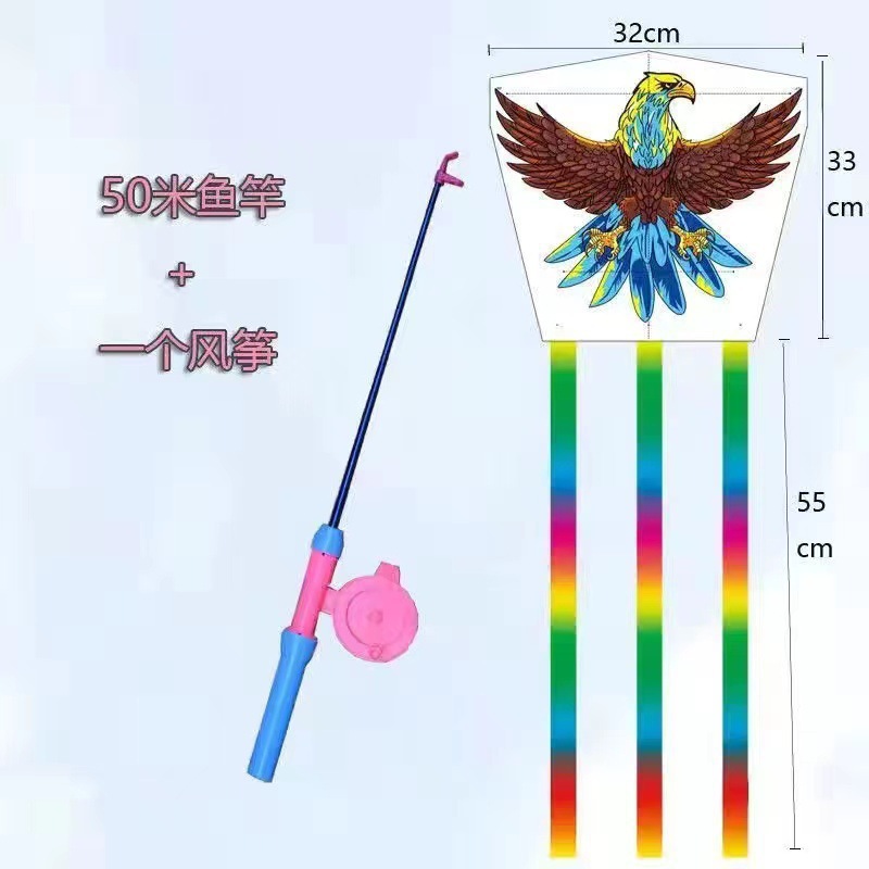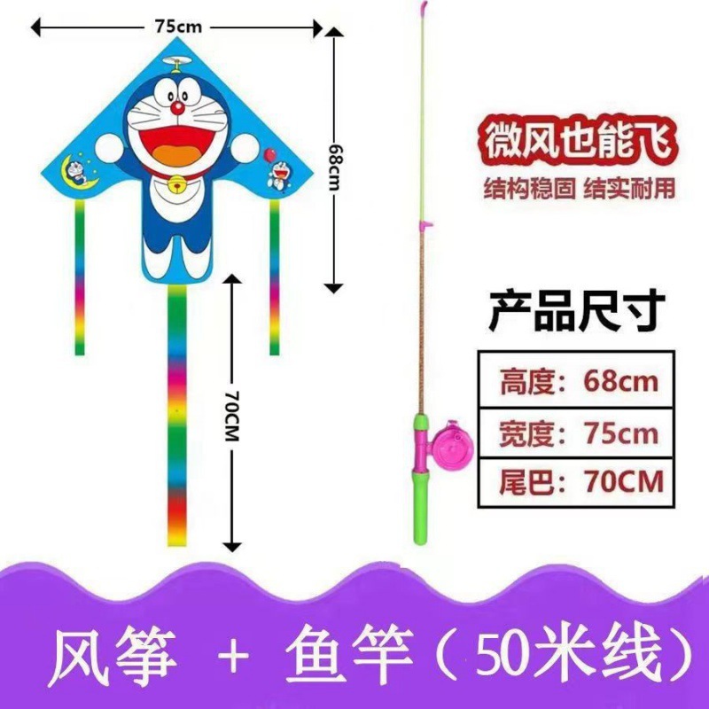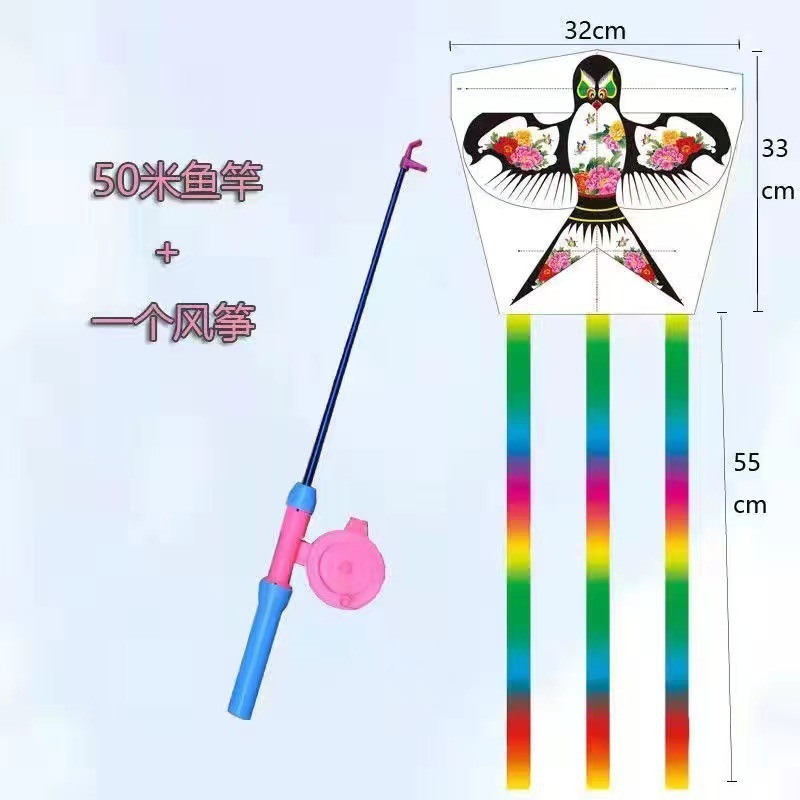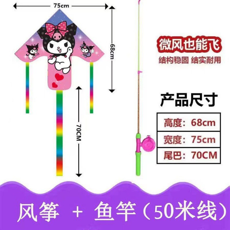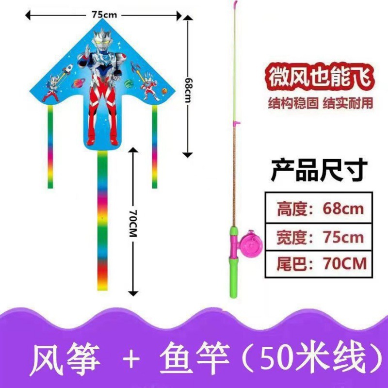 公园地摊风筝 儿童手持塑料鱼竿小风筝伸缩杆户外卡通风筝批发