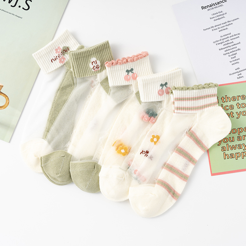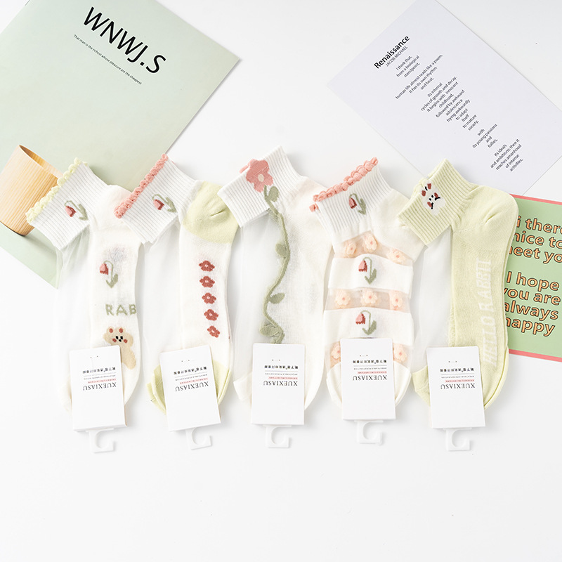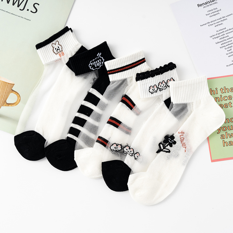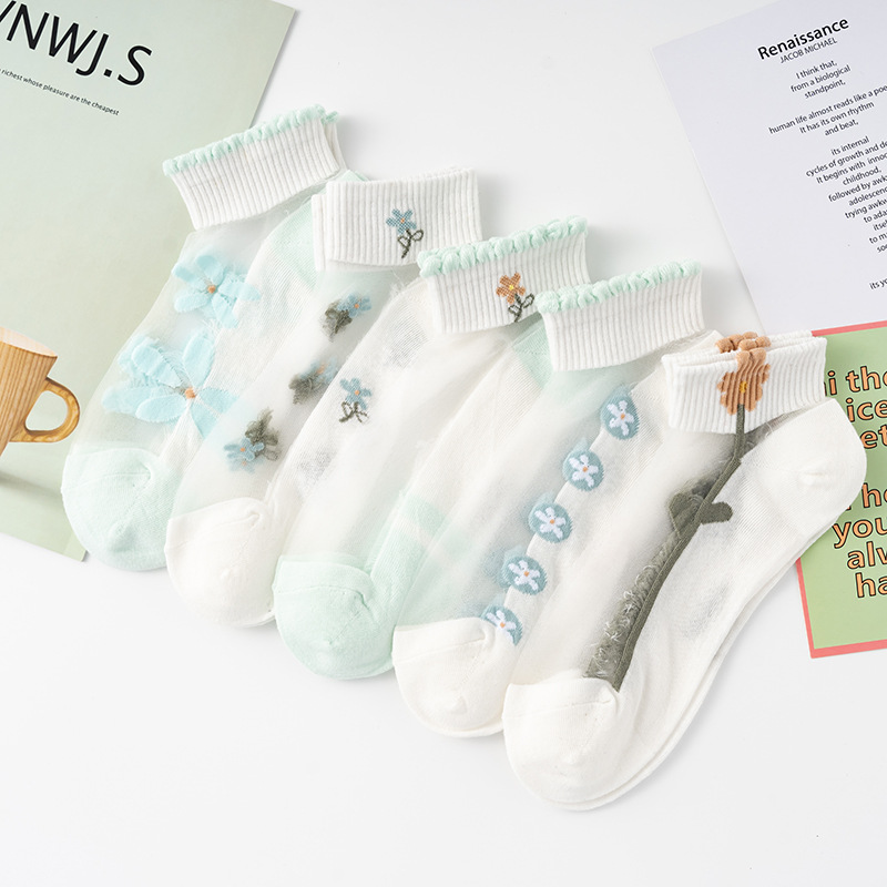 夏季袜子女船棉袜日系透气水晶丝袜纯网眼空调袜浅口隐形女士短袜
