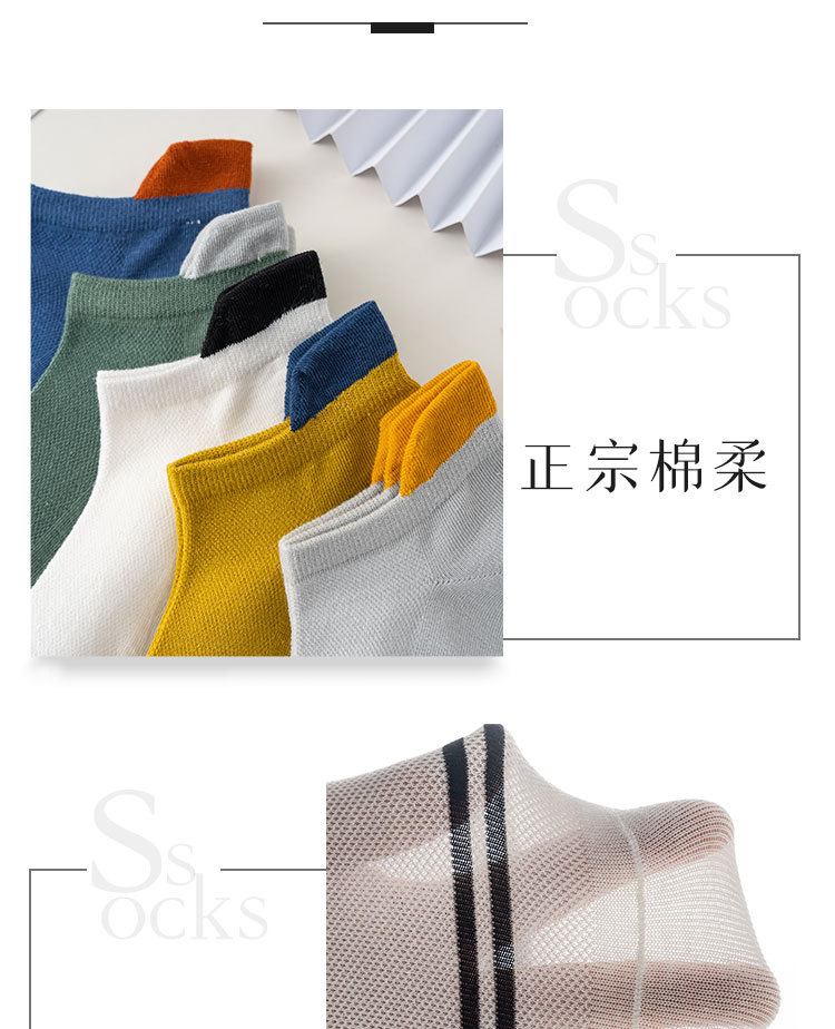 夏季棉袜子 男士运动网眼男船袜纯色短袜吸汗透气 厂家袜子批发