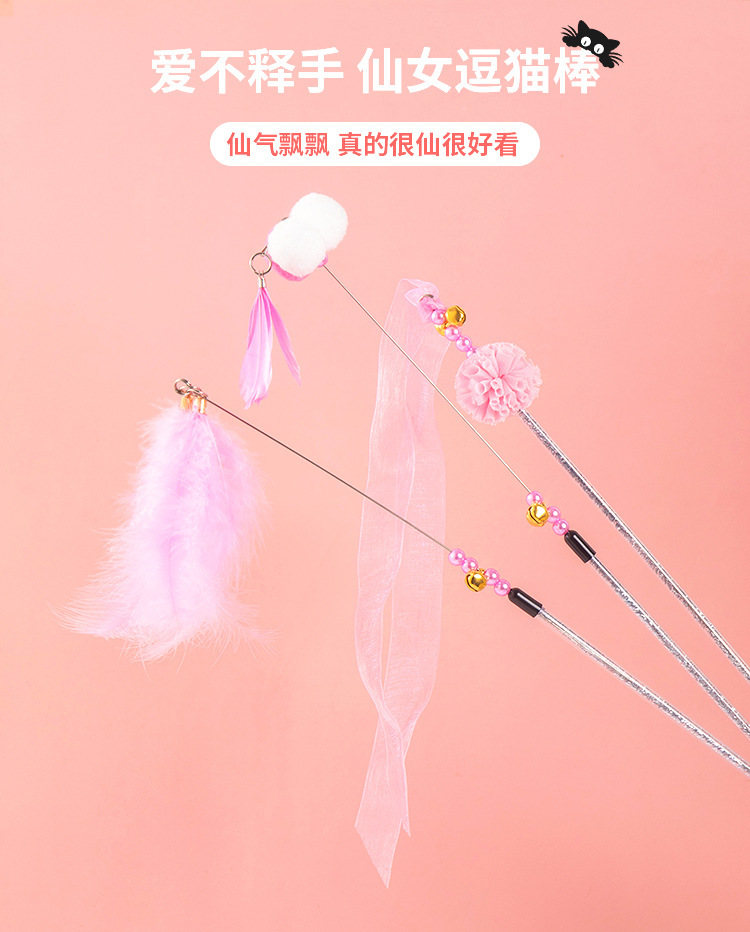 猫玩具逗猫棒自嗨仙女逗猫棒长杆耐咬羽毛带铃铛逗猫玩具猫咪用品