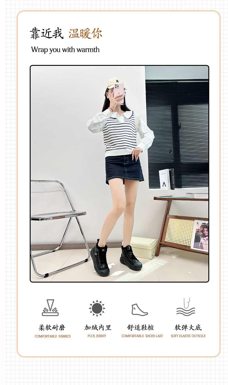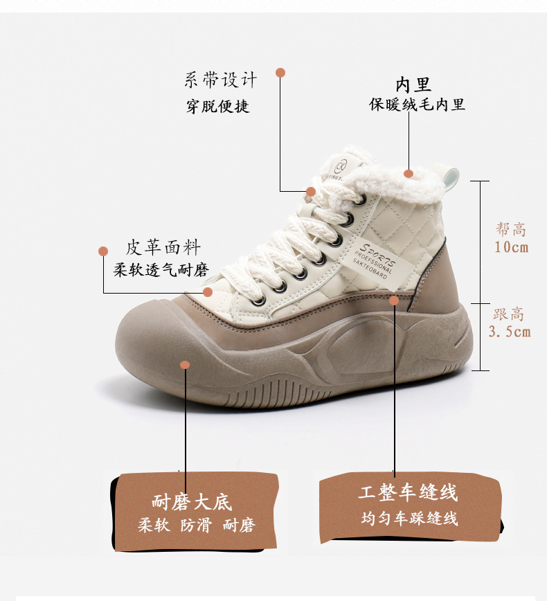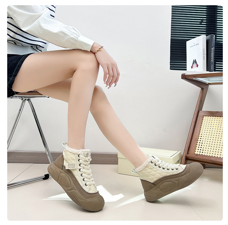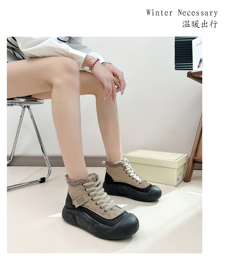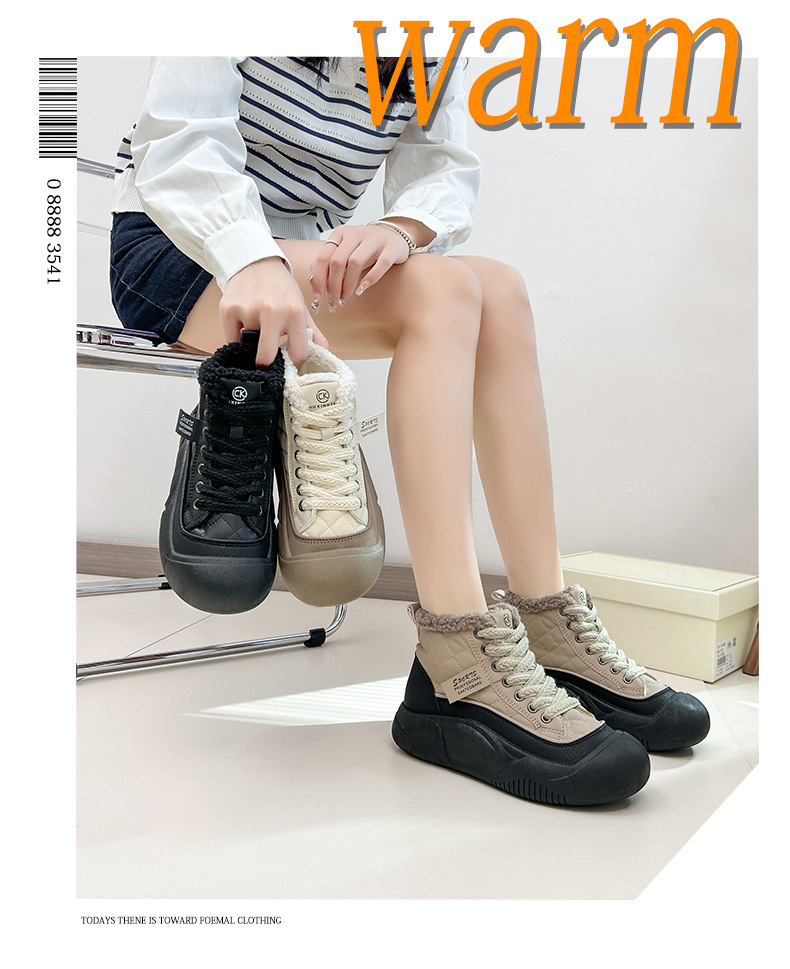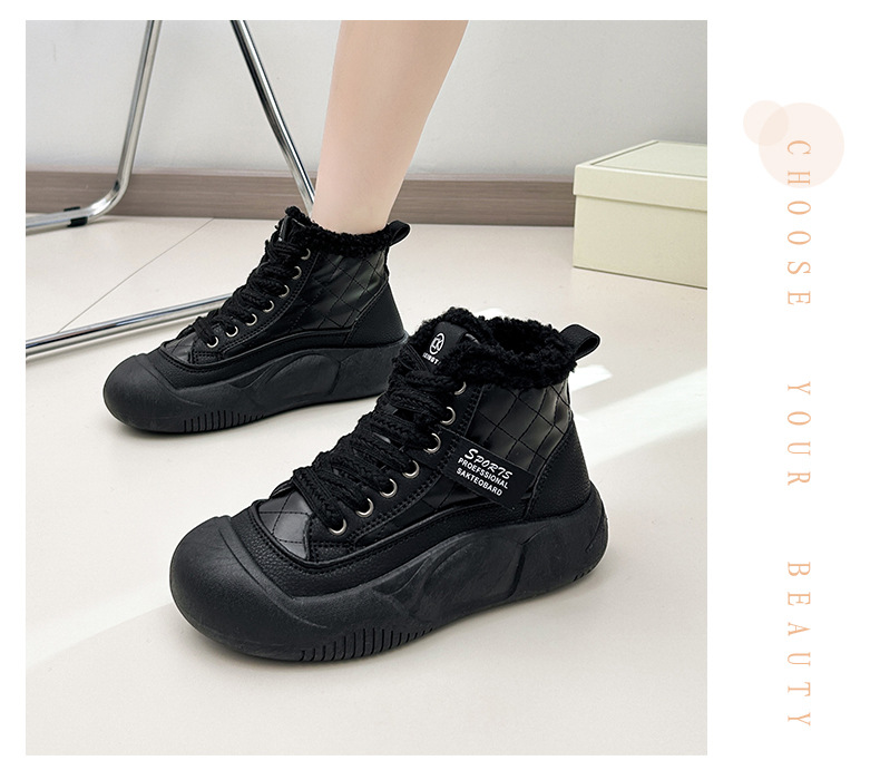 高帮鞋女2023冬季新款加绒女士棉鞋百搭面包鞋厚底雪地靴潮XT105