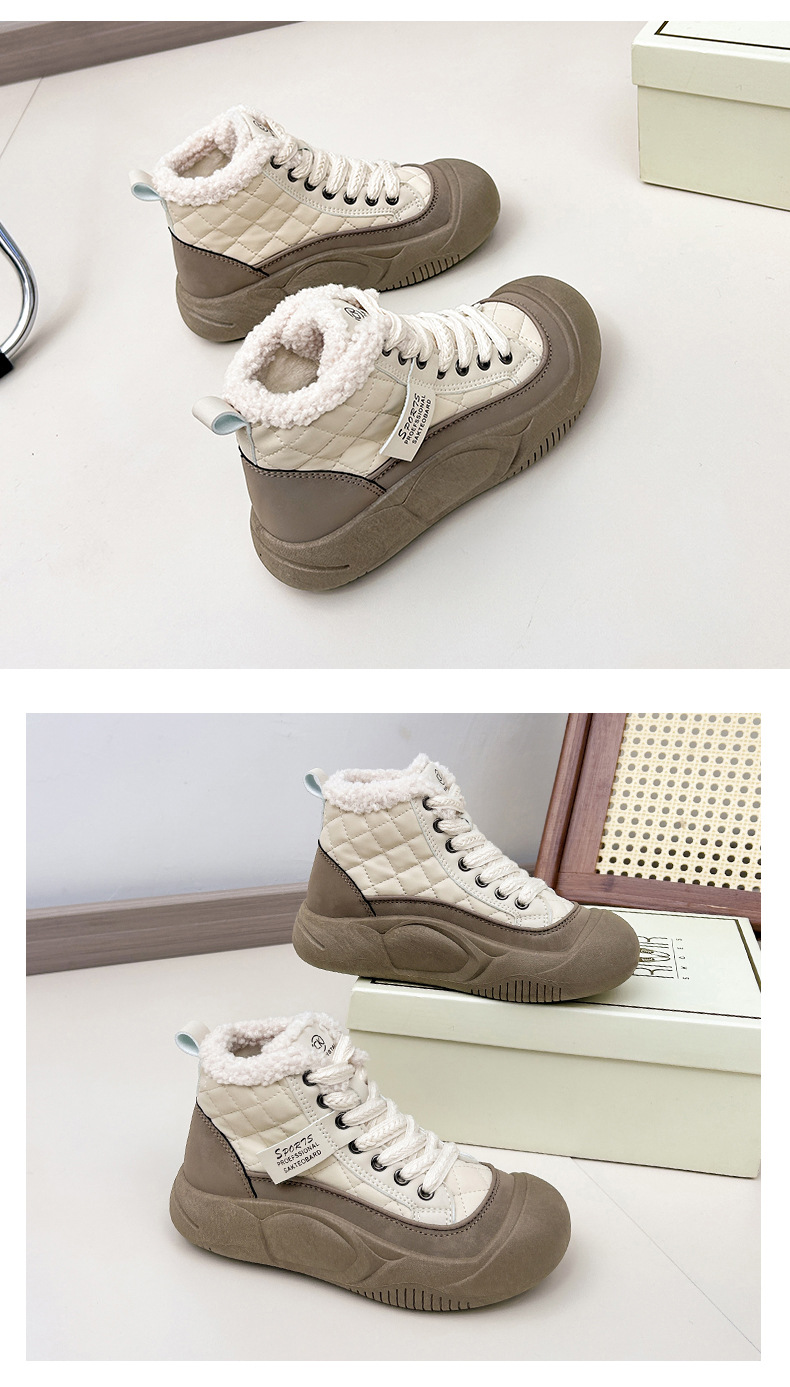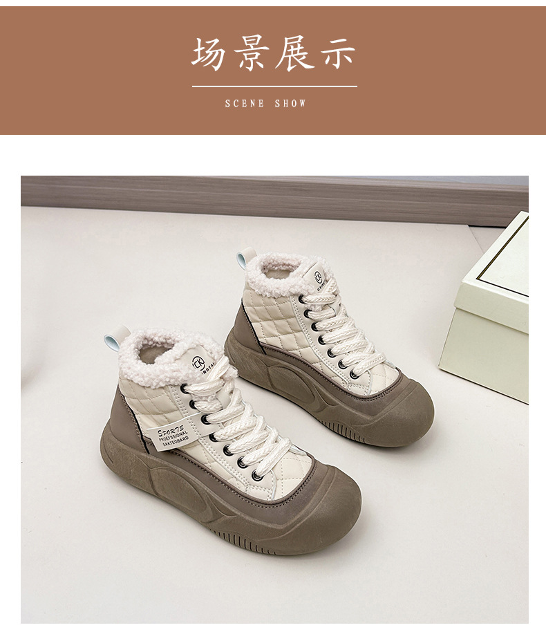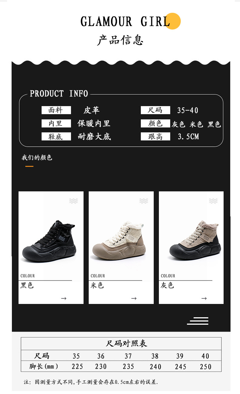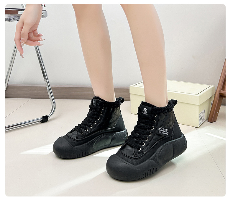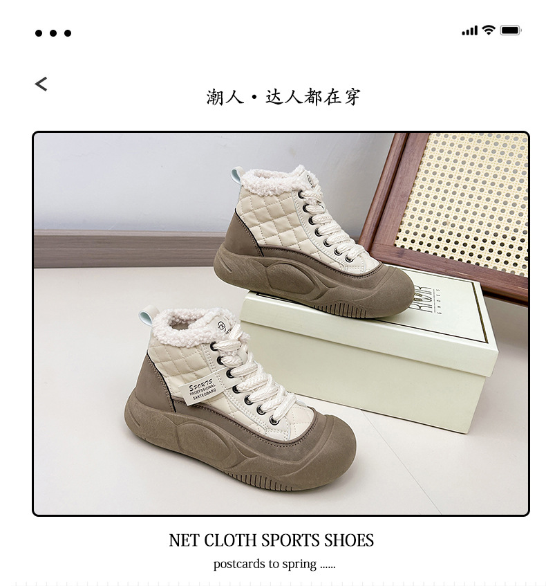 高帮鞋女2023冬季新款加绒女士棉鞋百搭面包鞋厚底雪地靴潮XT105