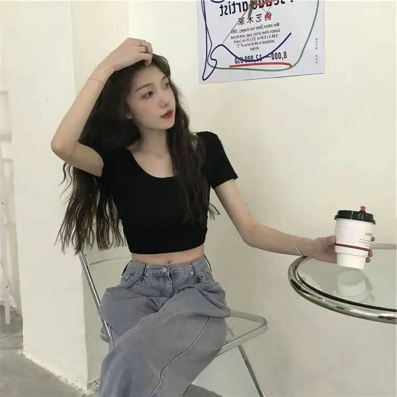 2024年新款网红短袖t恤女夏ins超火后背镂空修身显瘦短款露脐上衣