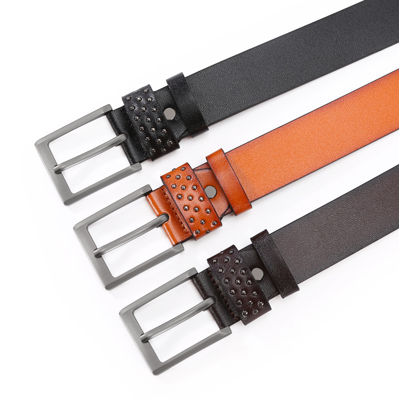新款男士针扣打孔皮带中青年商务百搭牛仔裤牛皮腰带厂家现货批发