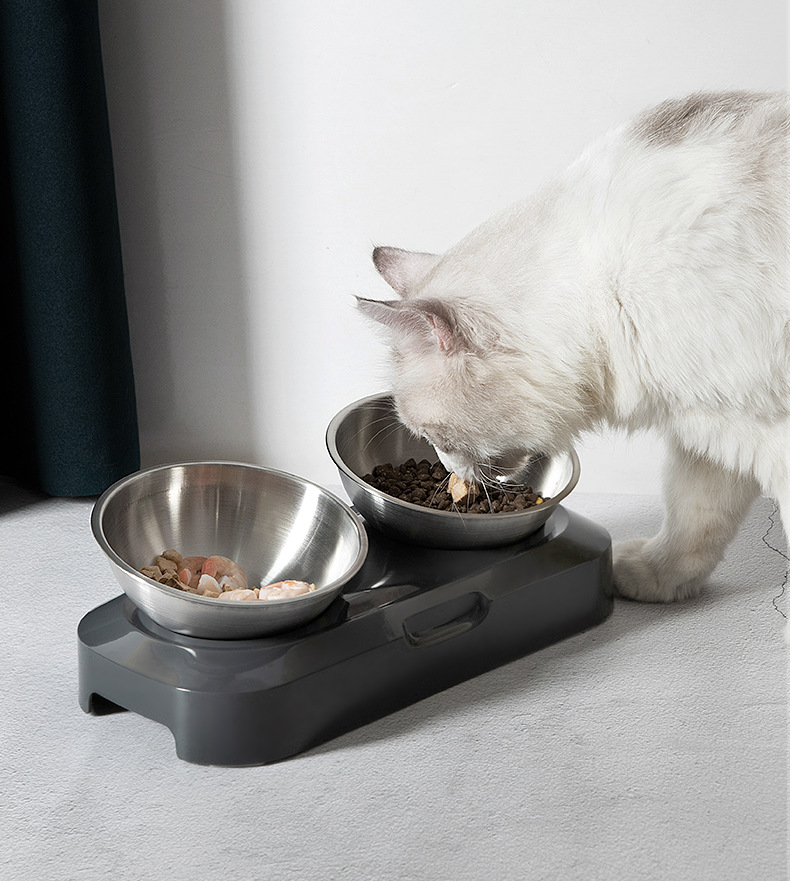 可调式不锈钢猫碗猫咪双碗猫猫食具倾斜式猫狗食盆不锈钢宠物碗