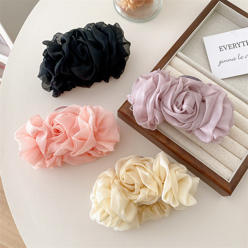 新款女玫瑰花花朵抓夹玫瑰花发夹