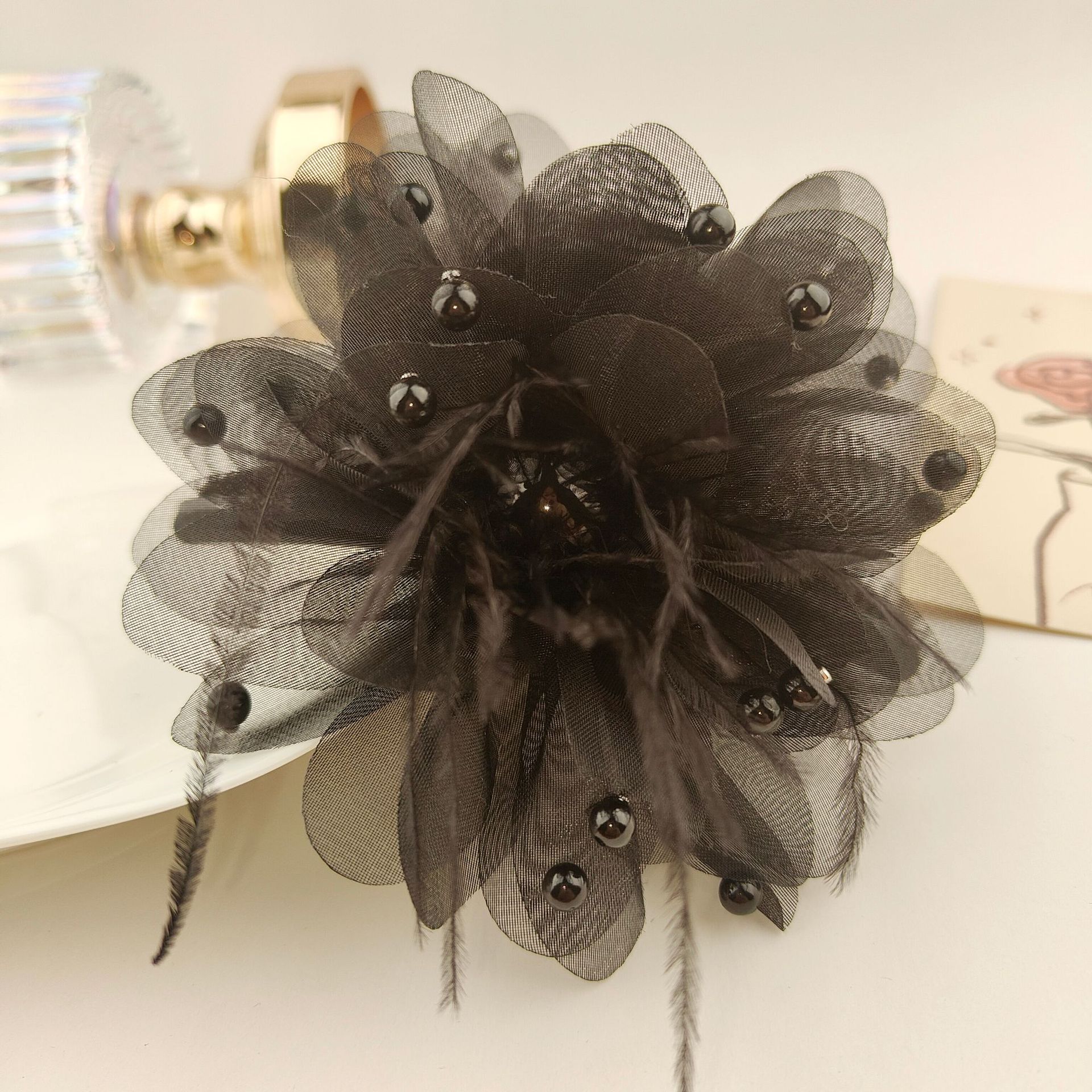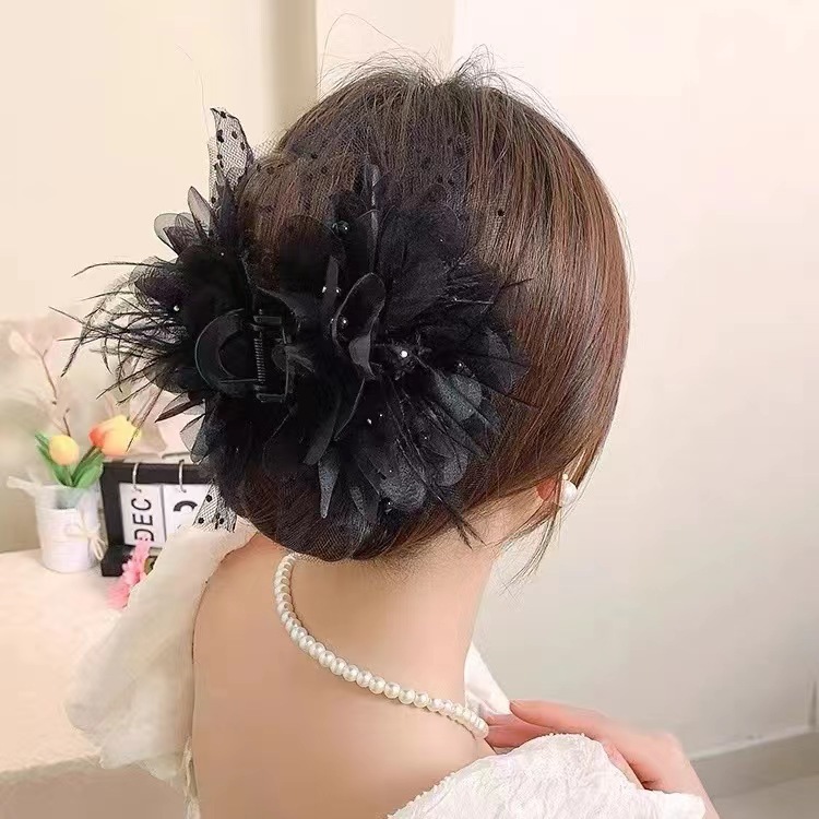 牡丹花羽毛抓夹发夹盘发抓夹鲨鱼夹中号发爪发饰抓夹