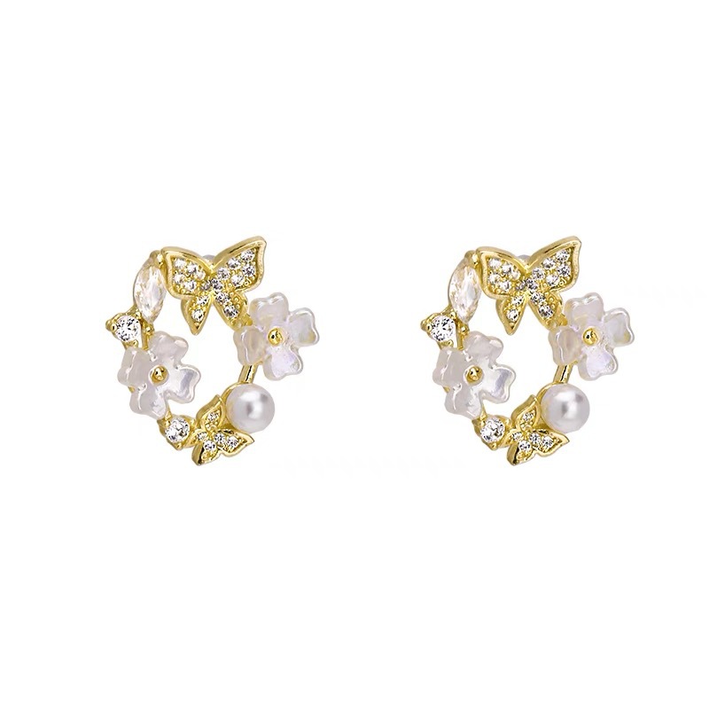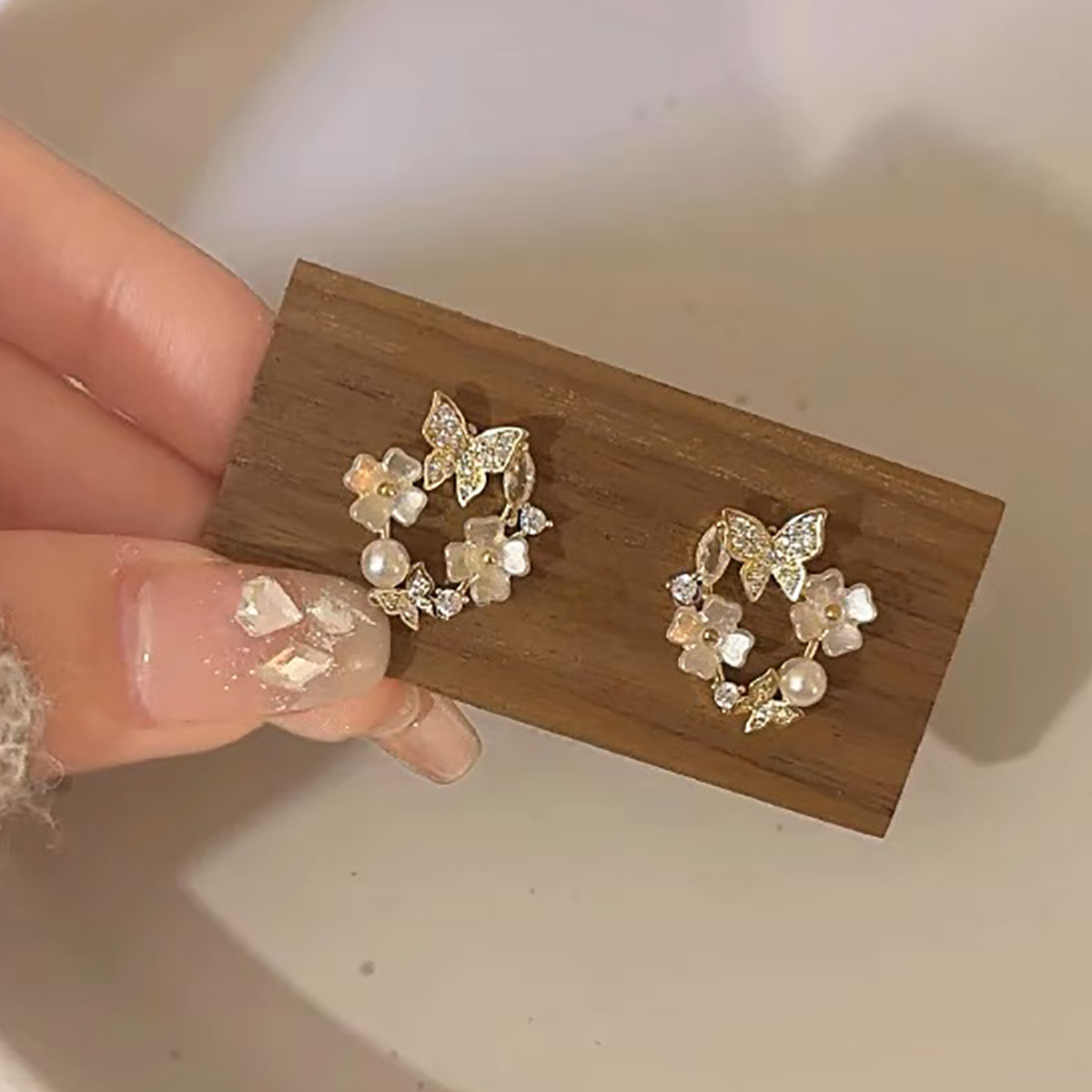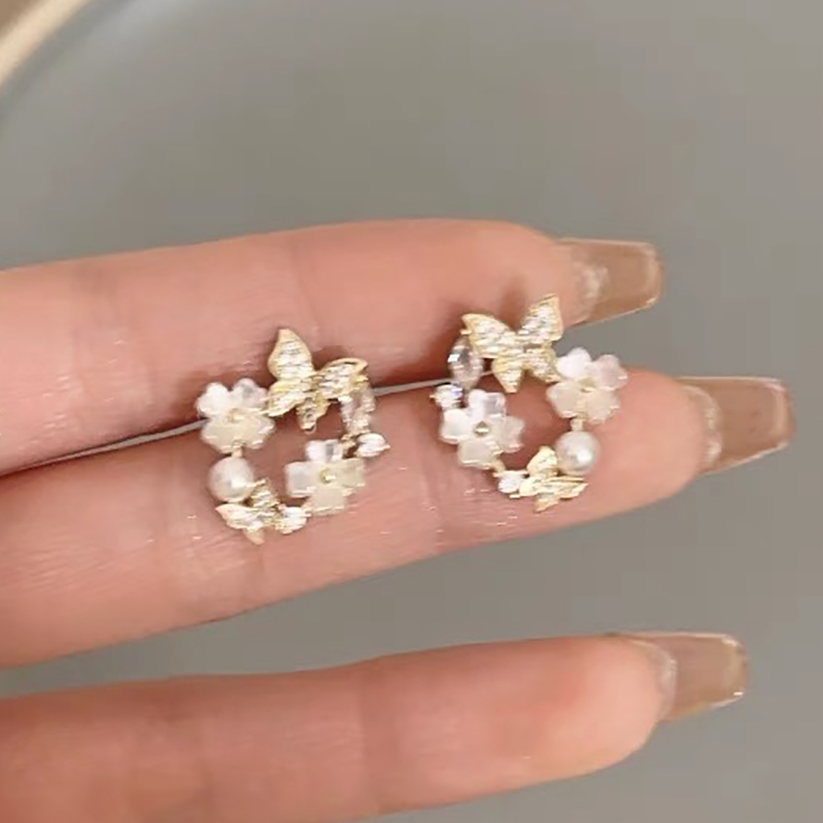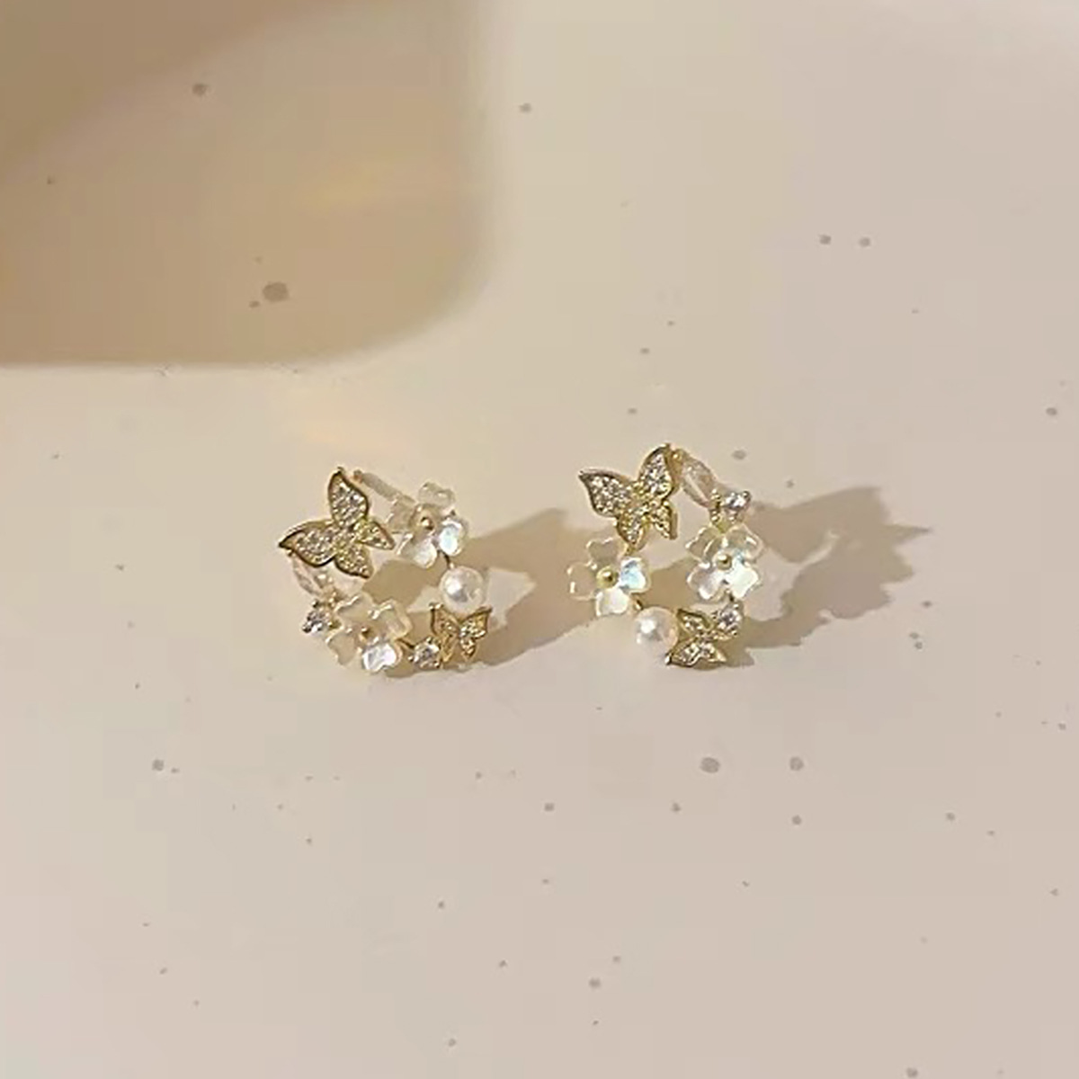 S925银针时尚简约气质法式高级感花朵蝴蝶耳钉小众精致耳环耳饰女