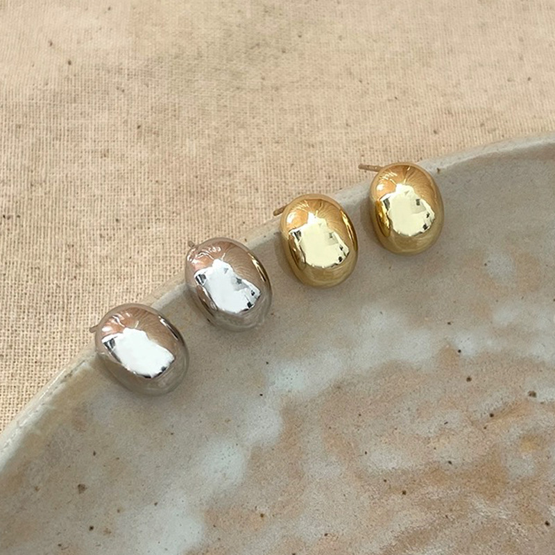 S925银针时尚轻奢小众高级感光面豆豆耳钉气质个性百搭耳环耳饰女