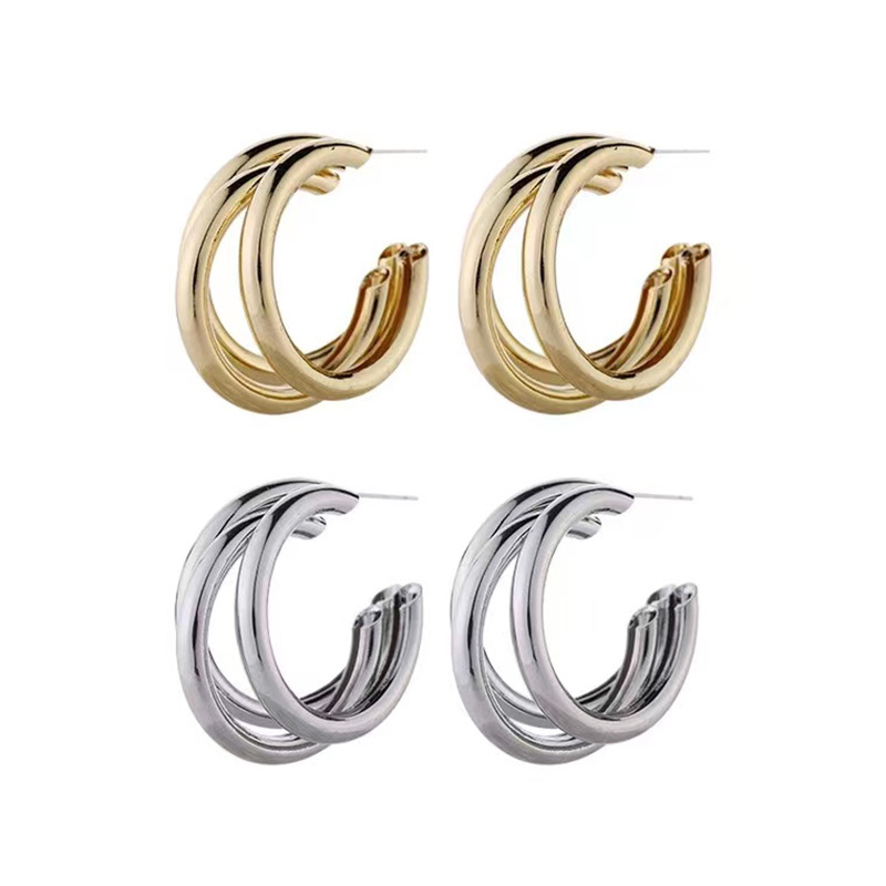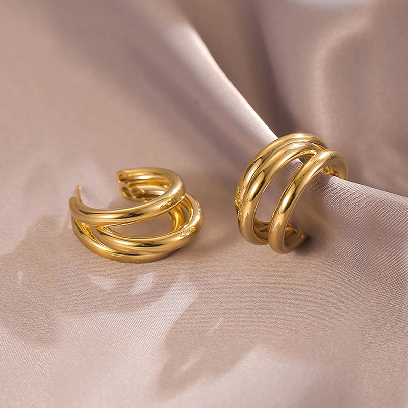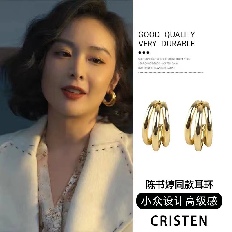 欧美跨境金色三环圆圈耳环气质temu耳圈爆款shein小众C型耳饰批发