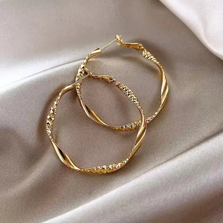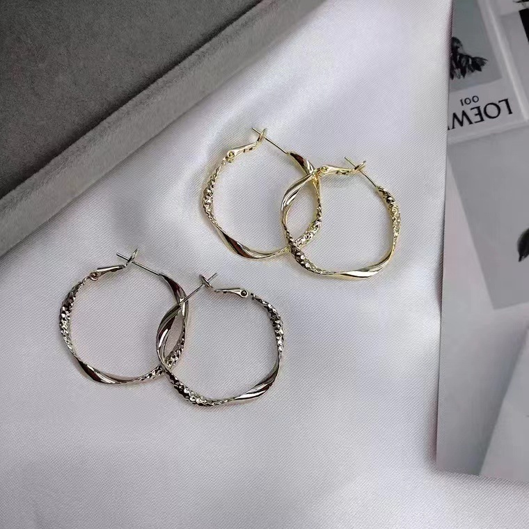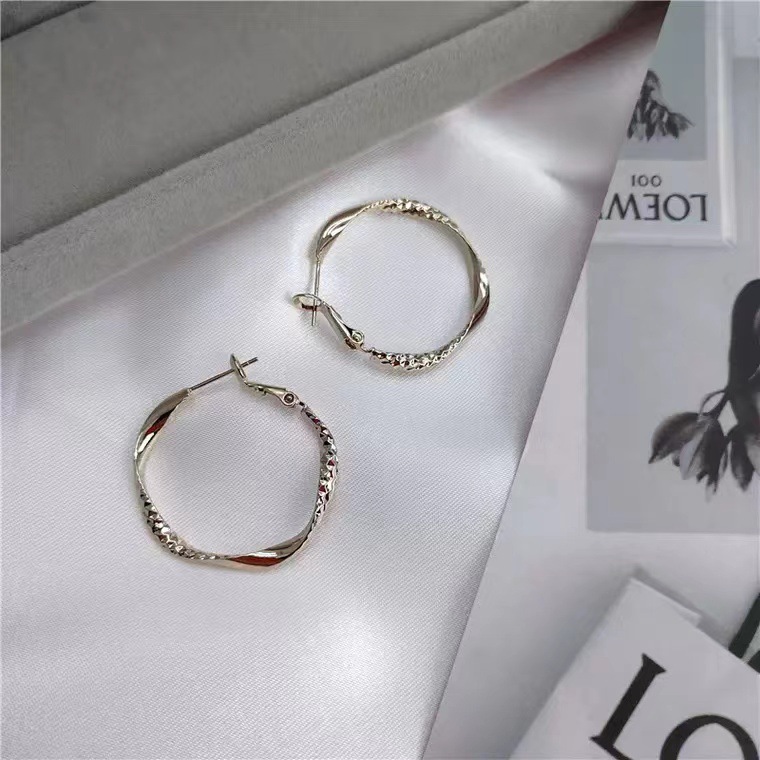 简约ins风新款S925银针耳环欧美个性夸张气质复古大圆圈耳圈耳饰