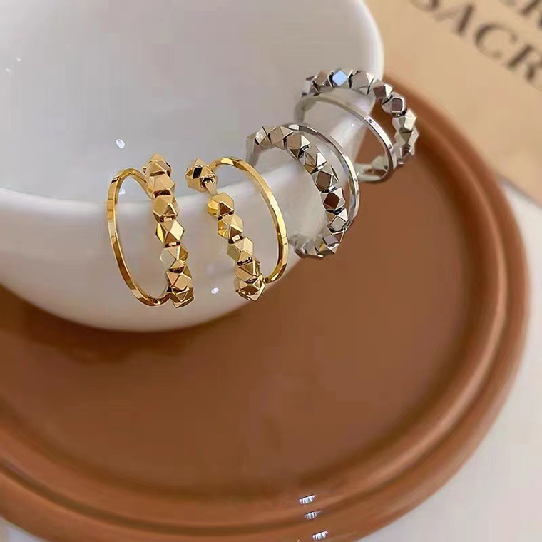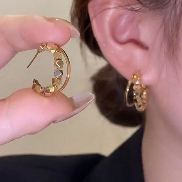 韩国金属风双层碎银耳圈小众耳环时尚新款潮耳坠女高级感气质耳饰
