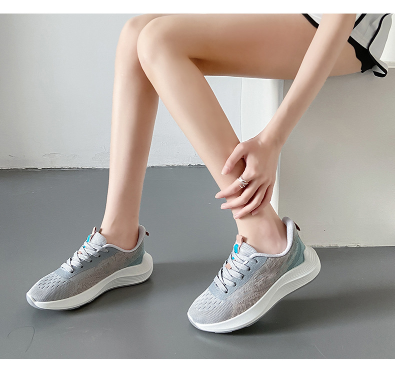 时尚轻便软底运动鞋女2023秋季新款轻便军训跑步鞋女飞织透气女鞋