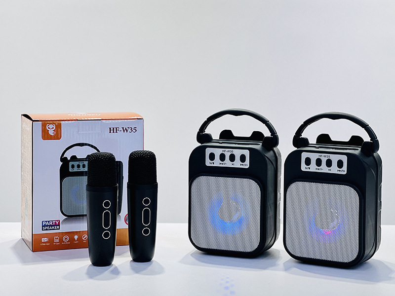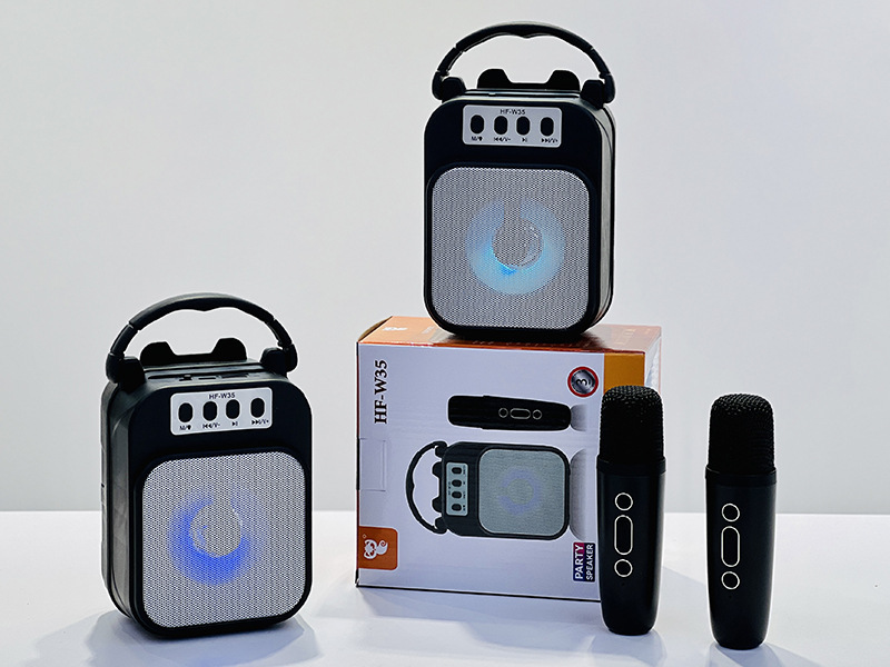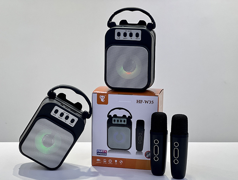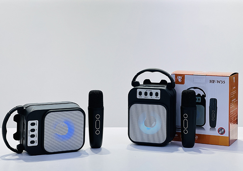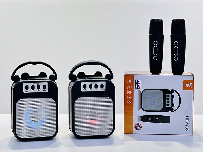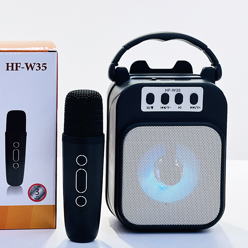 HF-W35 跨境便携式迷你版K歌带麦克风高音质手提无线蓝牙音响音箱