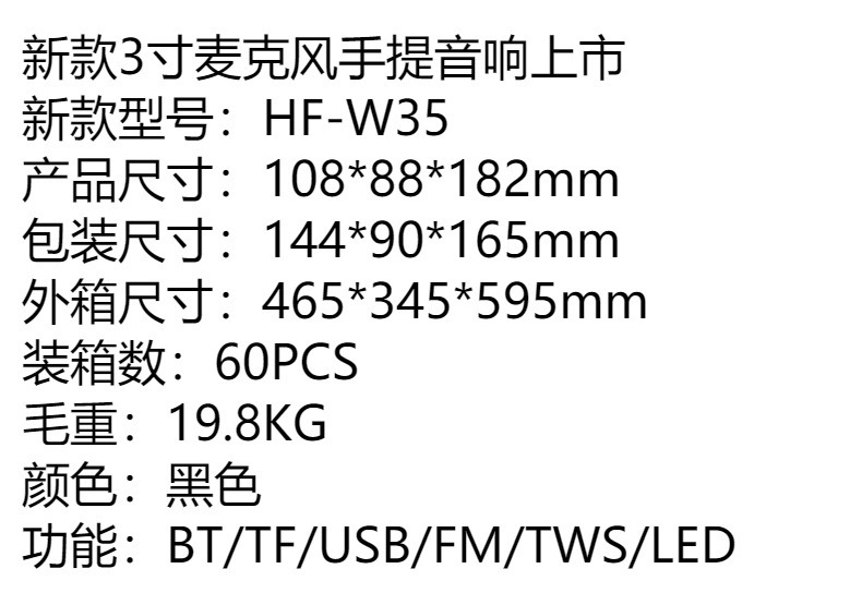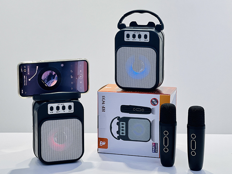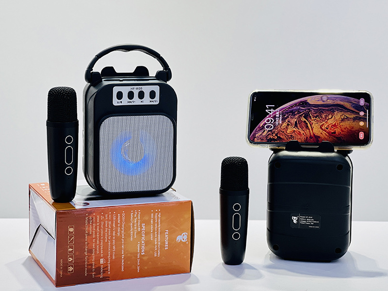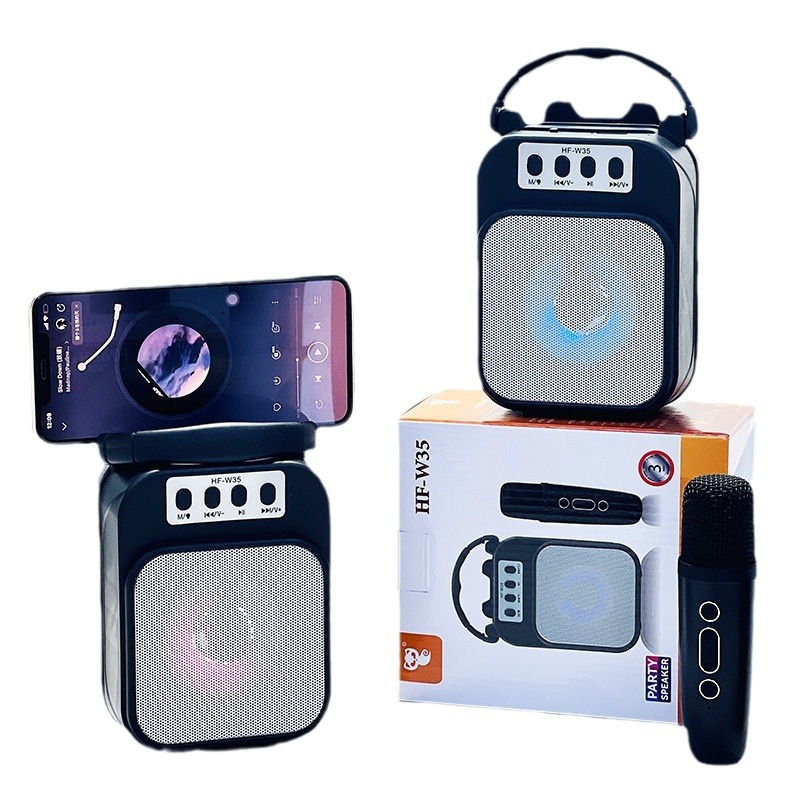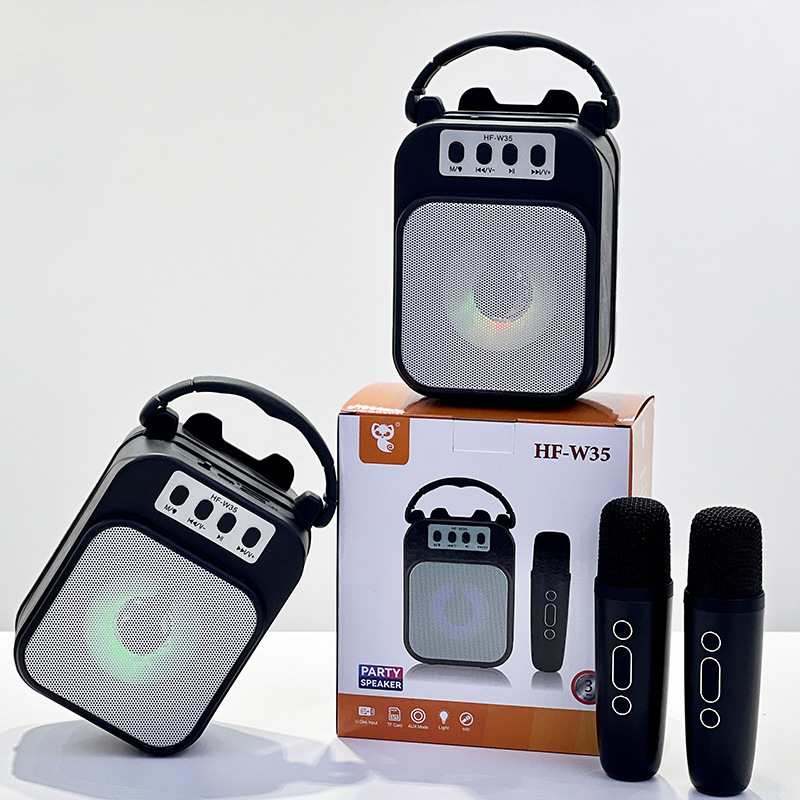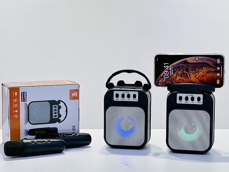 HF-W35 跨境便携式迷你版K歌带麦克风高音质手提无线蓝牙音响音箱