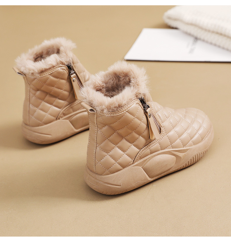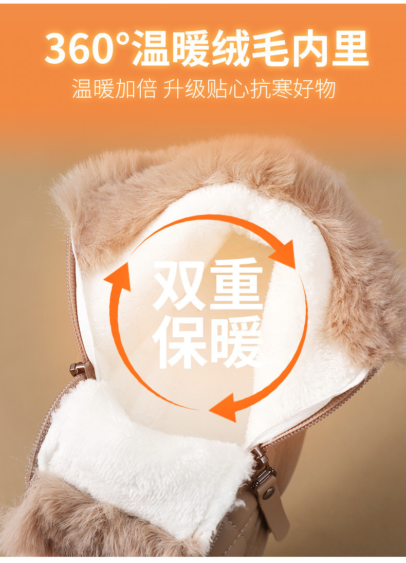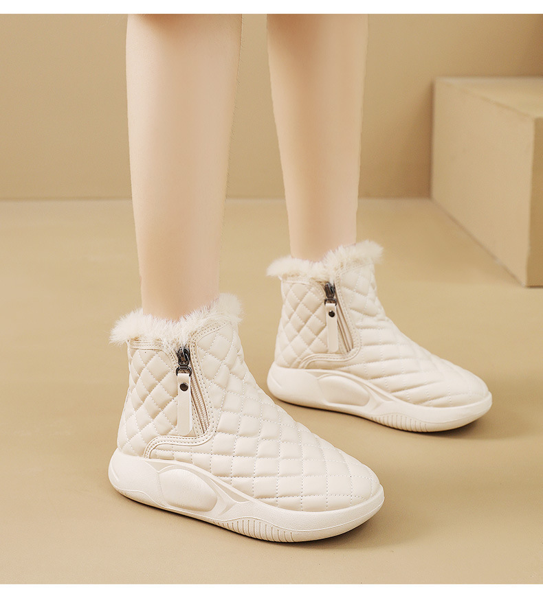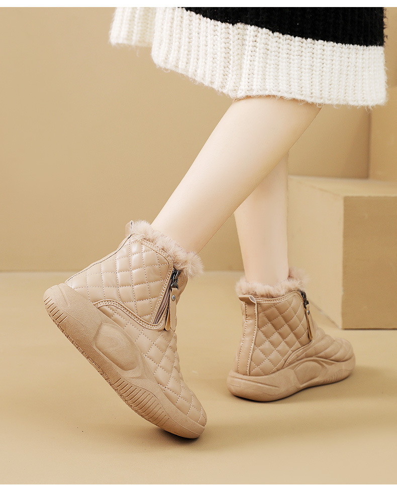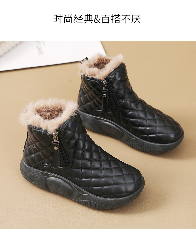 2023秋冬季新款保暖校园风百搭雪地靴皮面厚底加绒加厚高帮棉鞋女