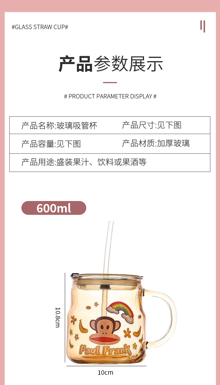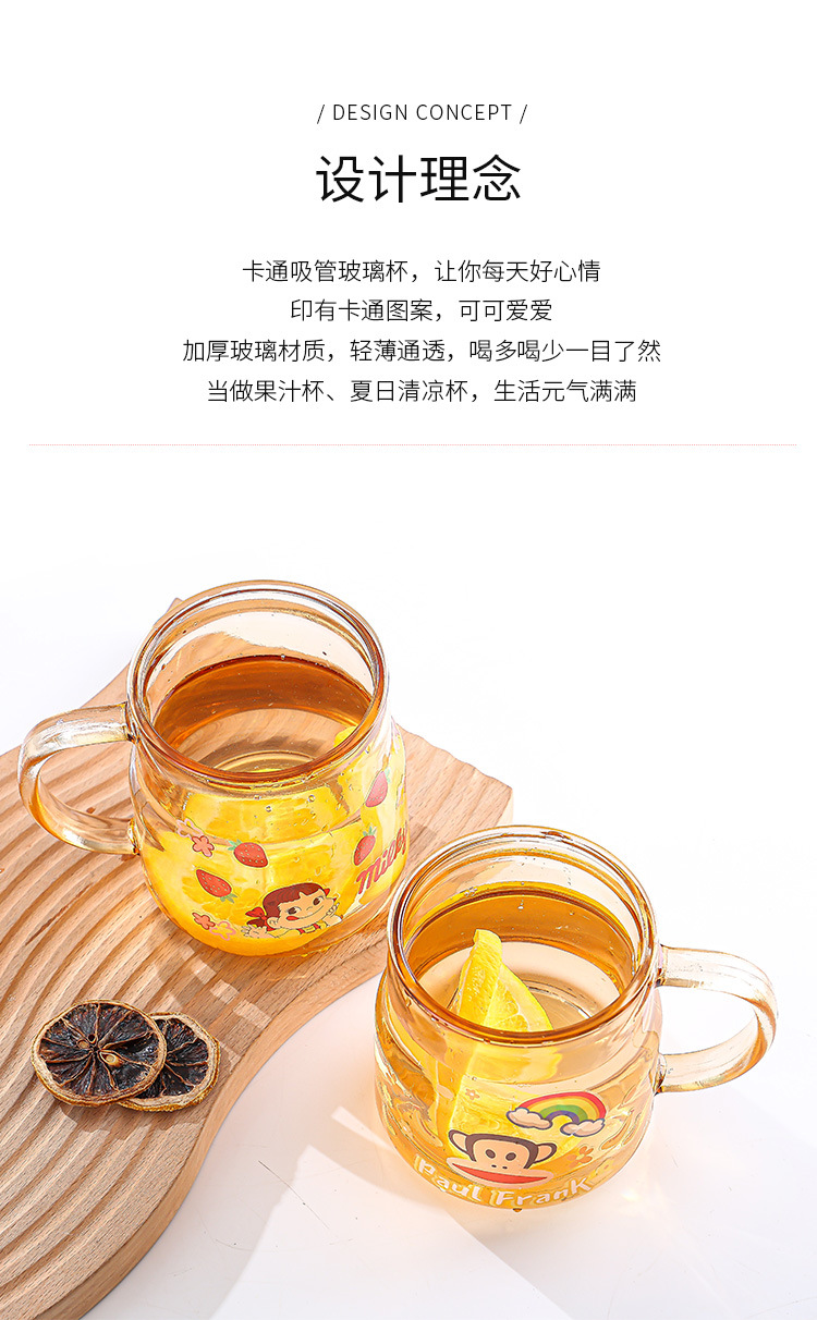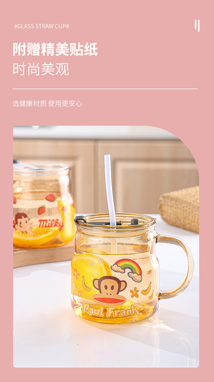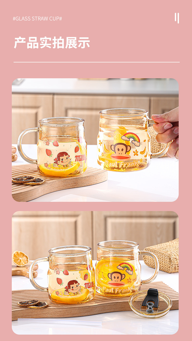 新款玻璃杯吸管杯泡茶杯大容量办公室水杯带把手杯子可爱卡通女生