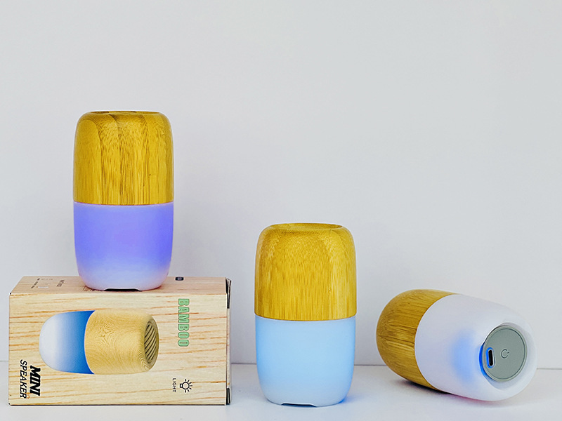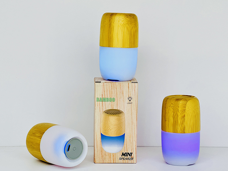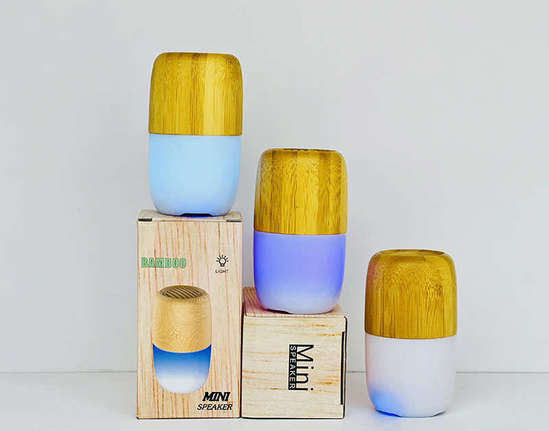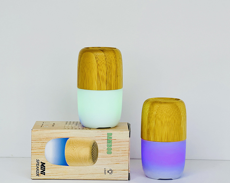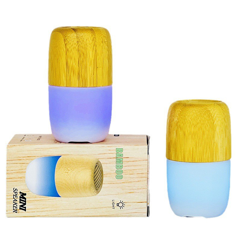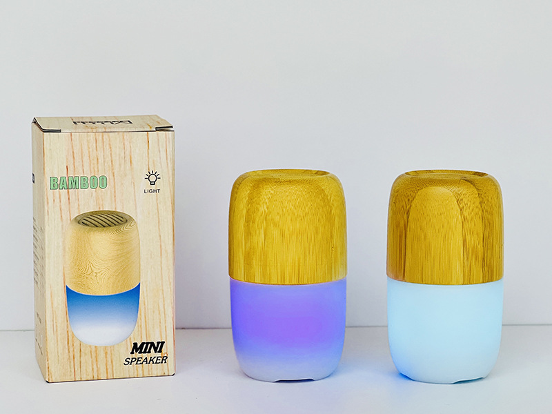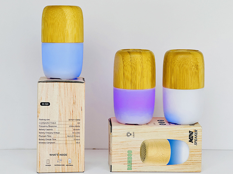 跨境M-Q4创意胶囊蓝牙音箱带灯炫彩户外便携式小圆柱音响木纹音响