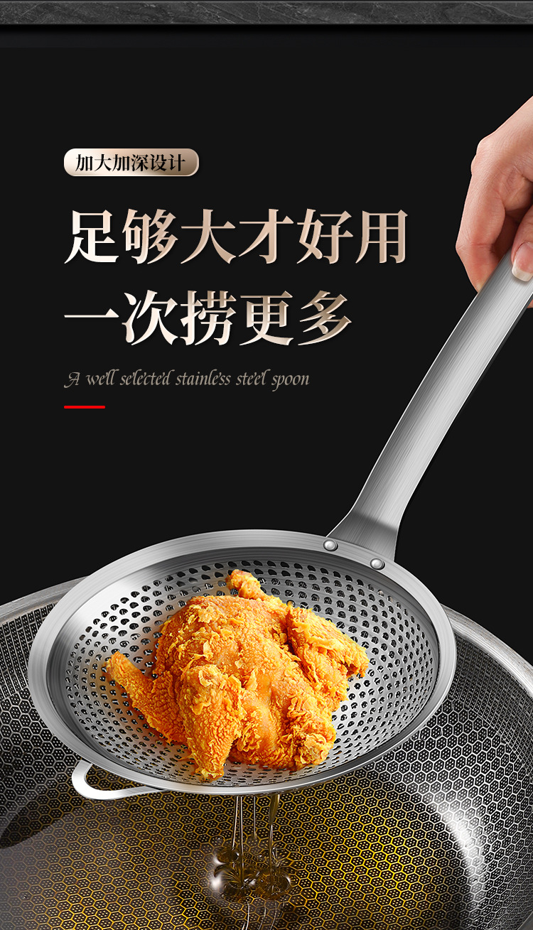 304不锈钢漏勺家用厨房捞饺子面条特大漏勺油炸漏网焯水过滤捞篱