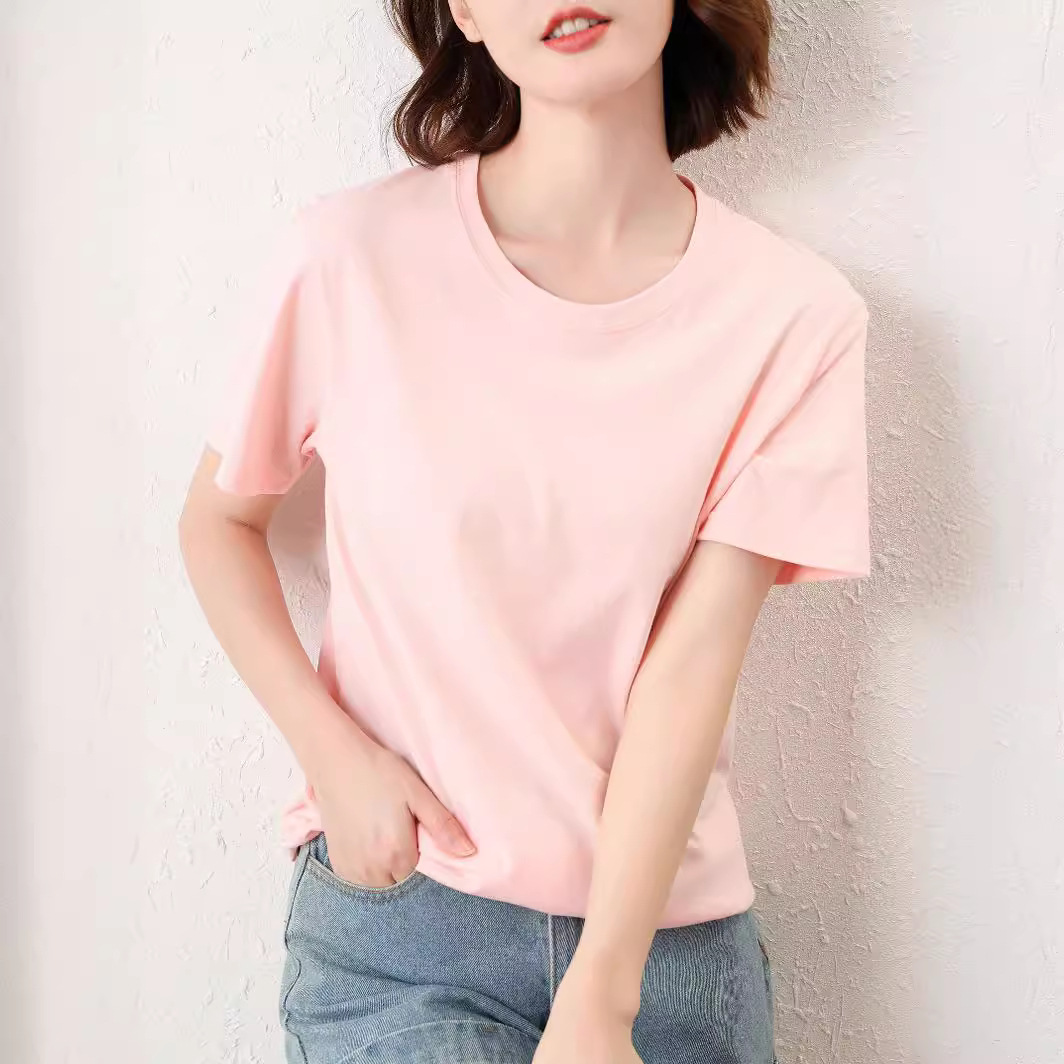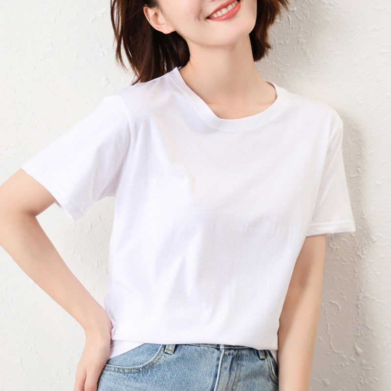100%纯棉透气2024夏季女装新款宽松圆领短款男女同款情侣短袖T恤