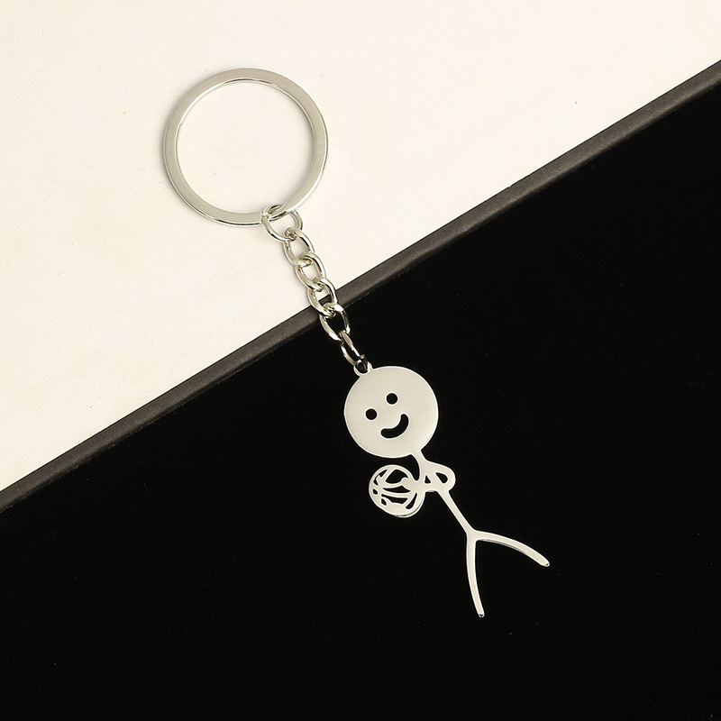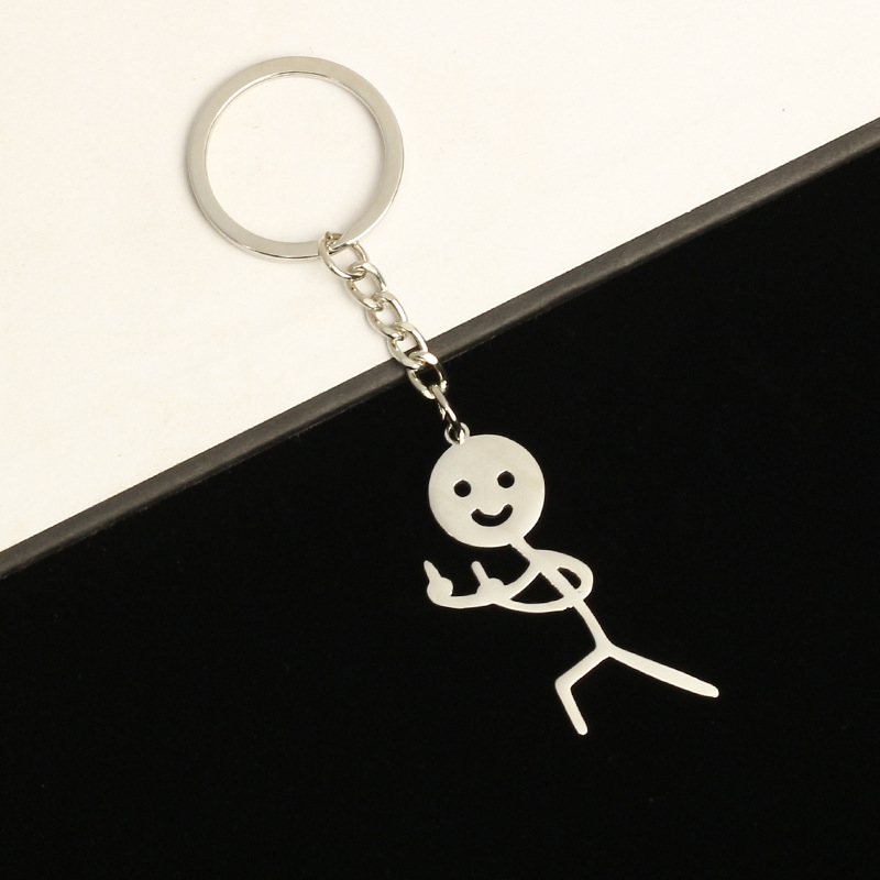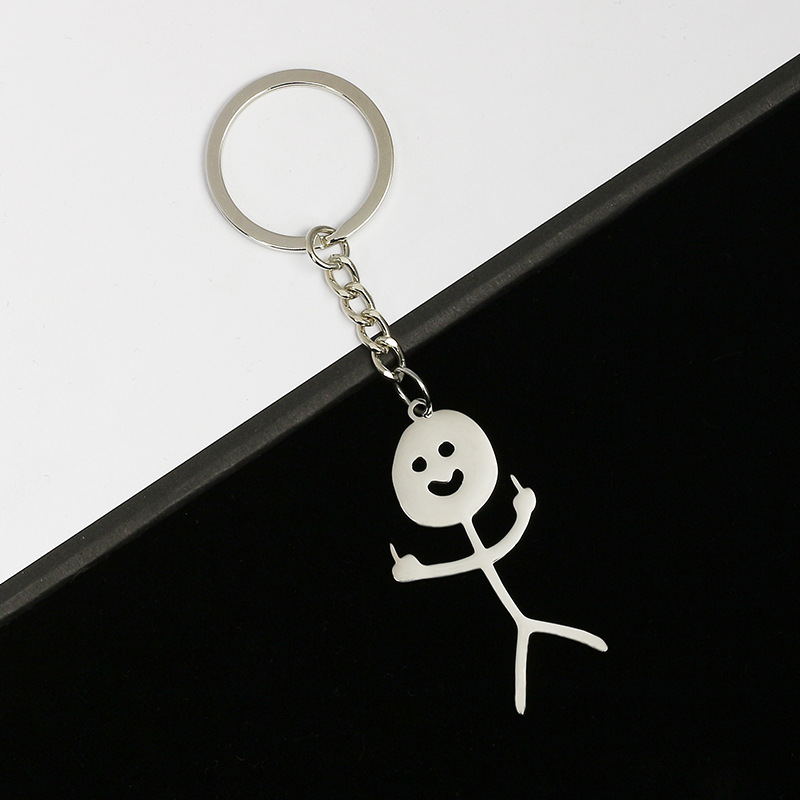 亚马逊礼品批发卡通情侣挂件趣味个性涂鸦火柴人小人不锈钢钥匙扣