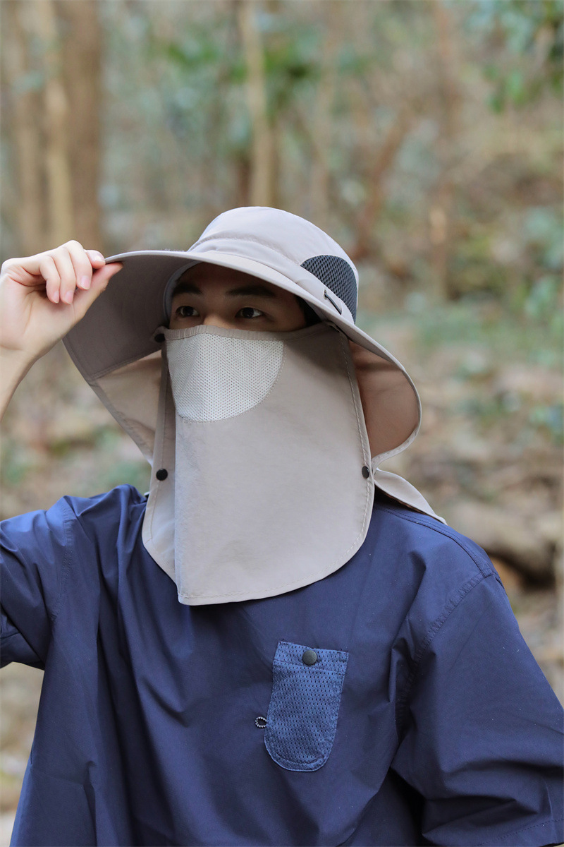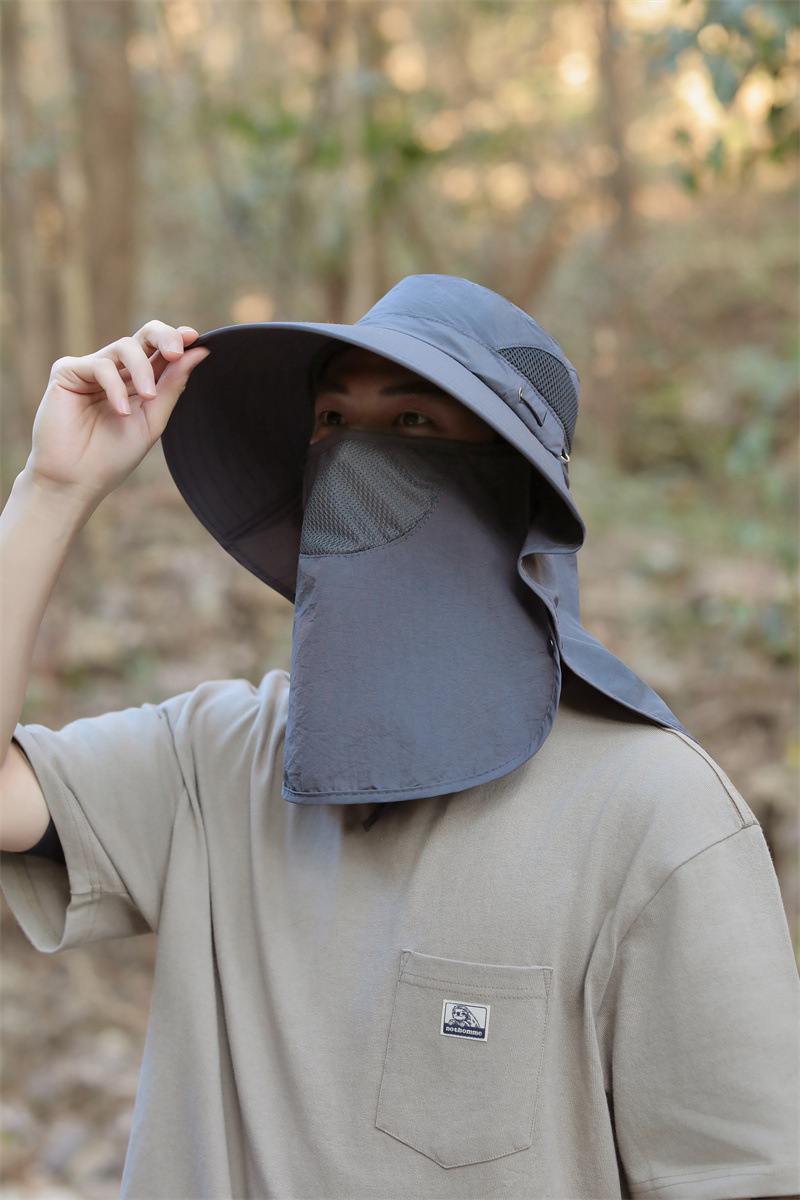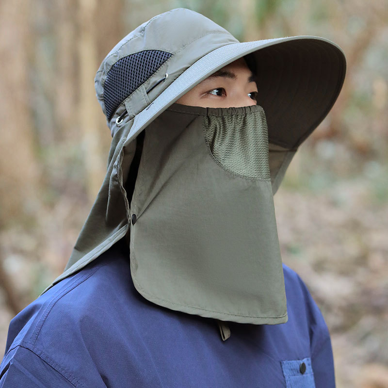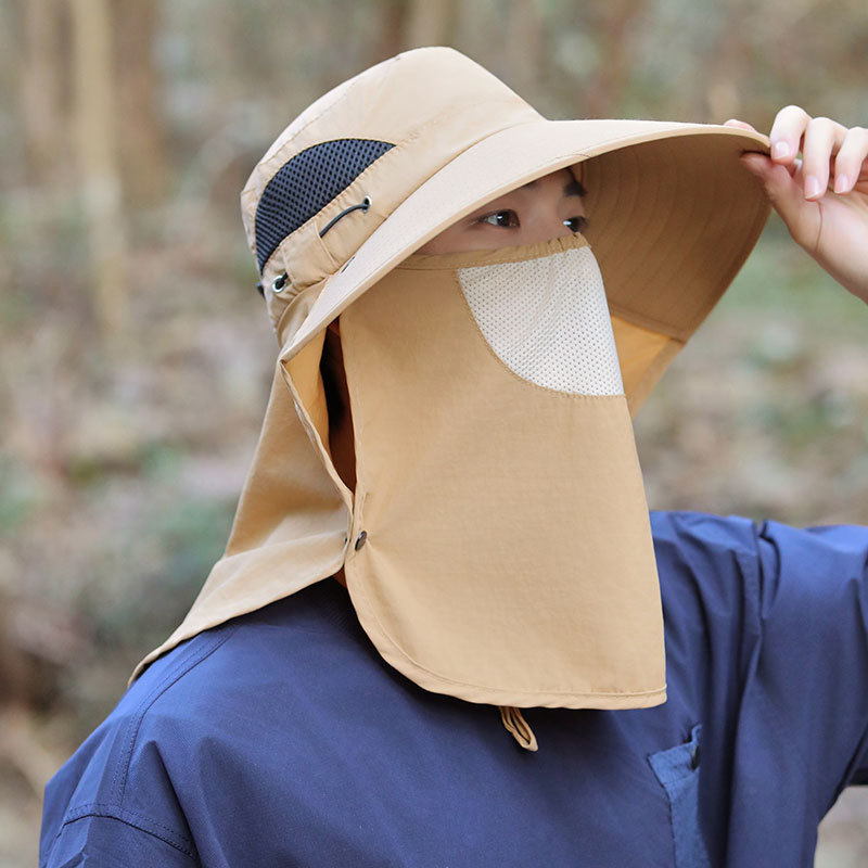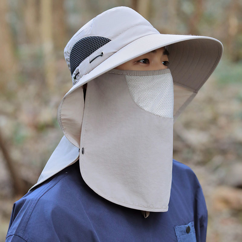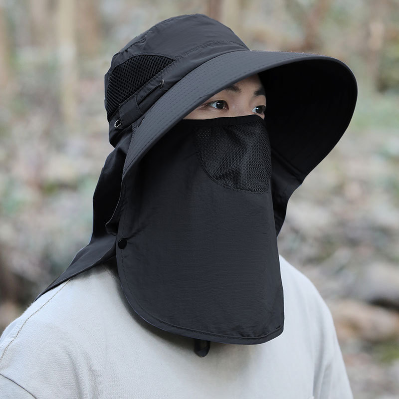big brim sun hat men‘s summer fishing cover face shawl hat outdoor uv-proof mesh veil alpine cap