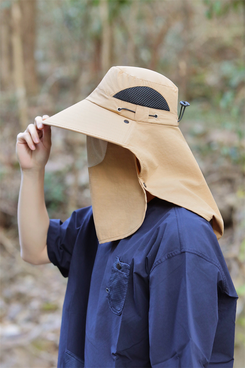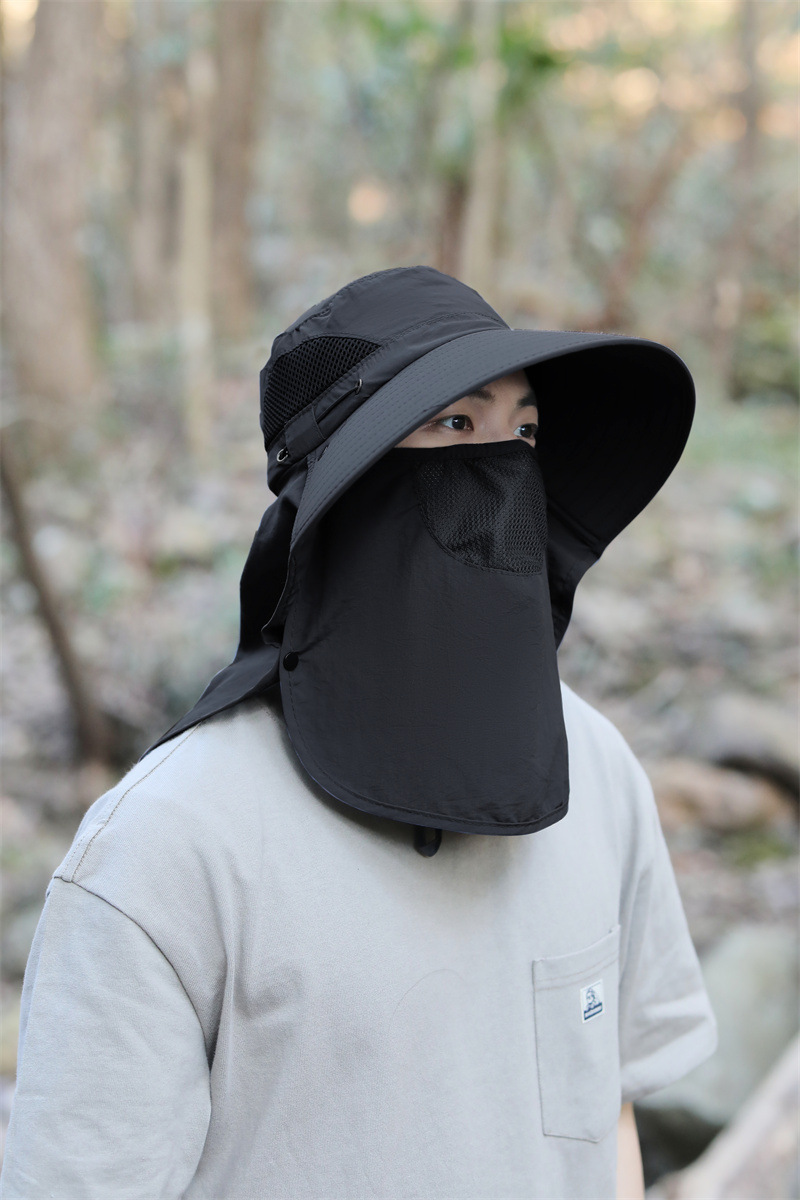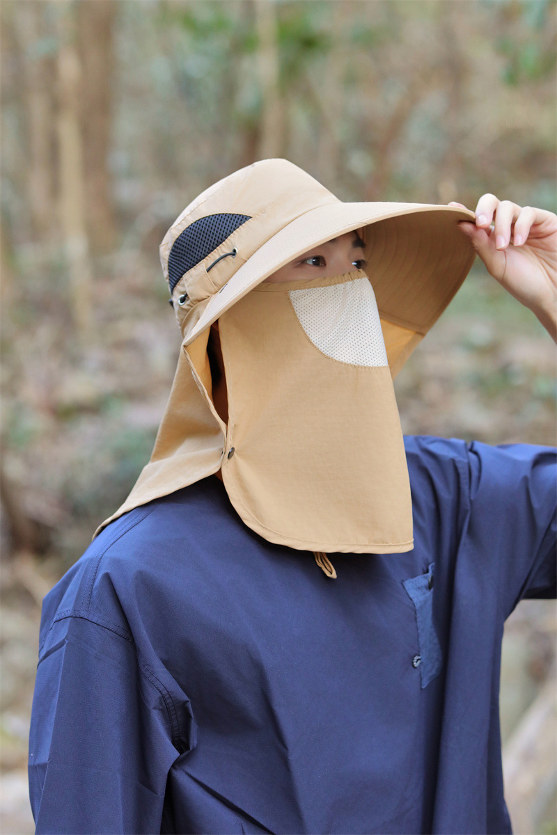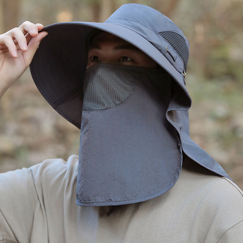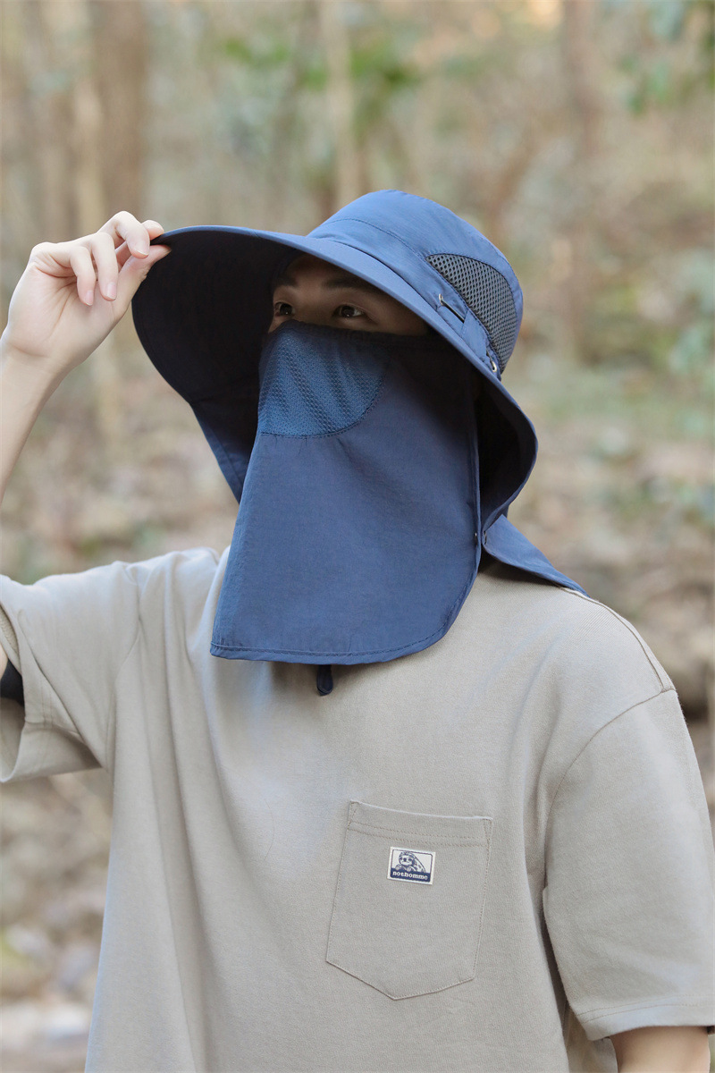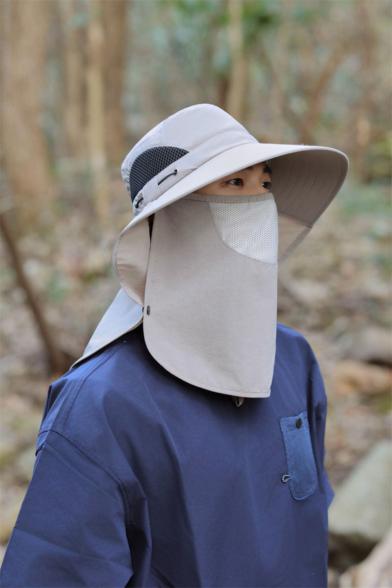 big brim sun hat men‘s summer fishing cover face shawl hat outdoor uv-proof mesh veil alpine cap
