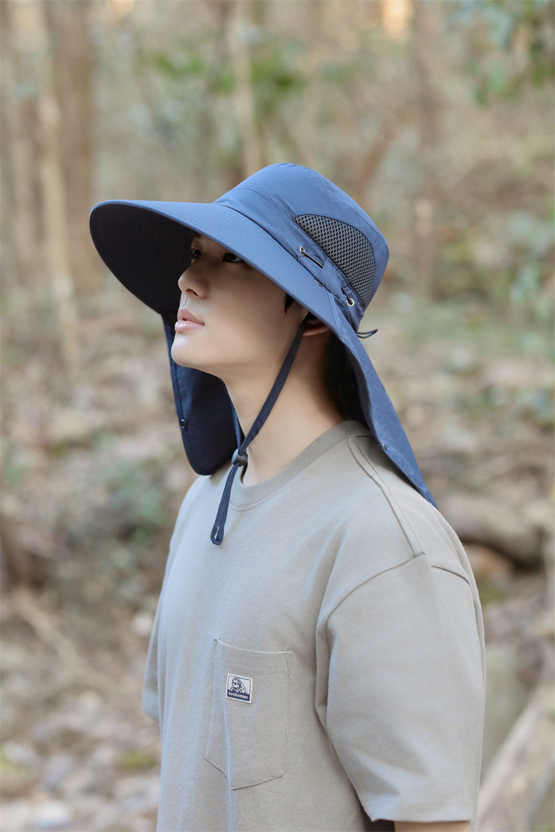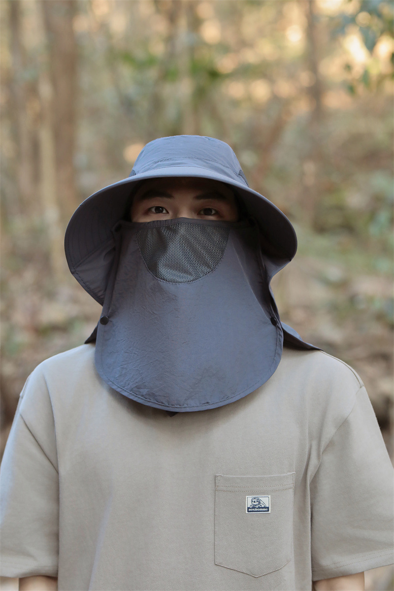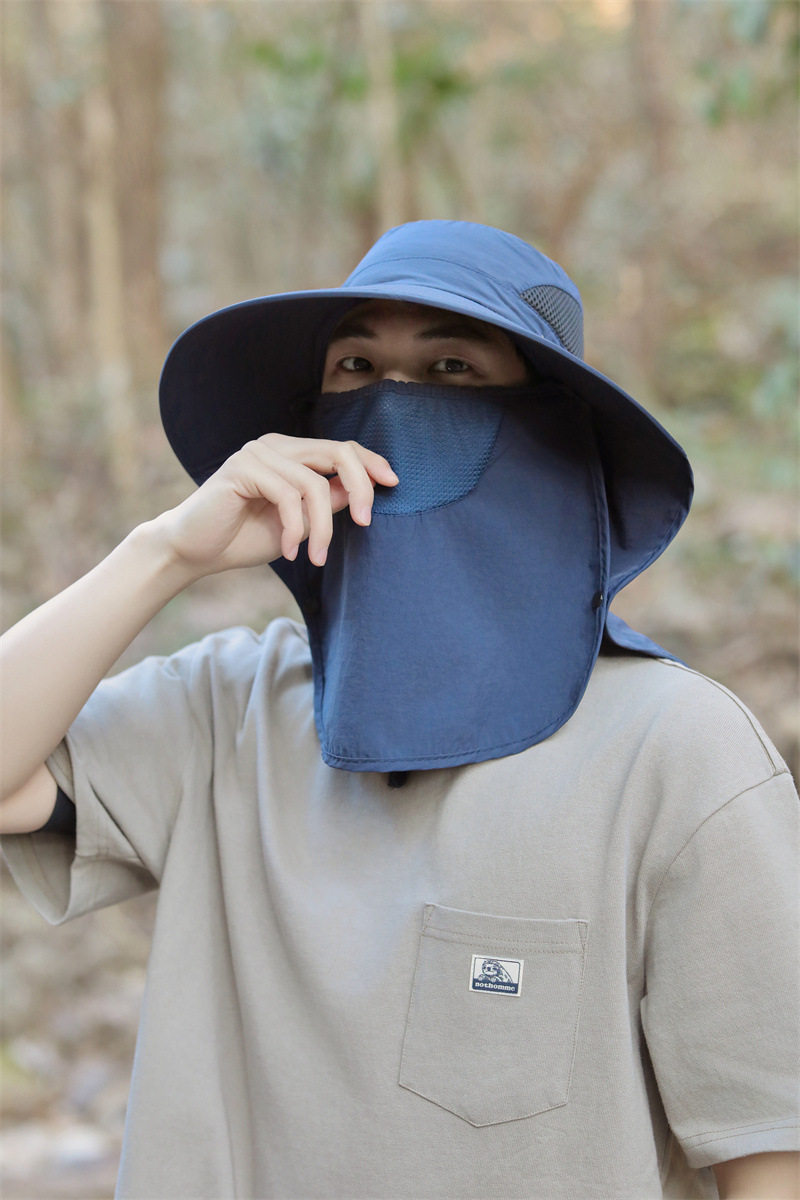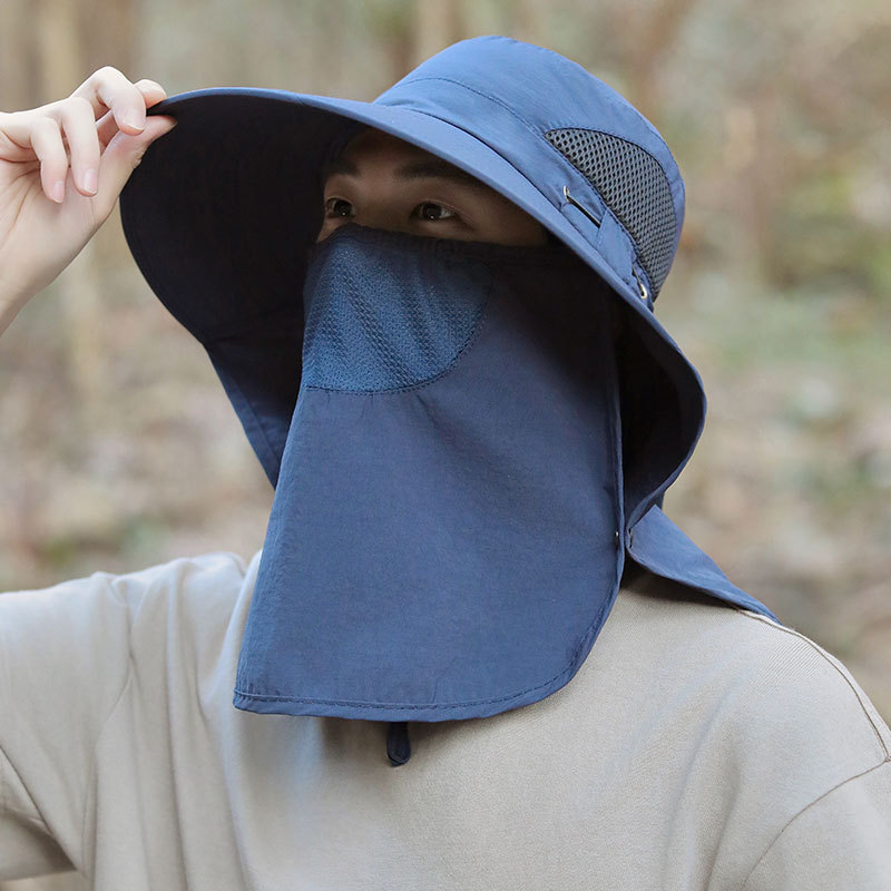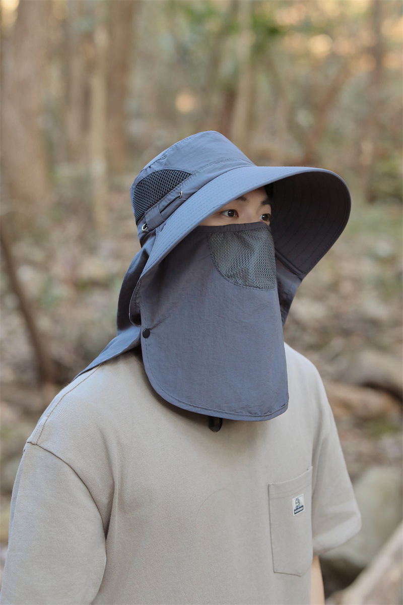 big brim sun hat men‘s summer fishing cover face shawl hat outdoor uv-proof mesh veil alpine cap