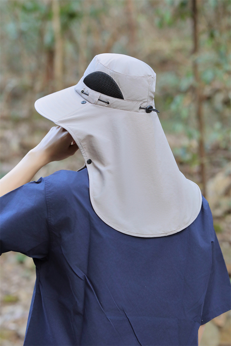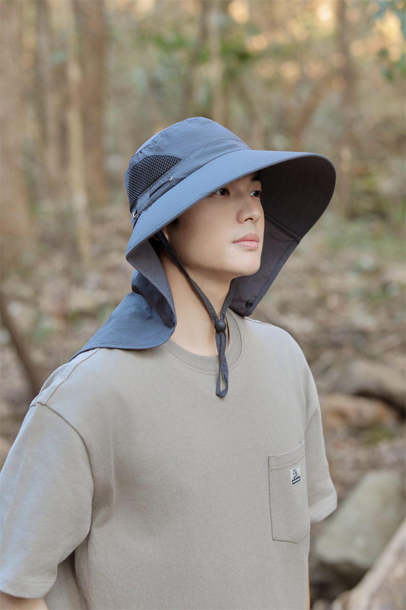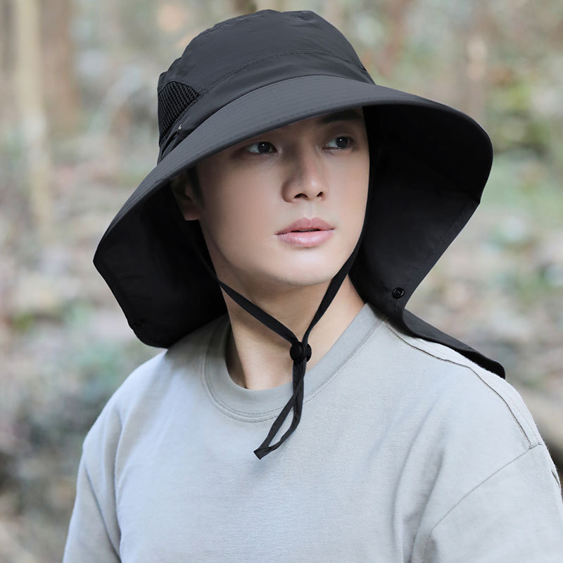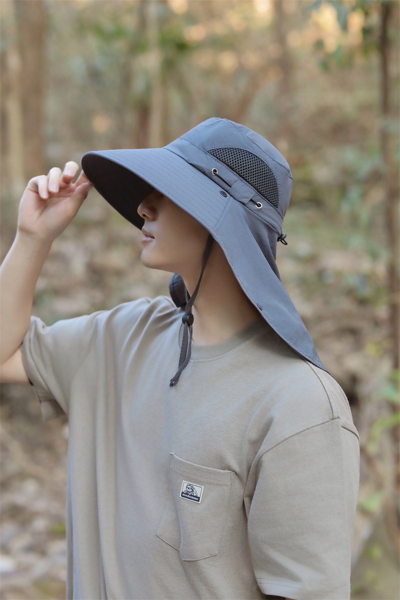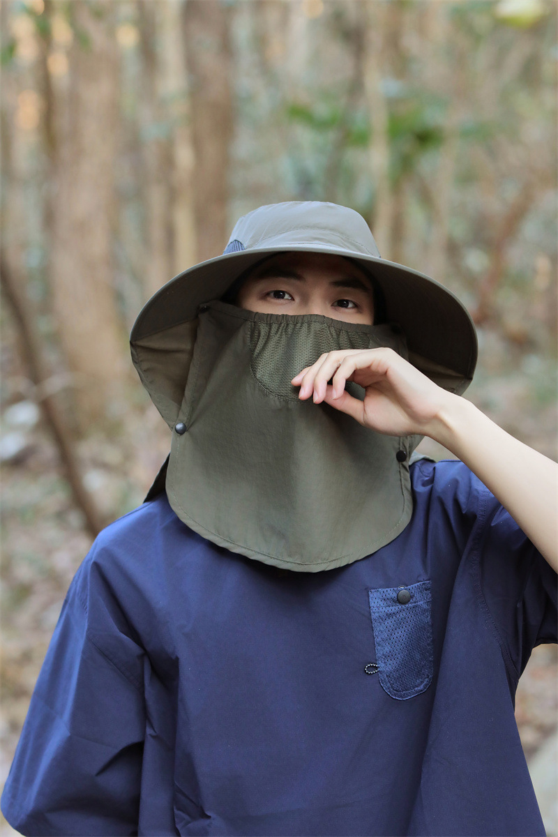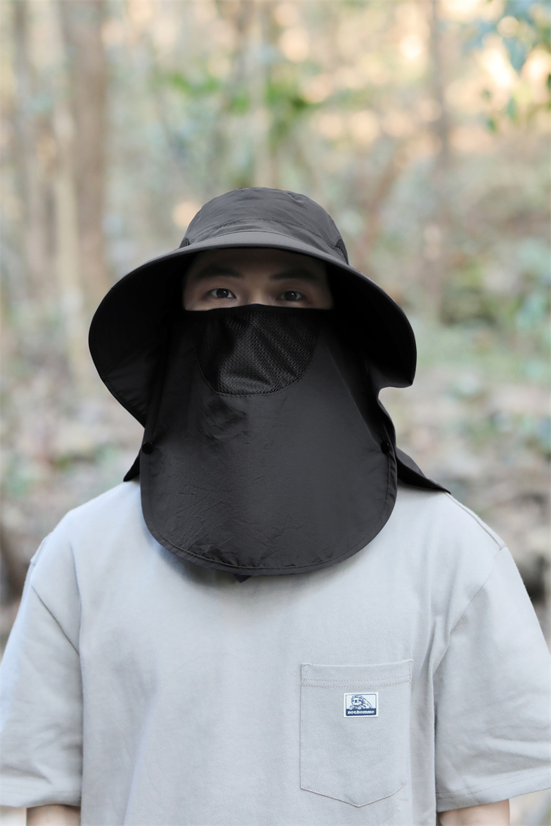 大帽檐遮阳帽子男士夏钓鱼遮脸披肩帽户外防紫外线网眼面纱登山帽