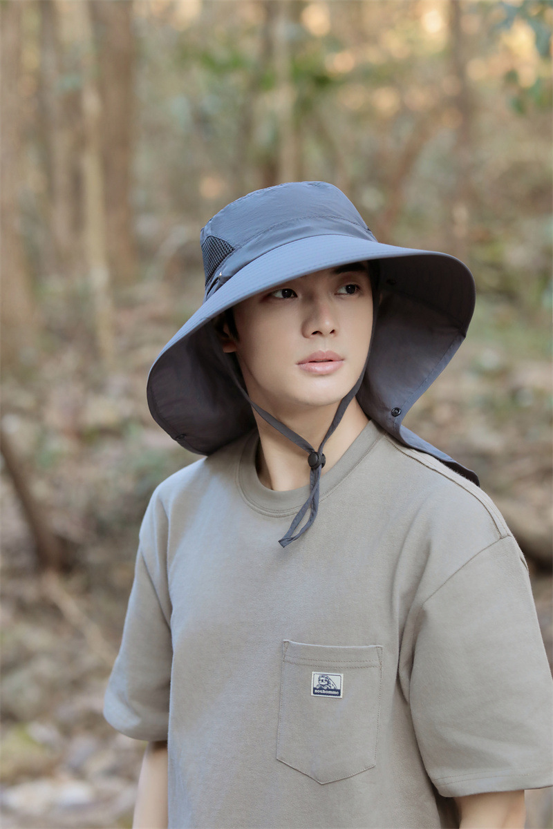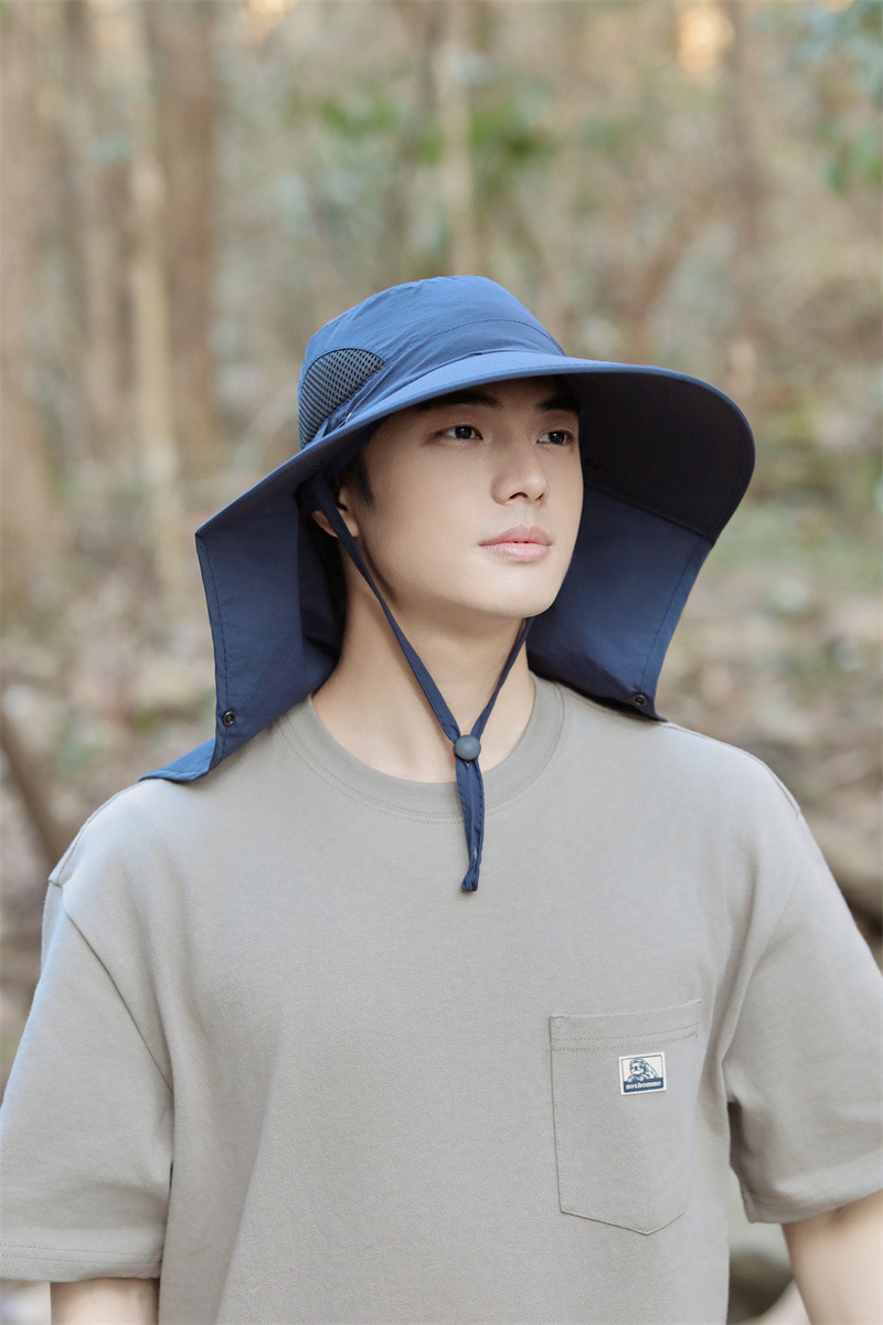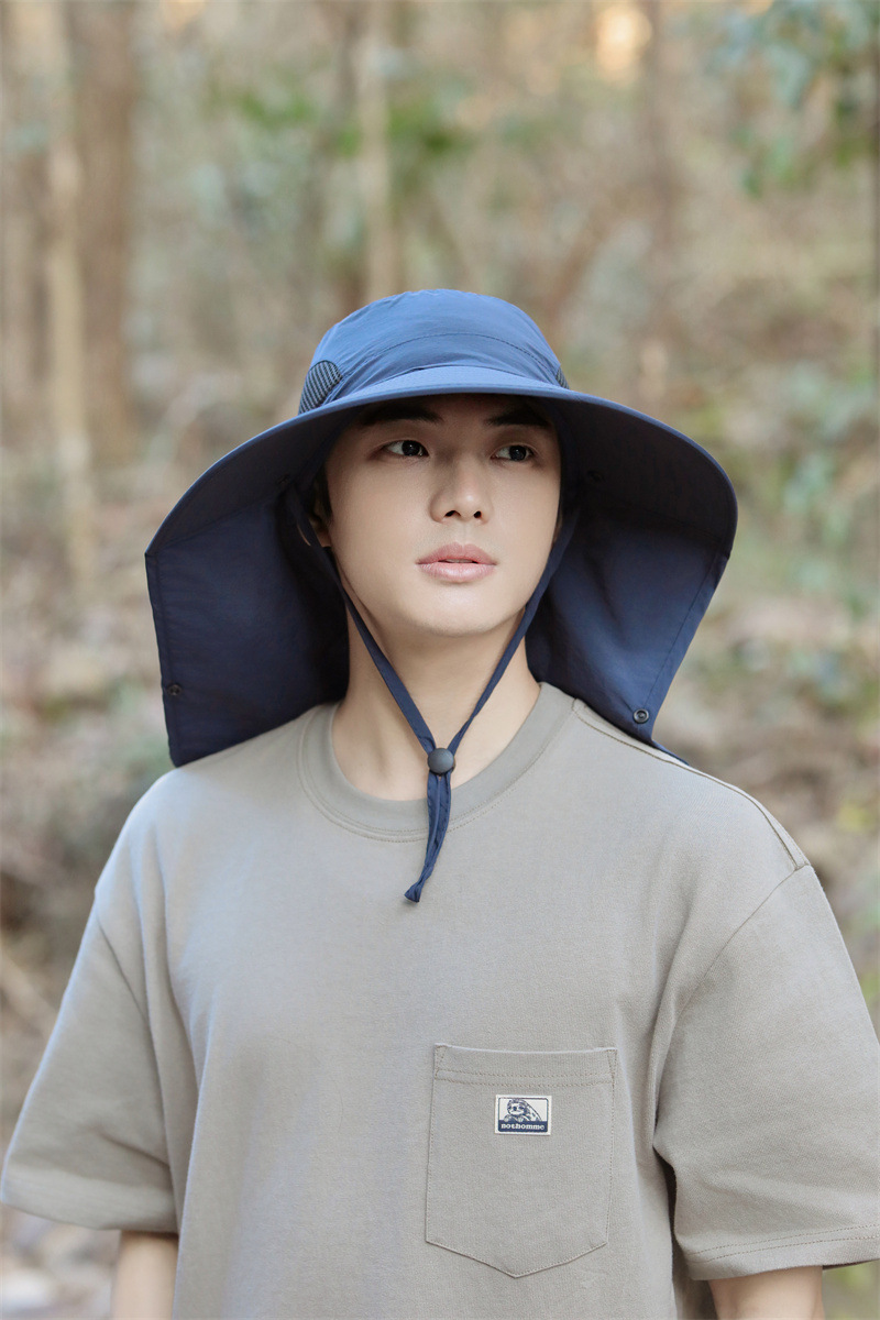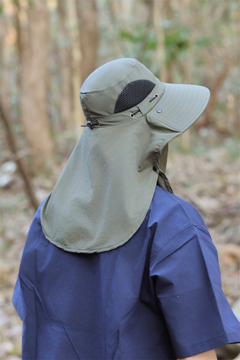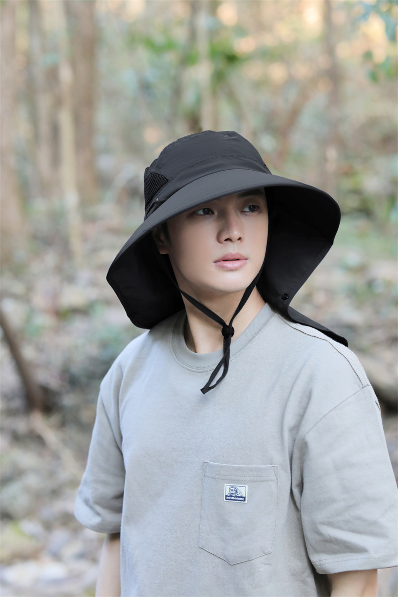 大帽檐遮阳帽子男士夏钓鱼遮脸披肩帽户外防紫外线网眼面纱登山帽