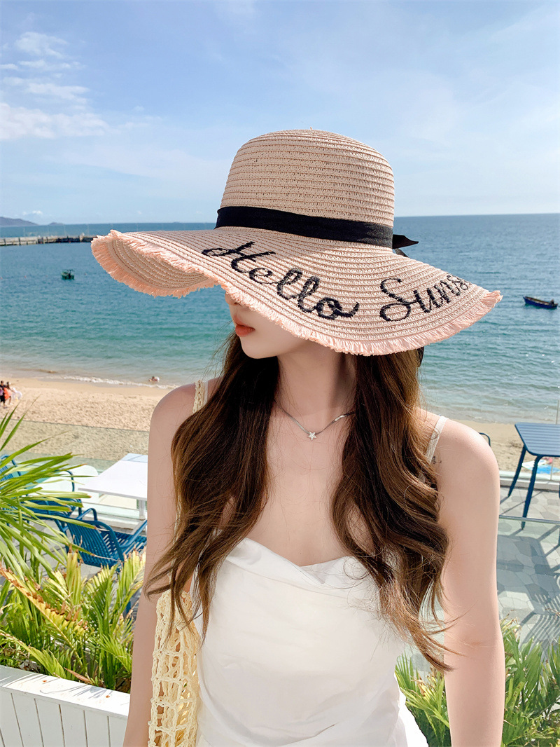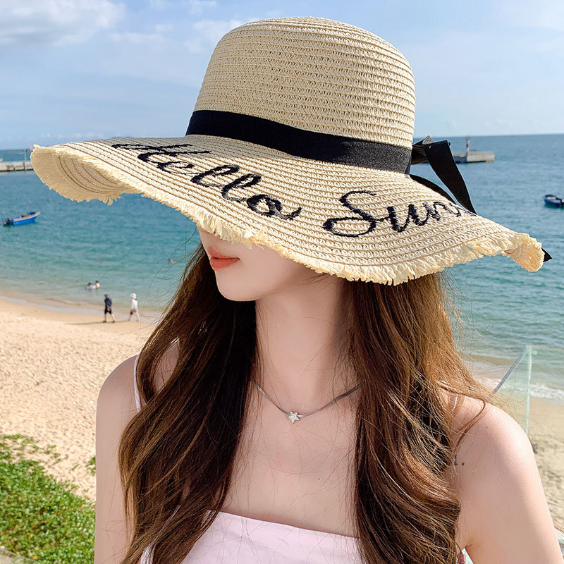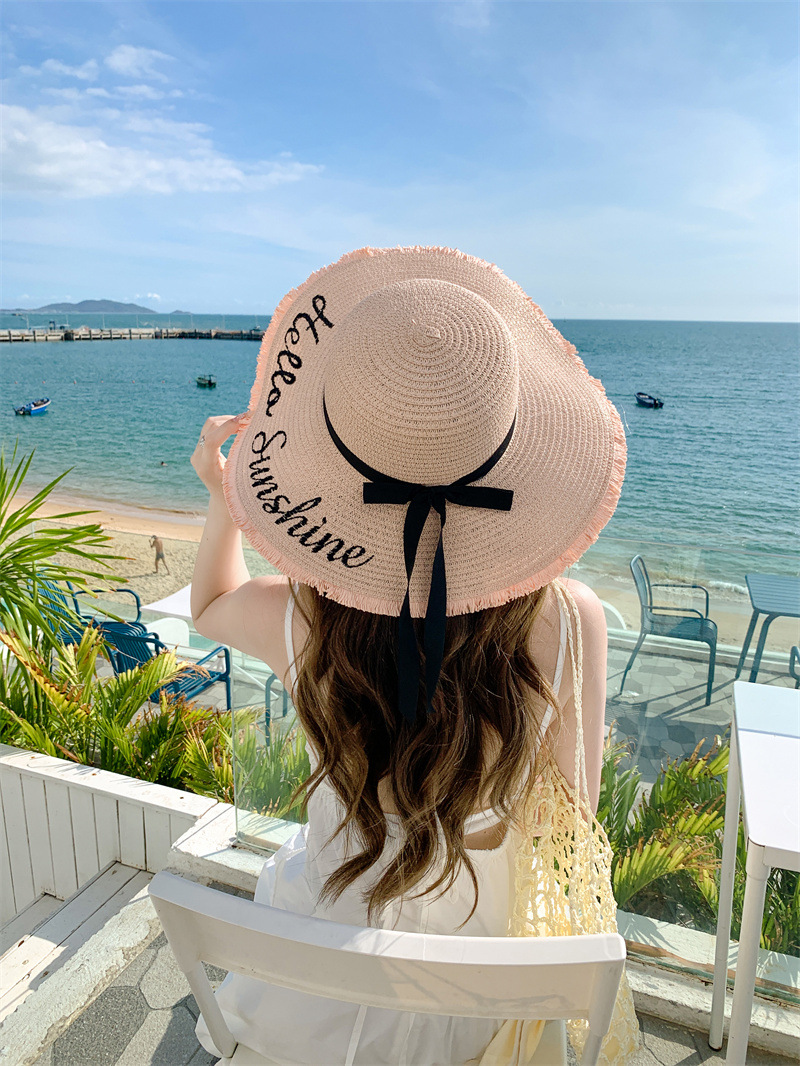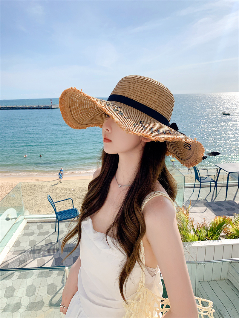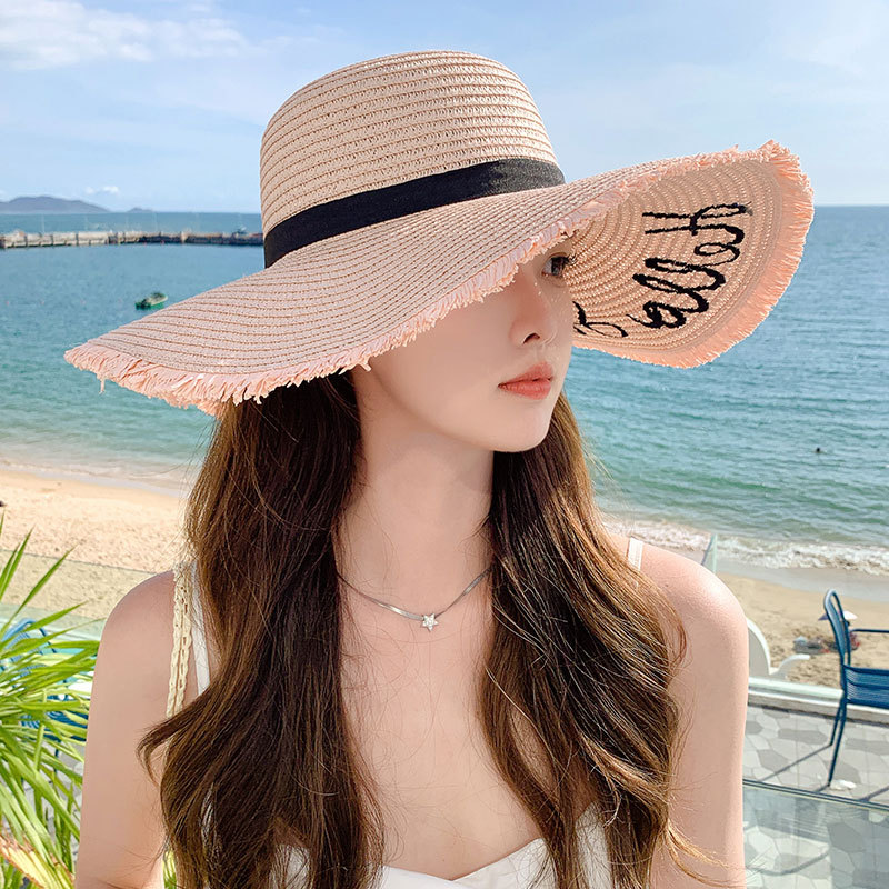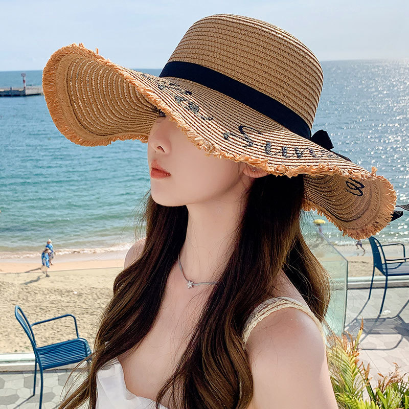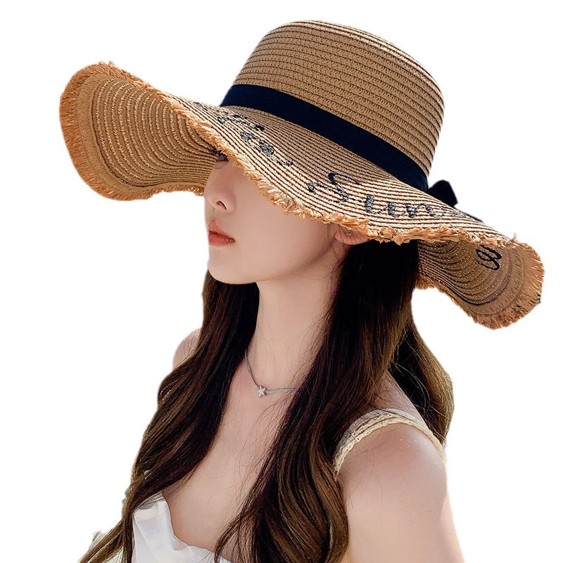 加大帽檐时尚遮阳帽子女士夏季休闲百搭字母防晒太阳帽韩版潮盆帽
