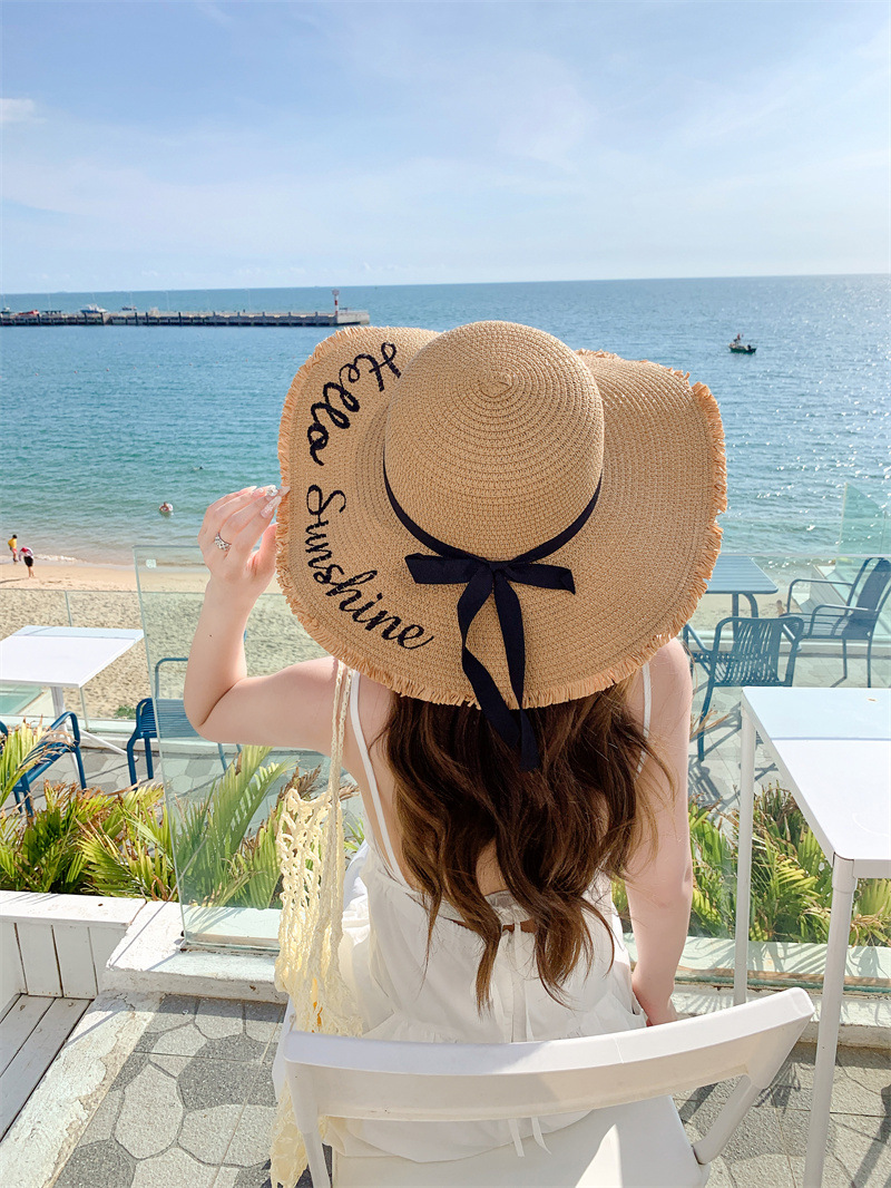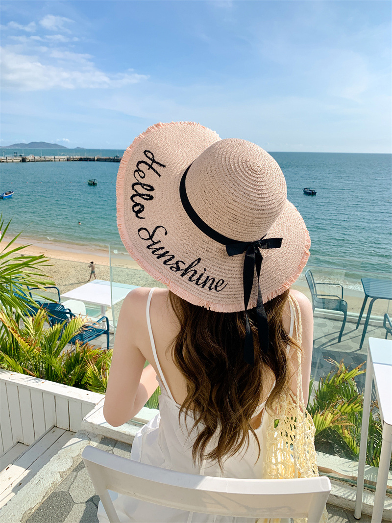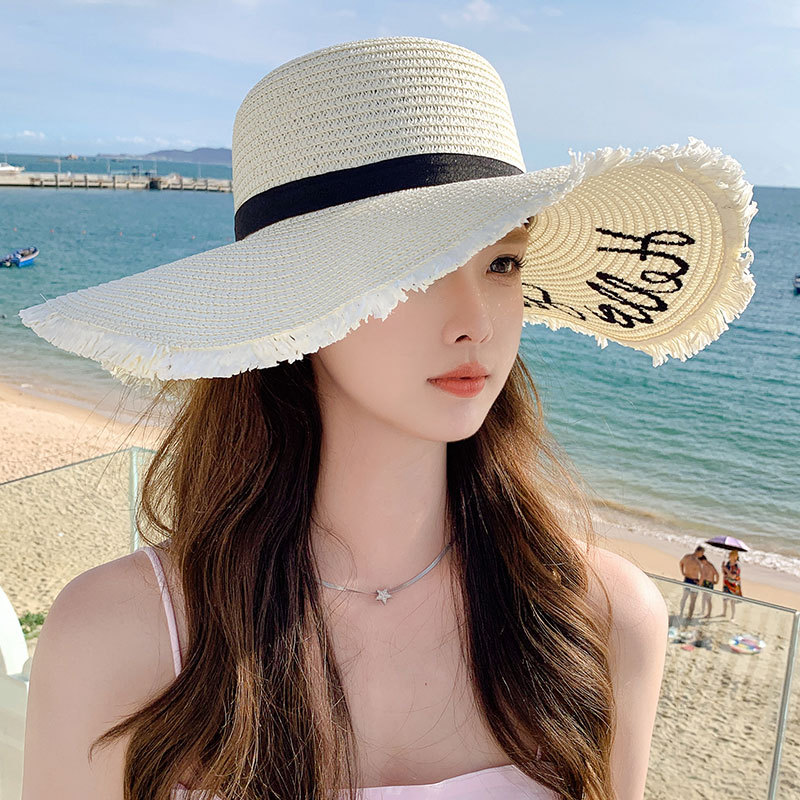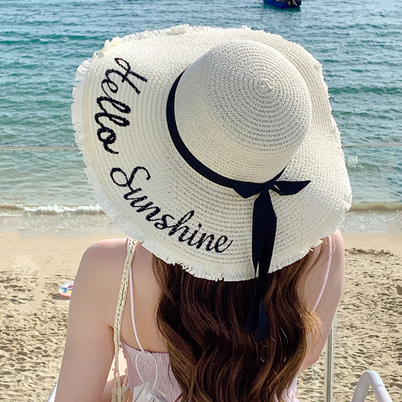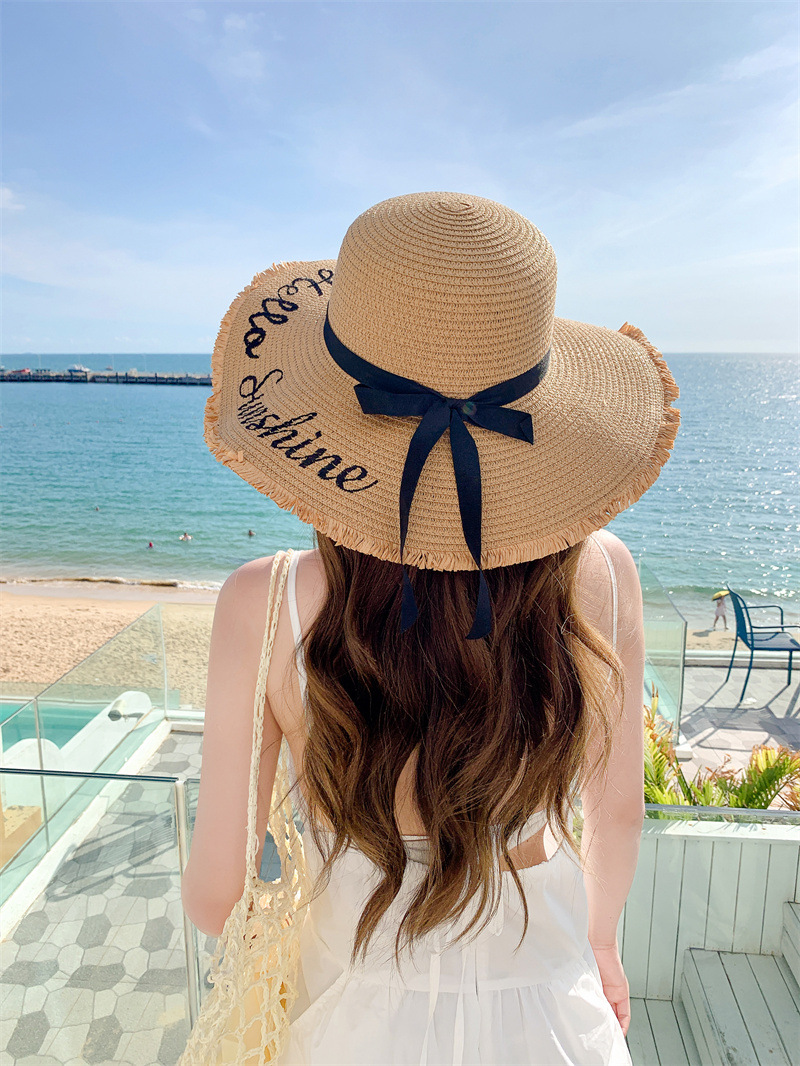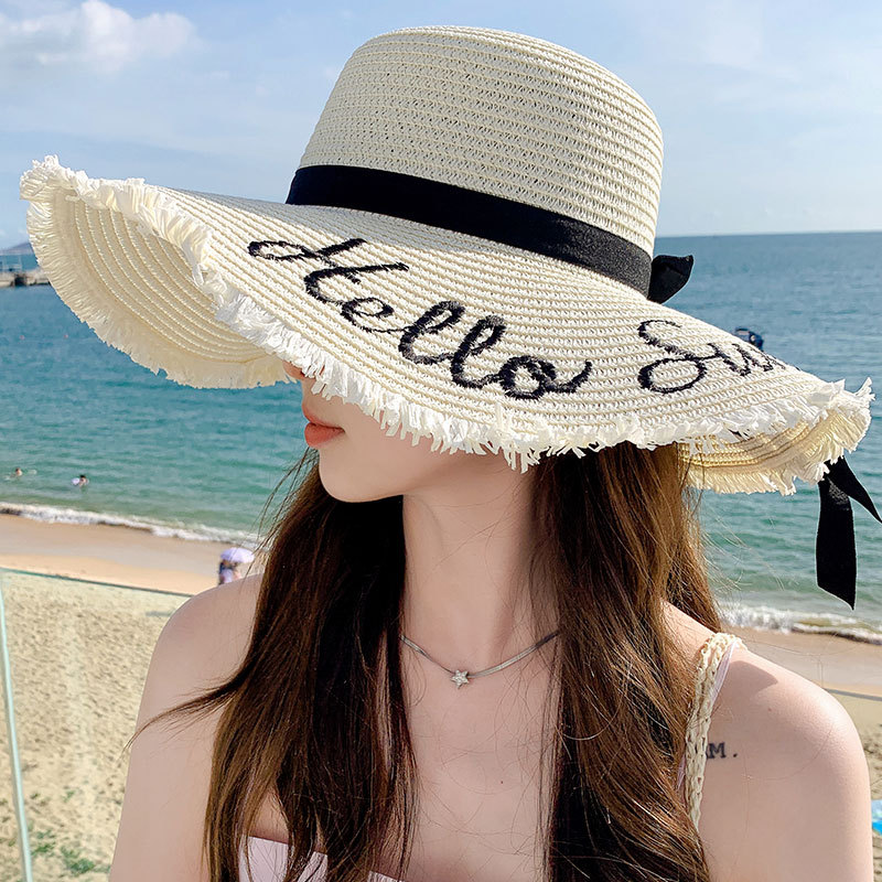 加大帽檐时尚遮阳帽子女士夏季休闲百搭字母防晒太阳帽韩版潮盆帽
