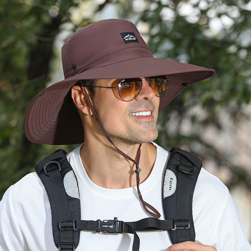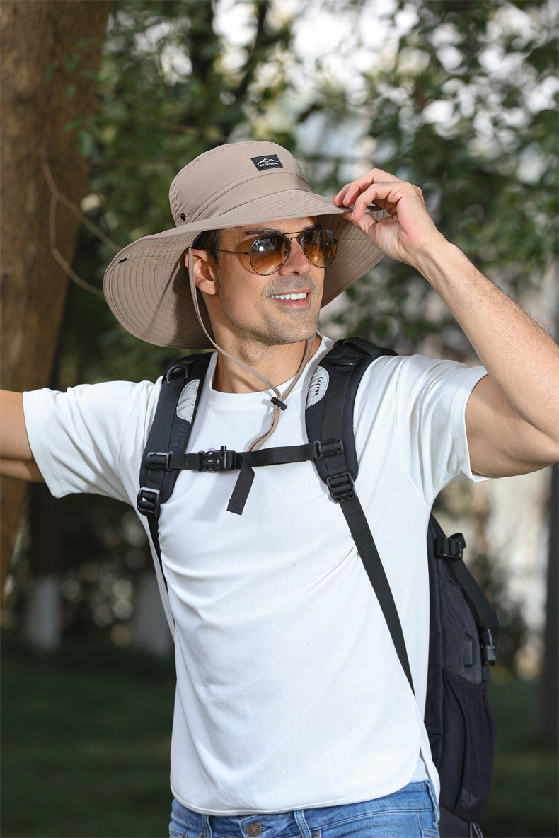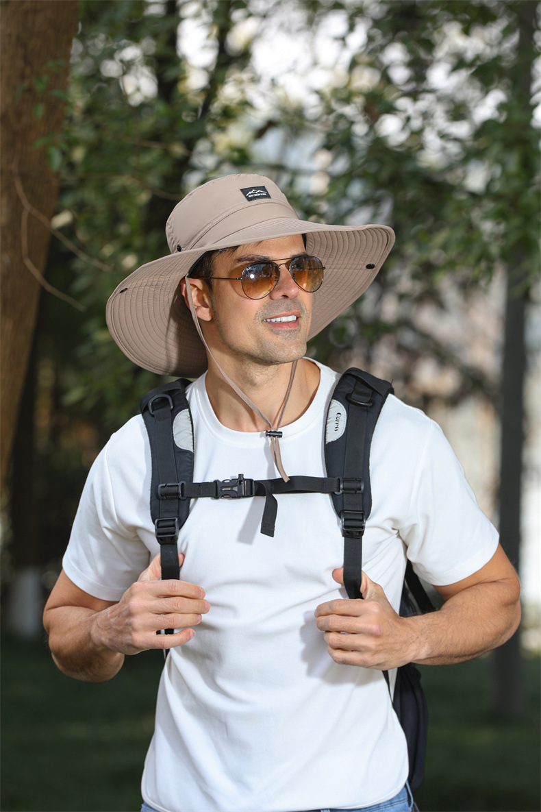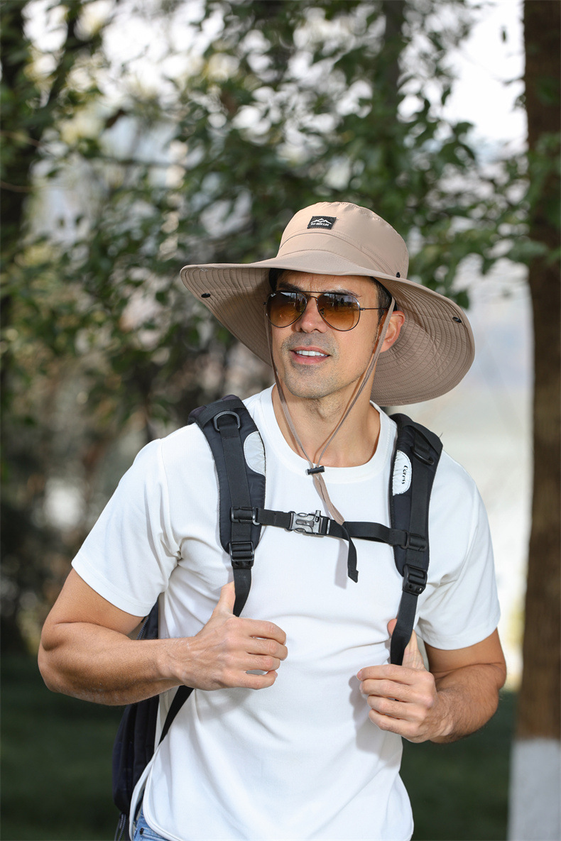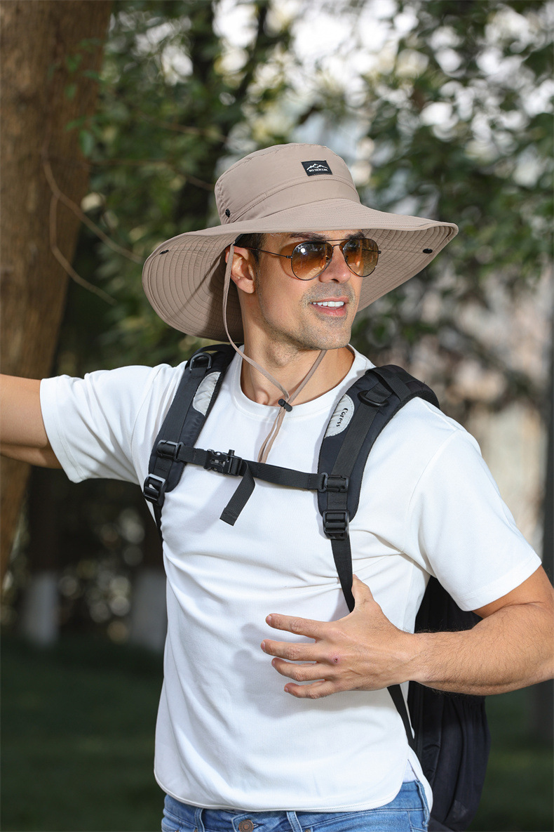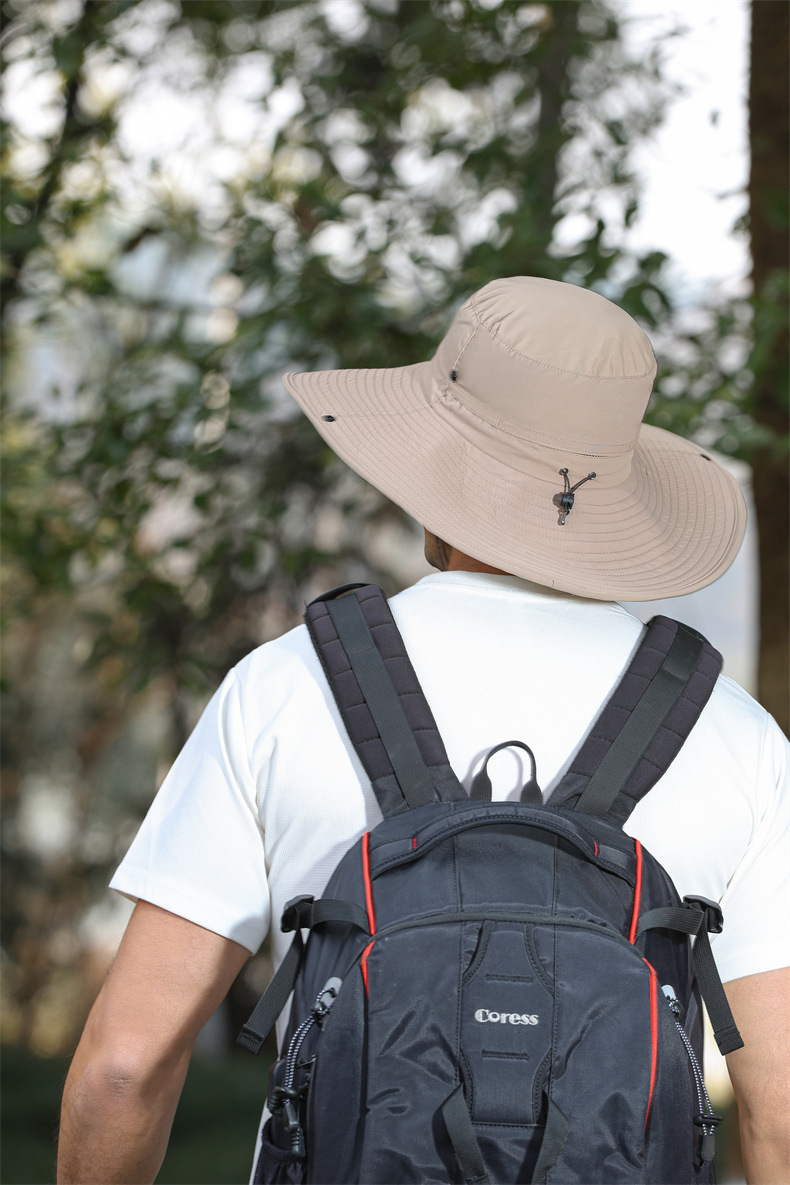 加大帽檐防晒帽子男士户外遮脸护颈钓鱼帽山峰标太阳帽防紫外线帽