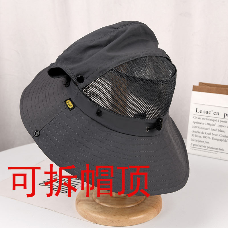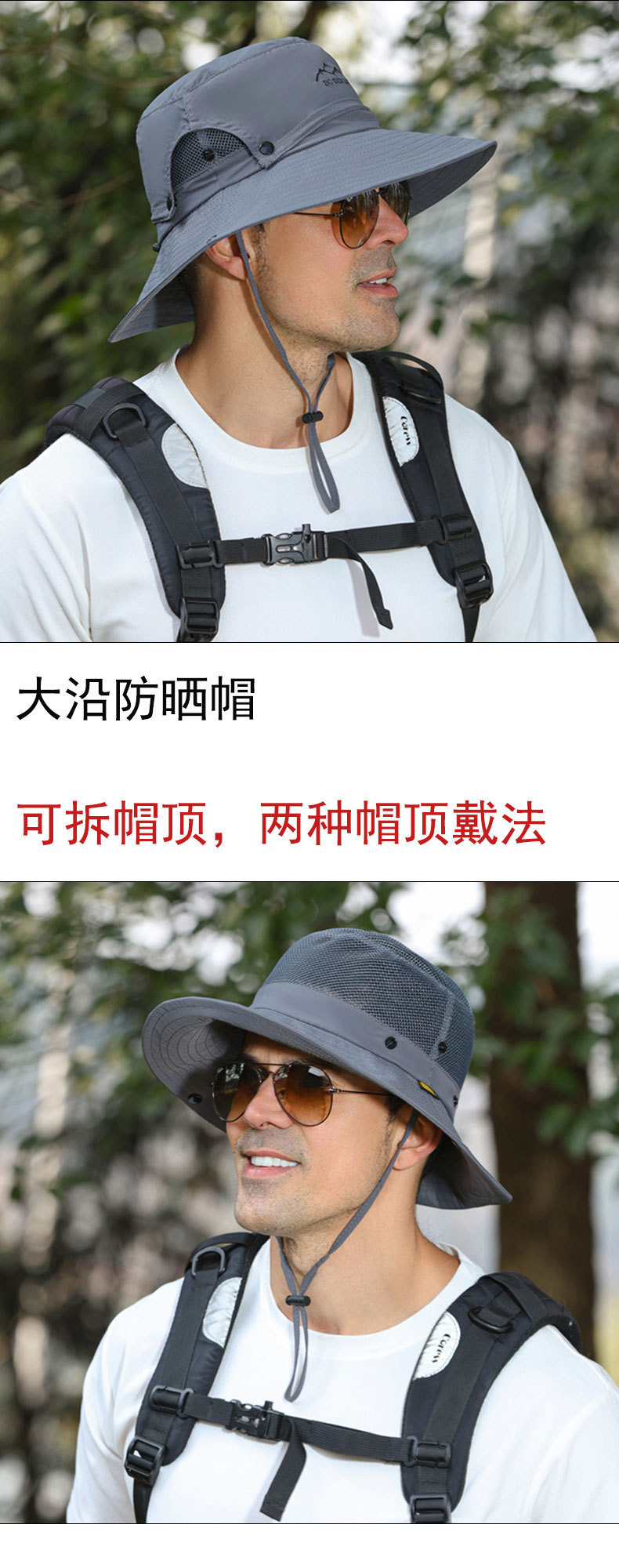 可拆帽顶遮阳帽子男士户外大沿防晒沙滩登山帽透气散热遮脸钓鱼帽
