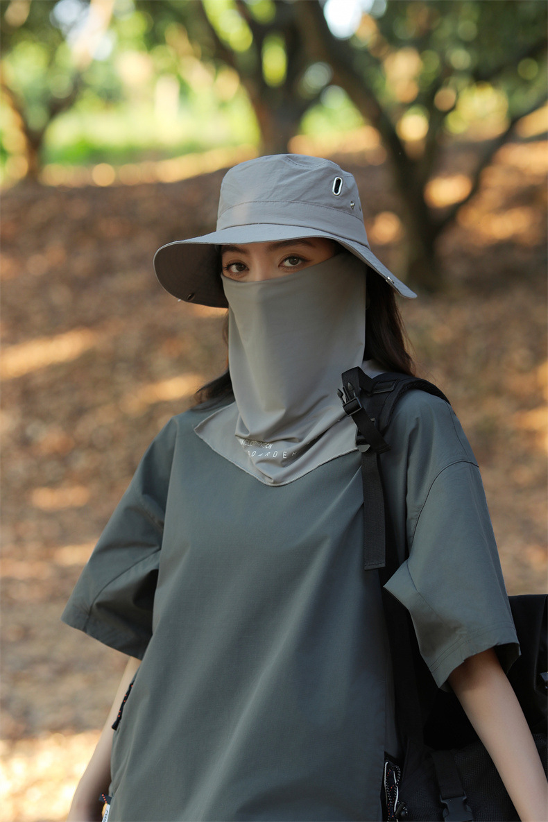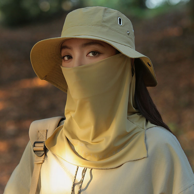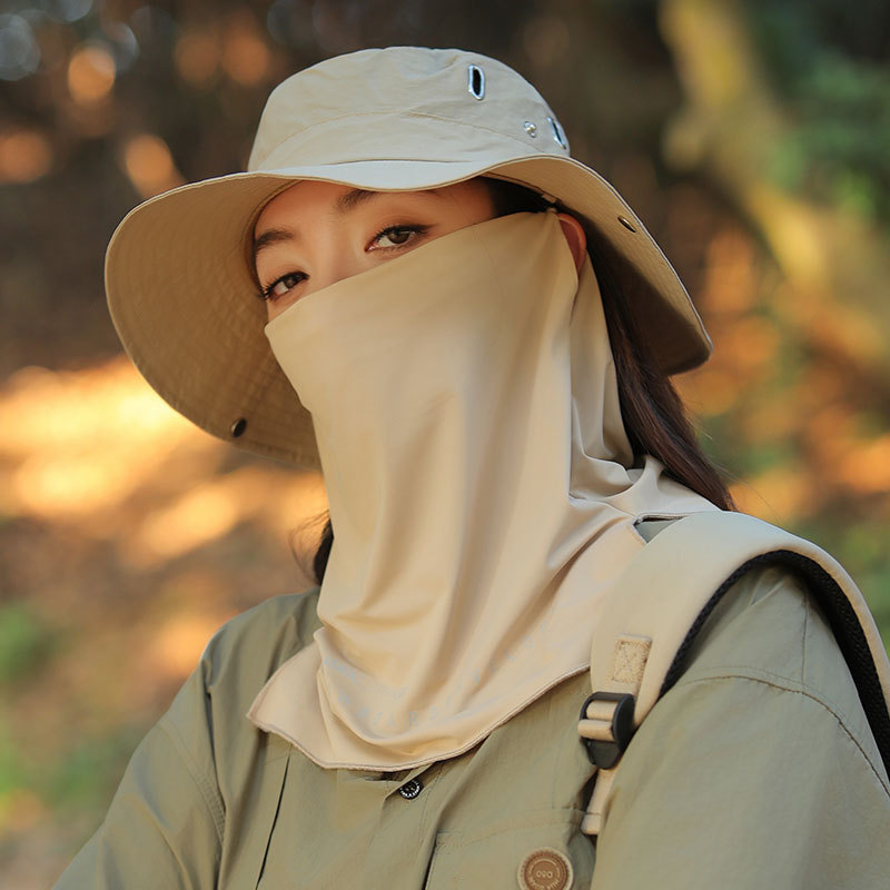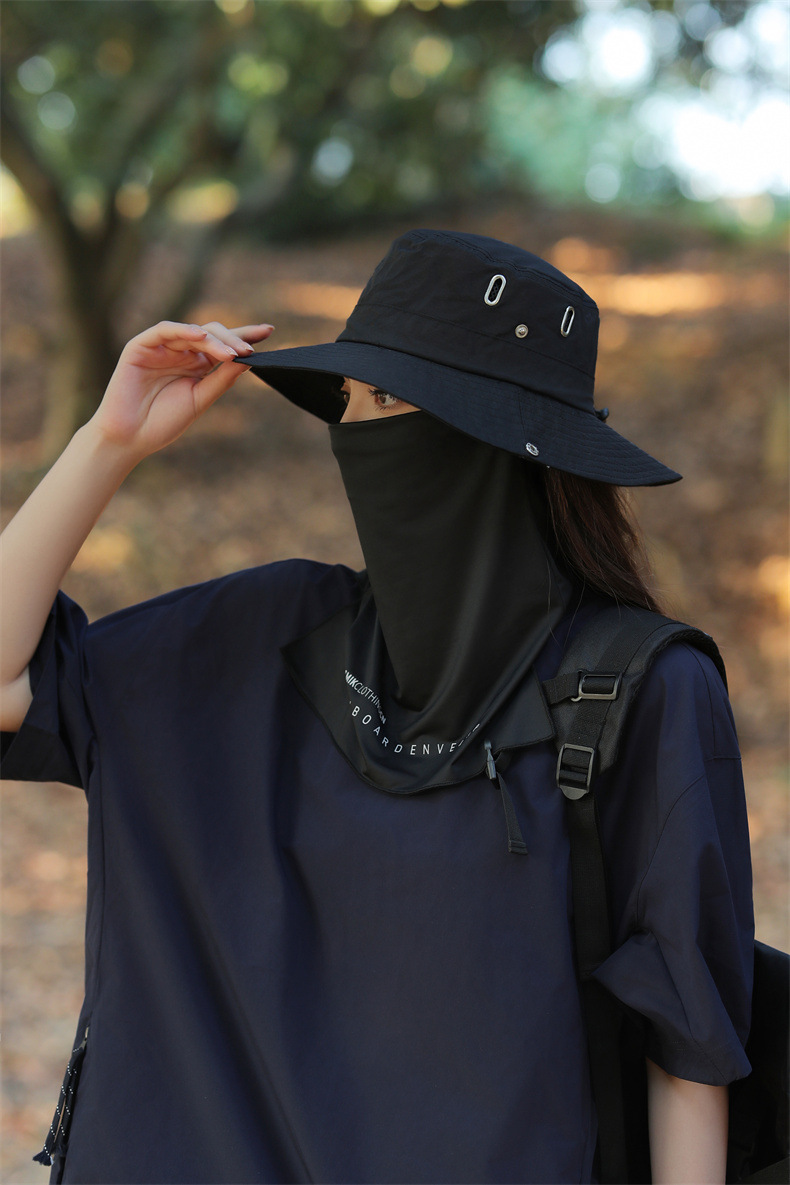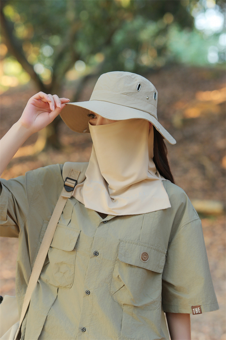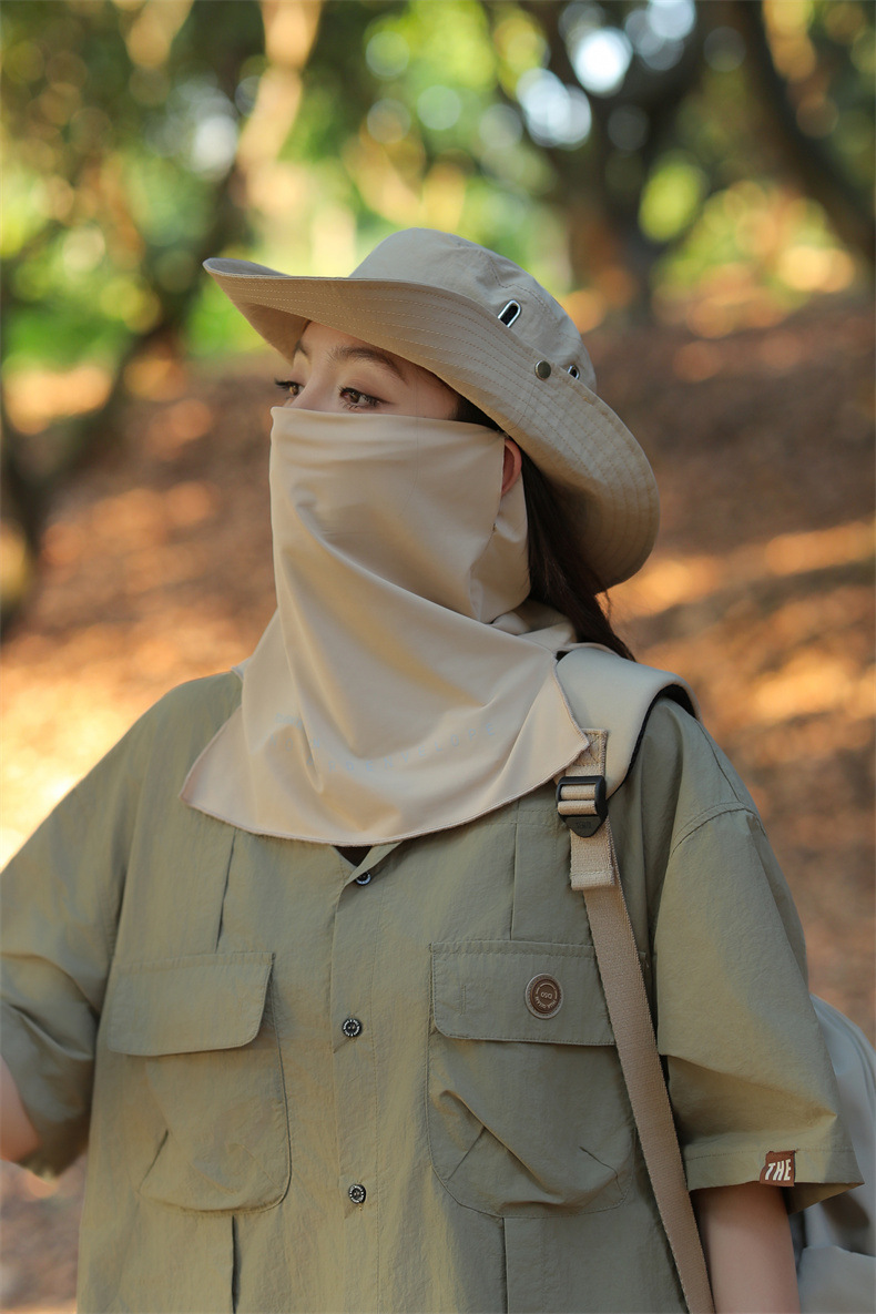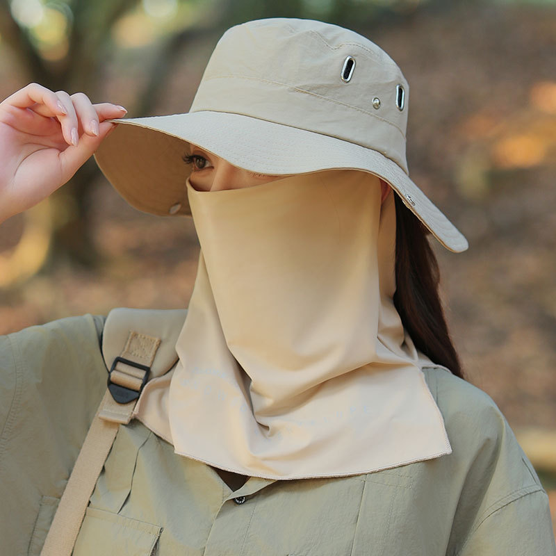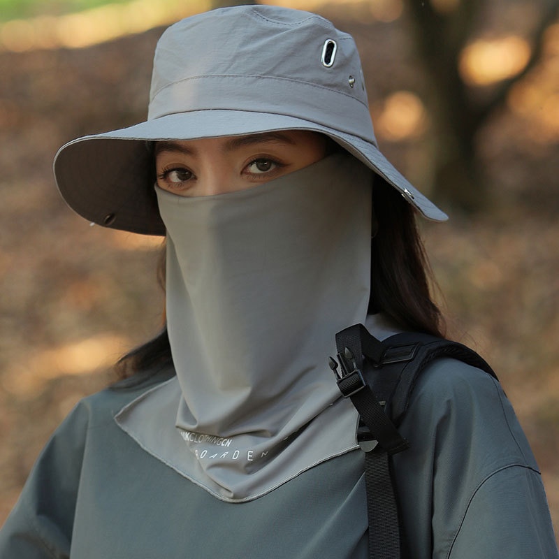 户外遮阳帽子女士夏季大沿防晒徒步登山帽潮遮脸面纱罩男士钓鱼帽